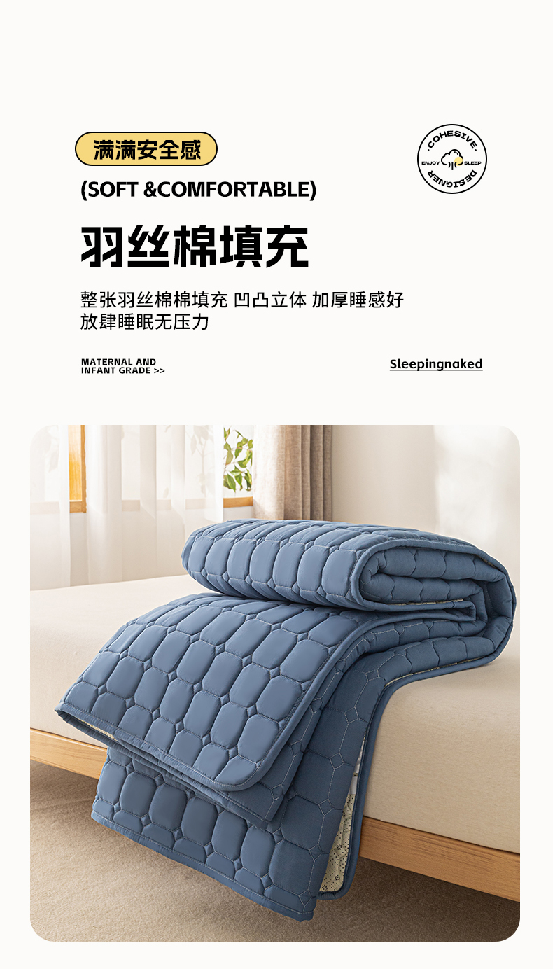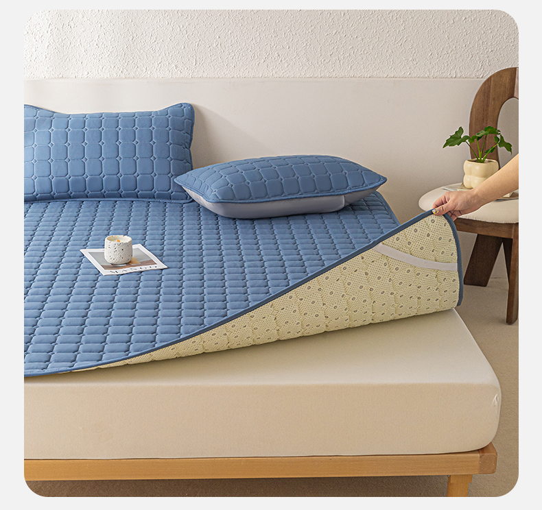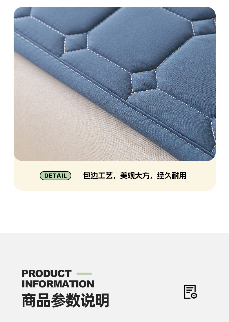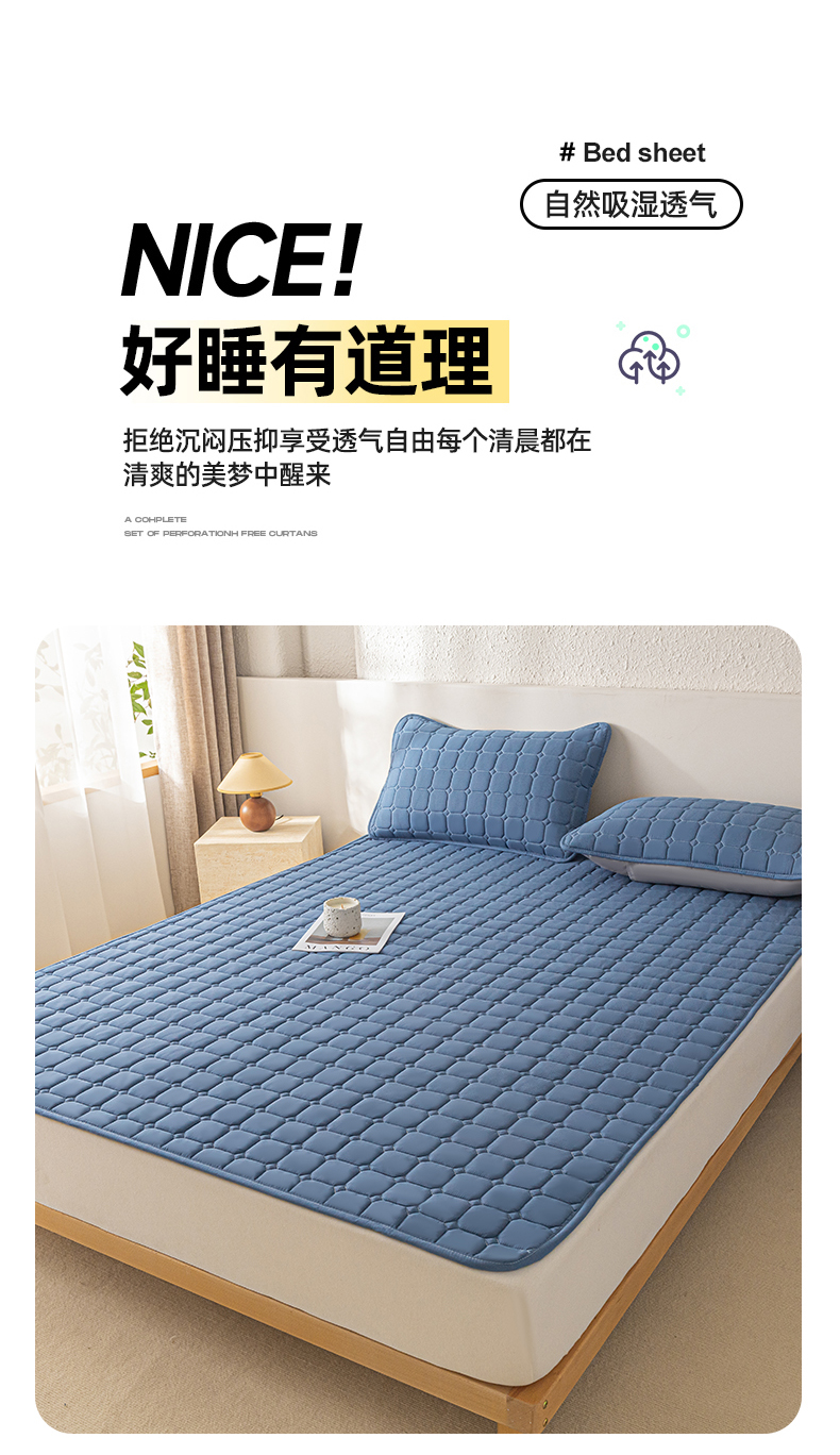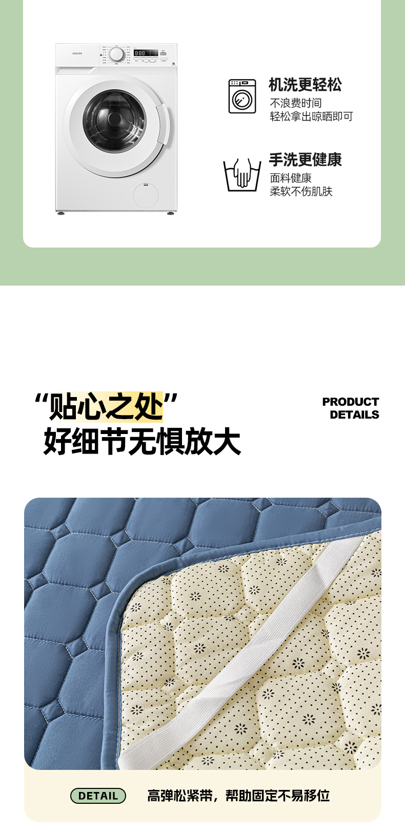 商品名称:欧邦 2025春夏新款四季款无印风纯色水洗棉床褥榻榻米床垫 床笠-深蓝