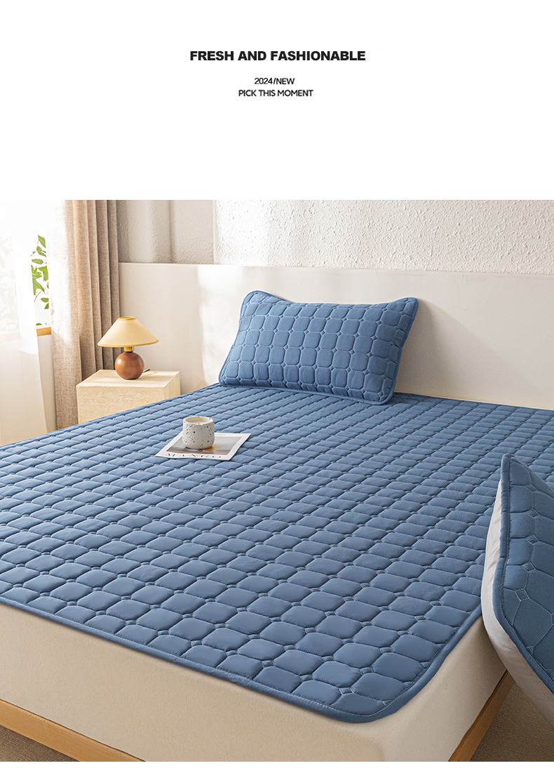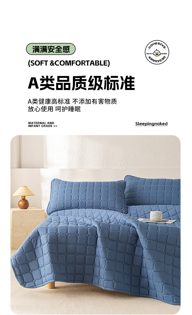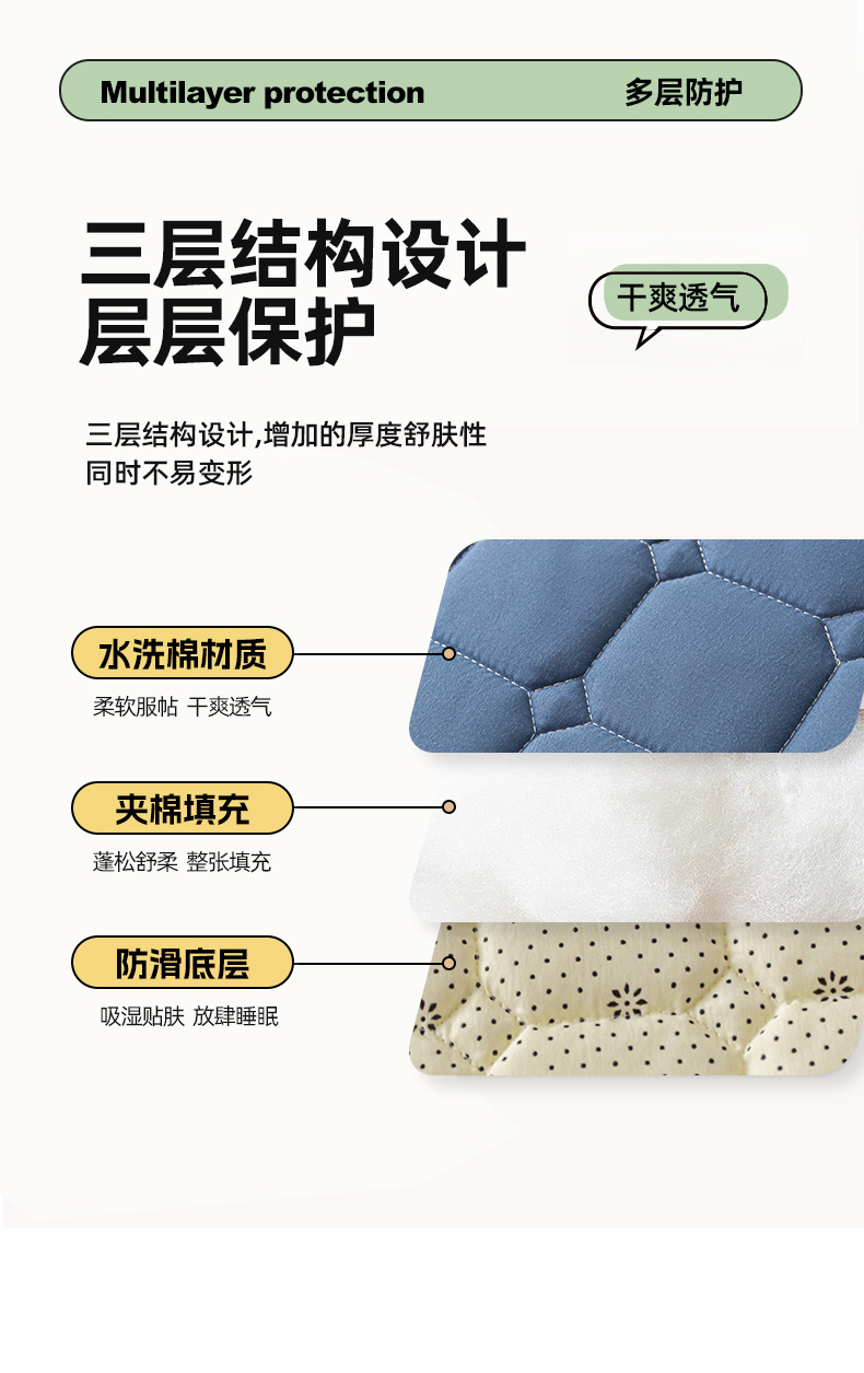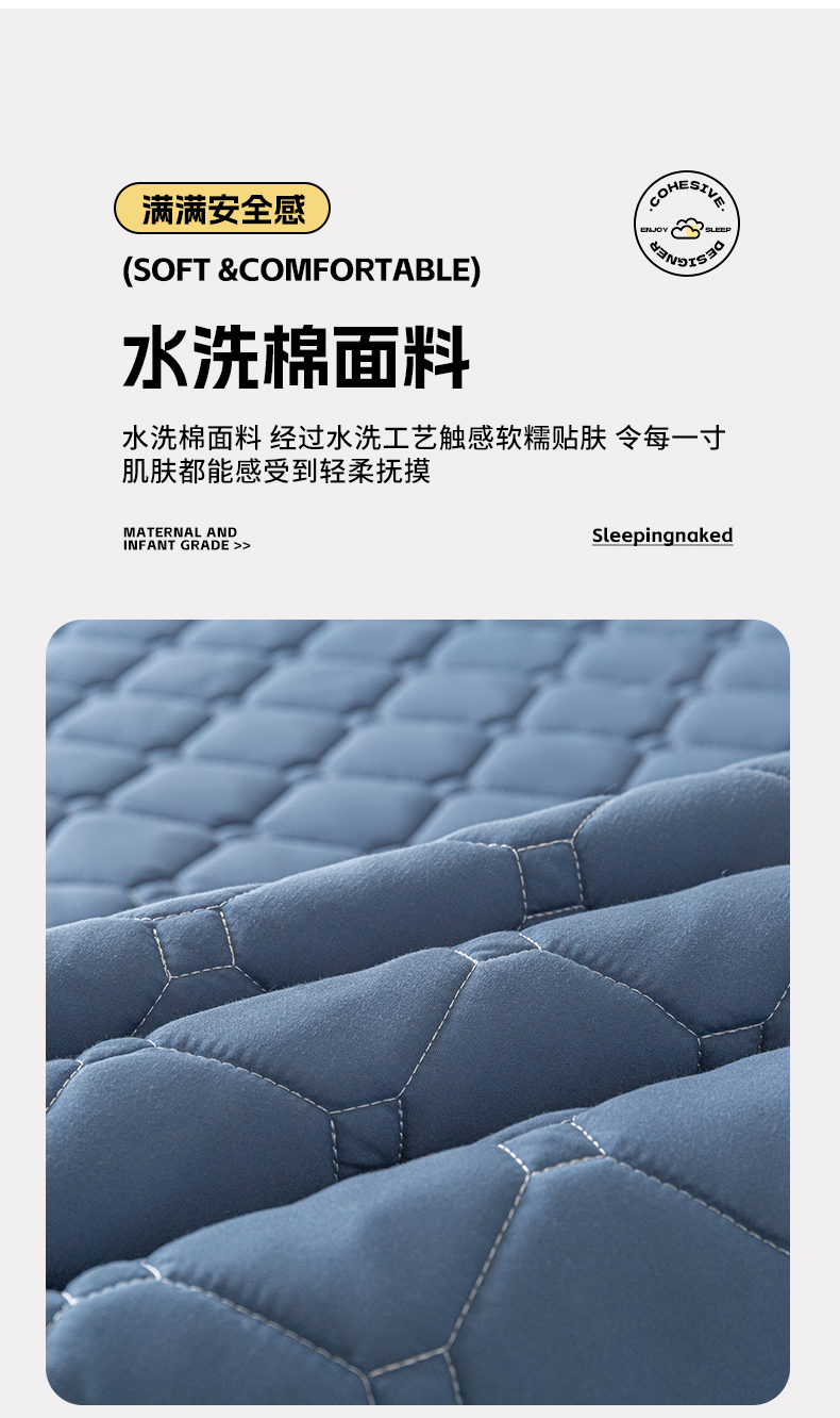 商品名称:欧邦 2025春夏新款四季款无印风纯色水洗棉床褥榻榻米床垫 床笠-深蓝