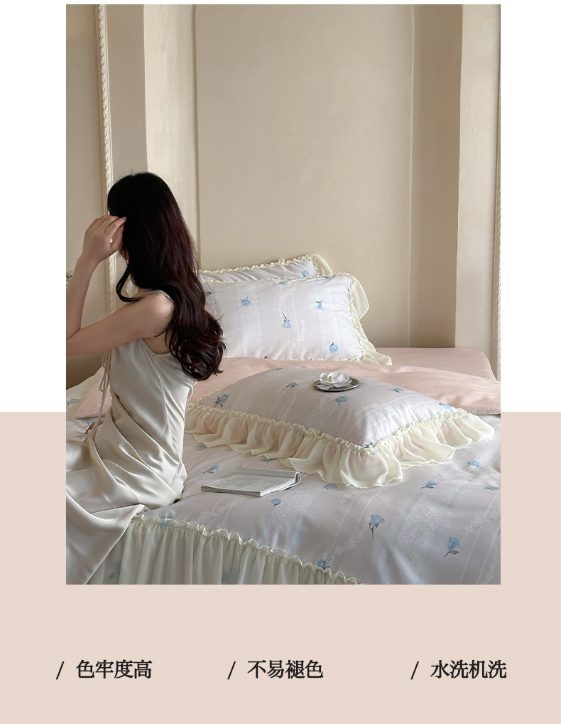 (总)卡巴伦家纺 2025新款天丝四件套-法式闺房风雪纺花边款【不得低于(店铺折后/券后) 标准:249元】,赫本,清风玉露,如愿-粉,如愿-兰,奢香-粉,奢香-兰