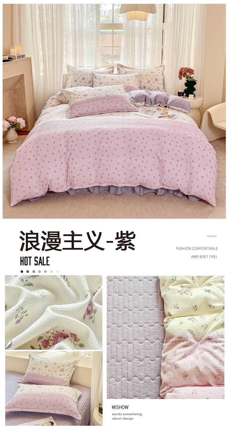 商品名称:2026春夏新款拼色提花双层纱古法水洗床盖四件套提花云感棉 浪漫主义紫