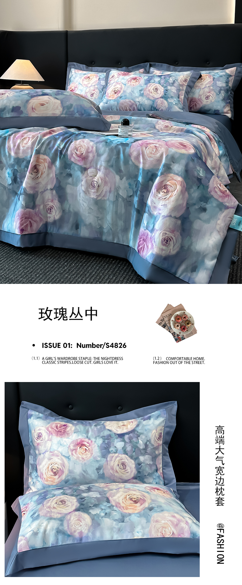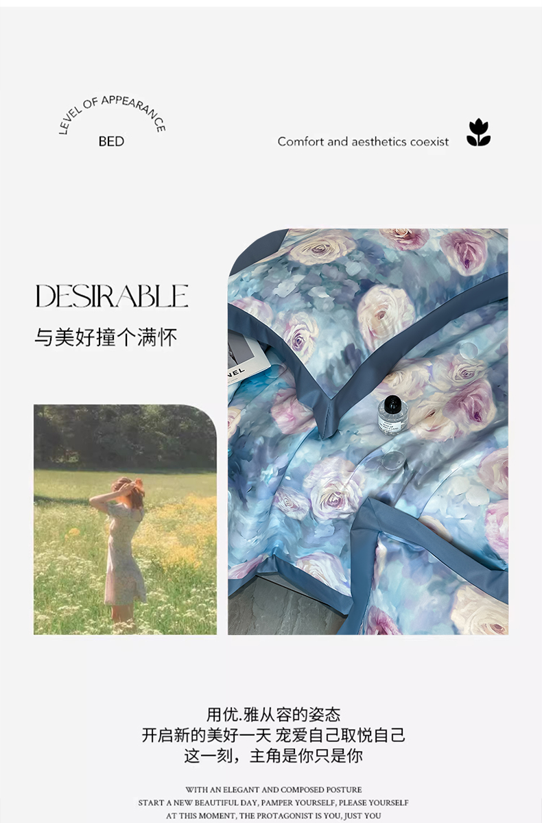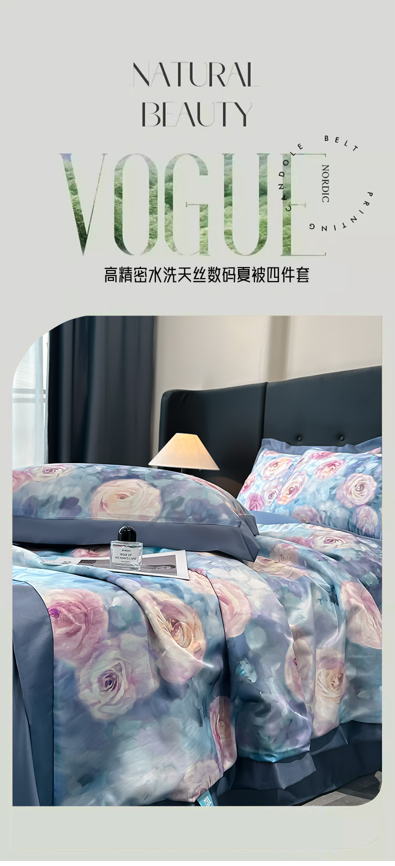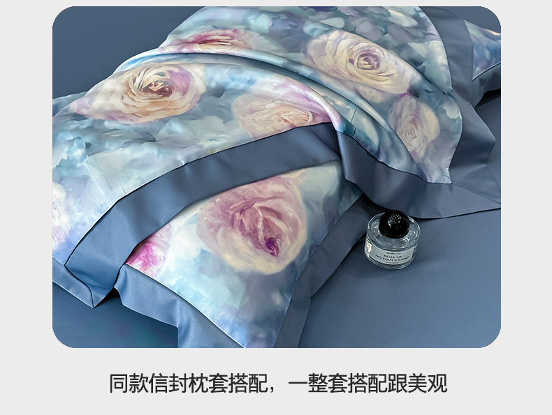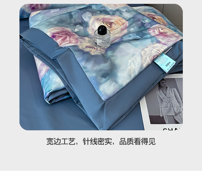 商品名称:花漾家居 2025新款数码水洗天丝单夏被夏被四件套 玫瑰丛中