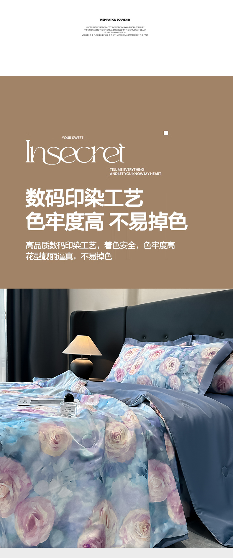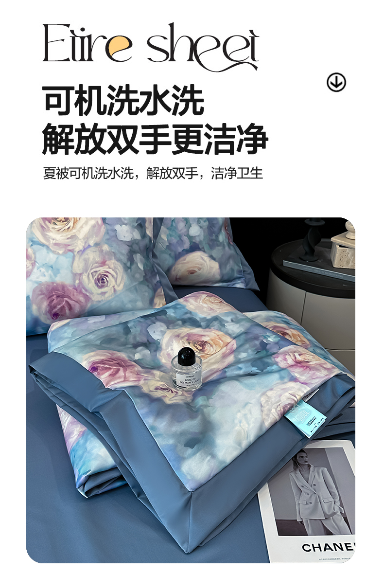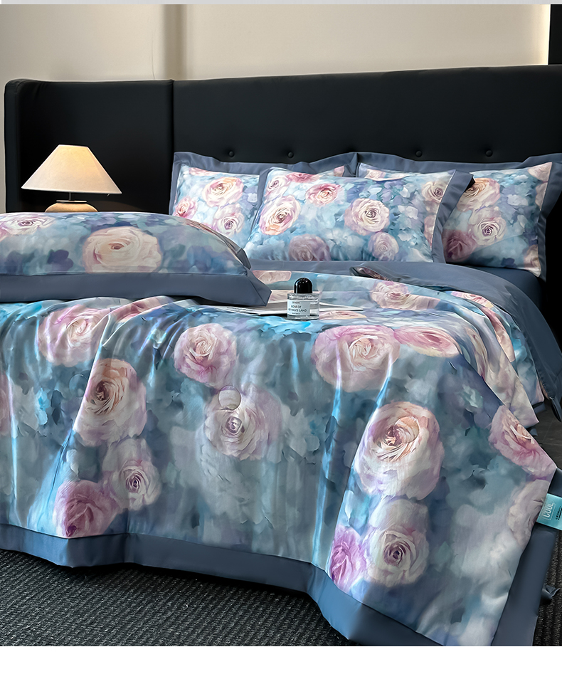 (总)花漾家居 2025新款数码水洗天丝单夏被夏被四件套,荷塘晓月,玫瑰丛中,木兰蝶,七里香,幽香咖,幽香蓝,云中花