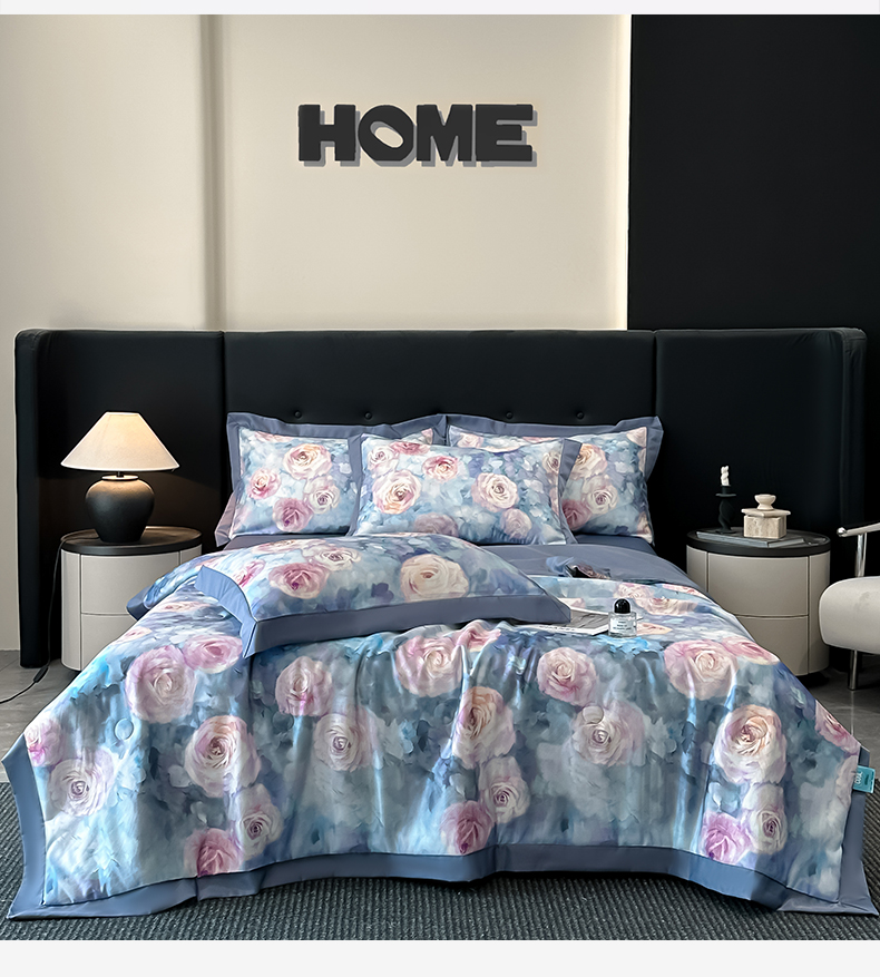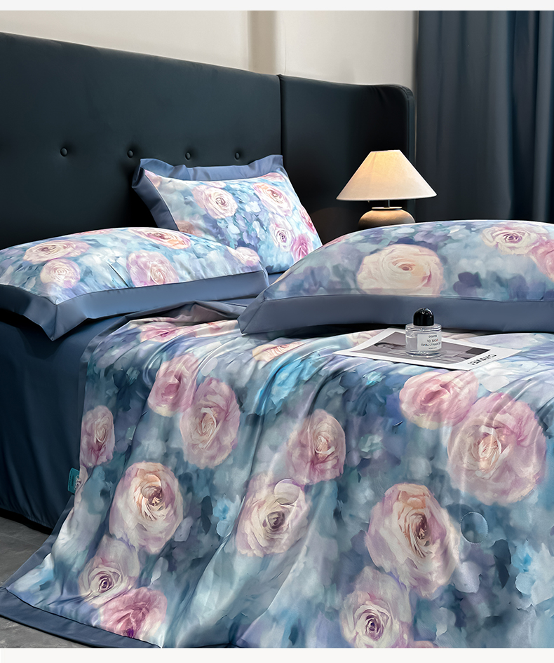 花漾家居 2025新款数码水洗天丝单夏被夏被四件套 玫瑰丛中