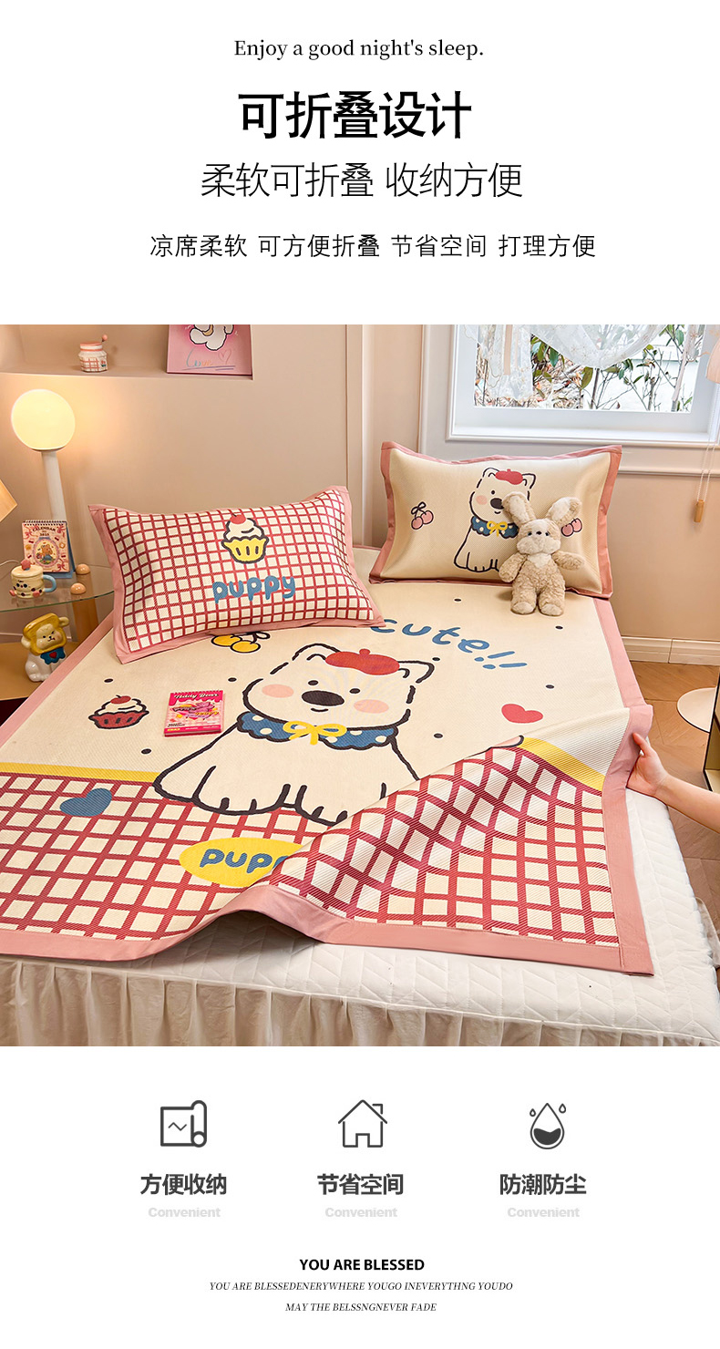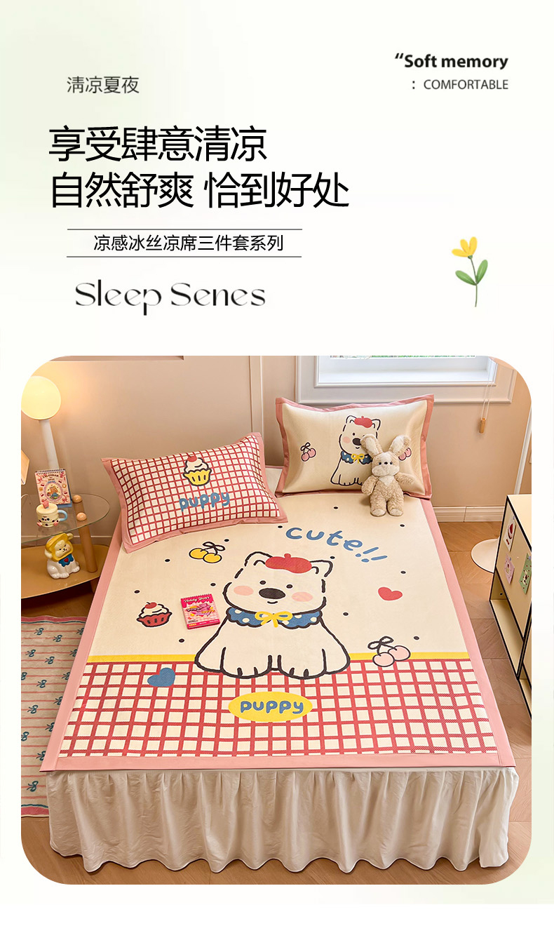 慕尚家纺 2025新款凉感大版冰丝席学生季款三件套 高西地