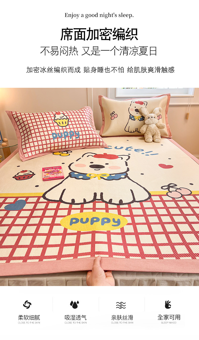 商品名称:慕尚家纺 2025新款凉感大版冰丝席学生季款三件套 高西地