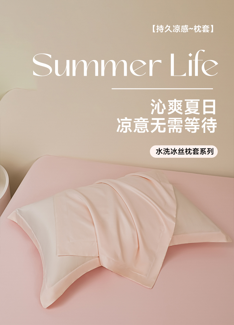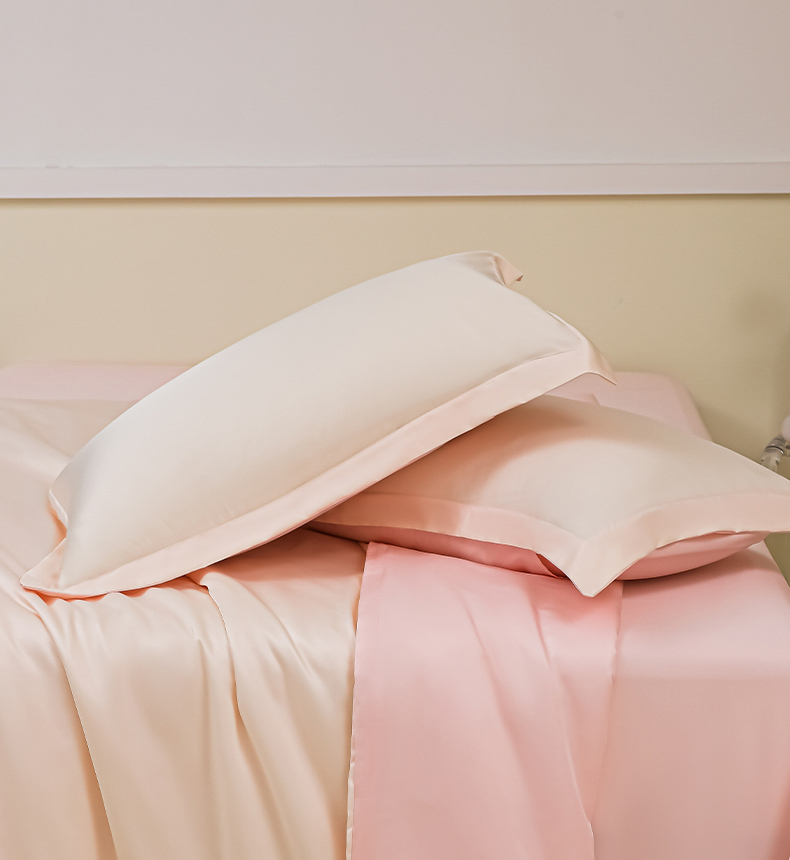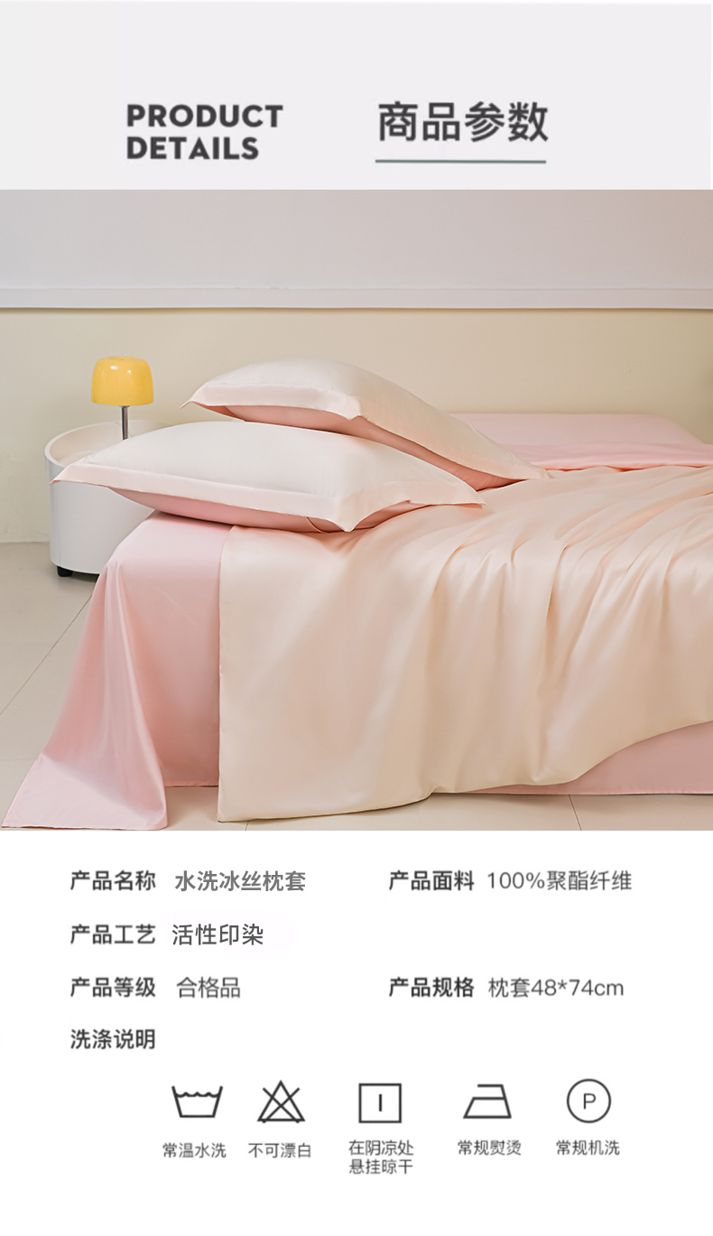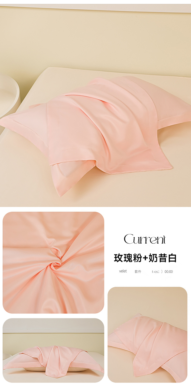 商品名称:多乐家纺 2025新款水洗冰丝真丝纯色双拼枕套 玫瑰粉+奶昔白