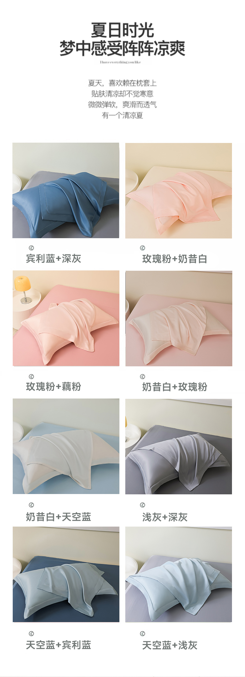 (总)多乐家纺 2025新款水洗冰丝真丝纯色双拼枕套,宾利蓝+深灰,玫瑰粉+奶昔白,玫瑰粉+藕粉,奶昔白+玫瑰粉,奶昔白+天空蓝,浅灰+深灰,天空蓝+宾利蓝,天空蓝+浅灰