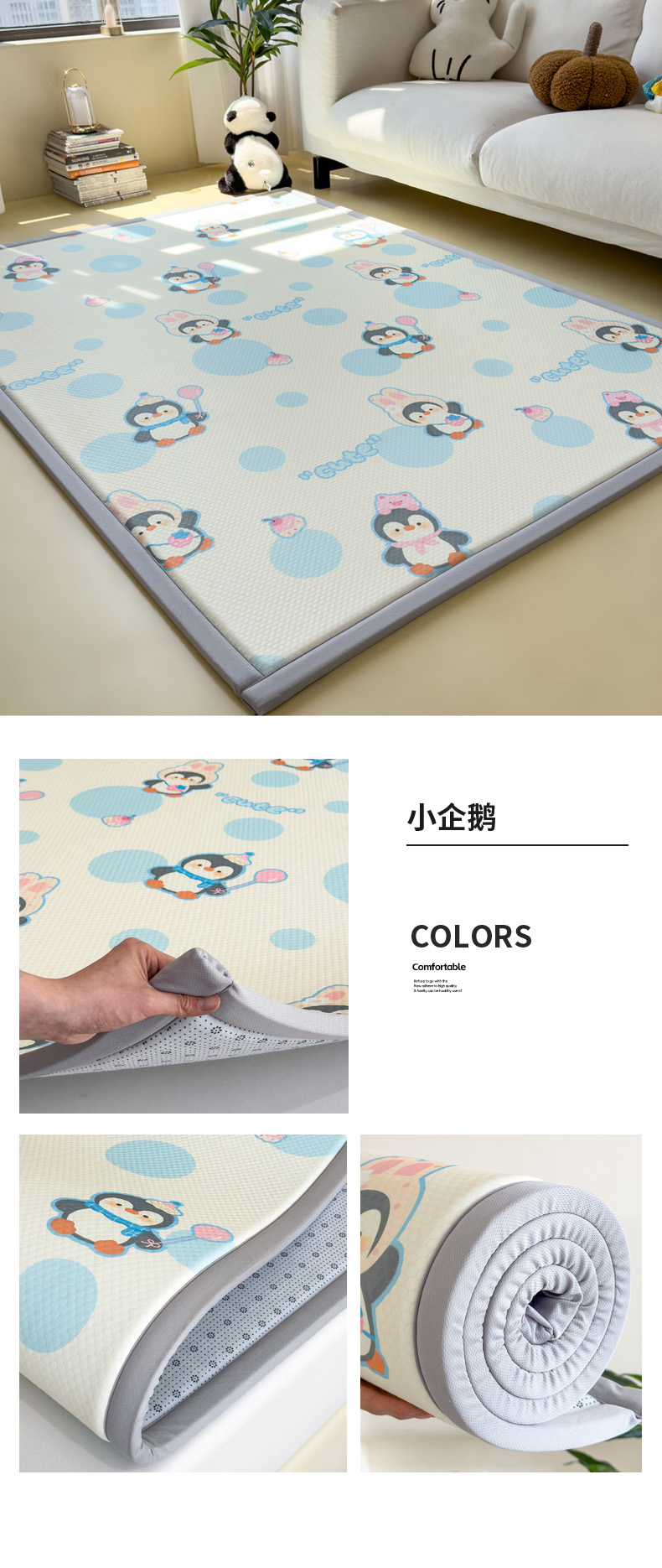 (总)席世家 2025新款印花豆豆多功能地垫凉席垫,斑点狗,小企鹅,熊猫宝宝,小熊兔子,汽车小熊,粉色乐园