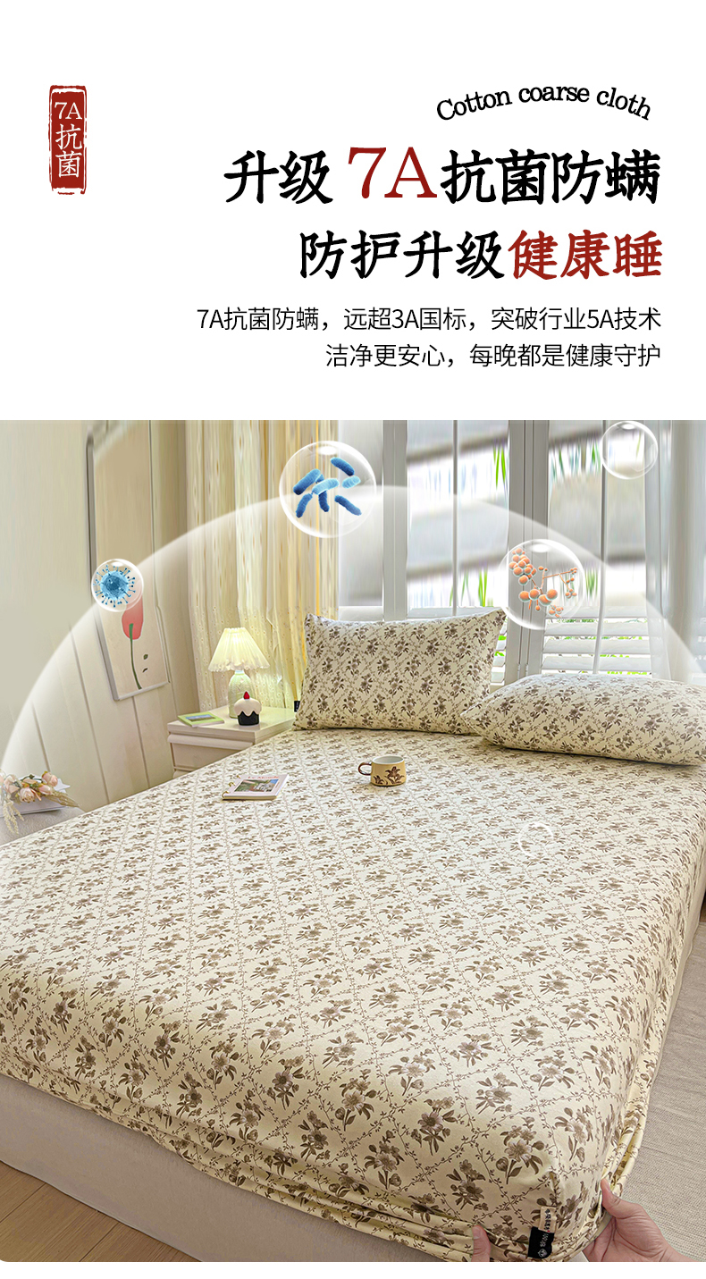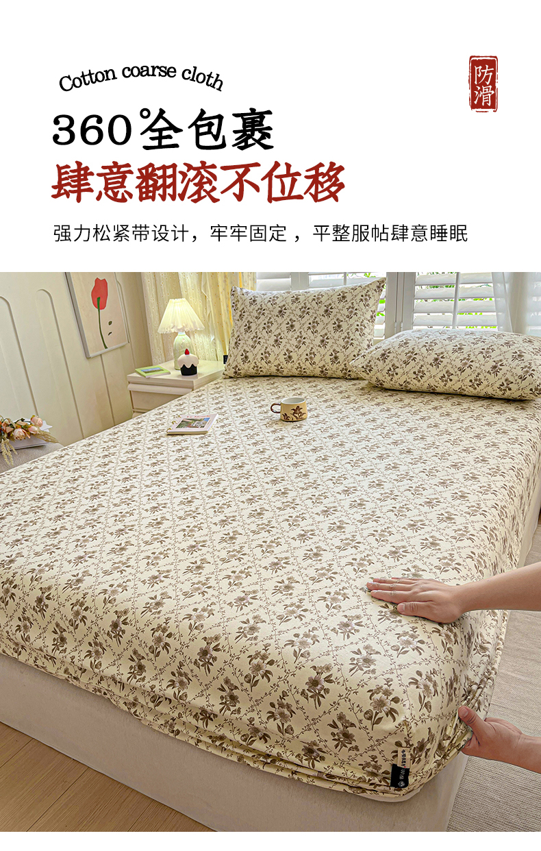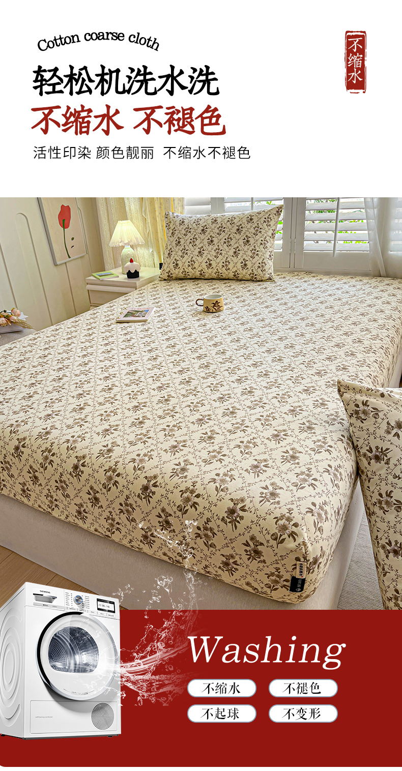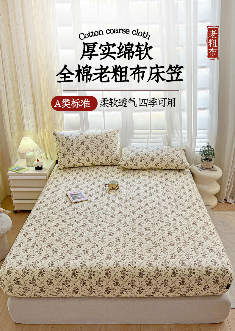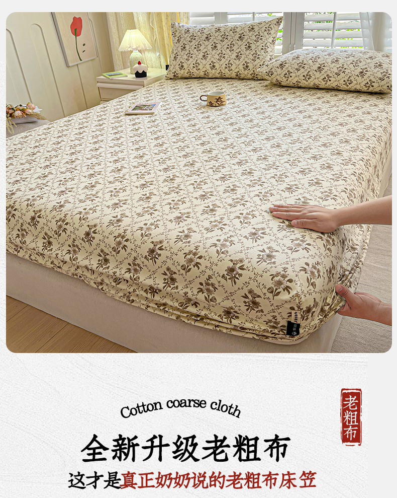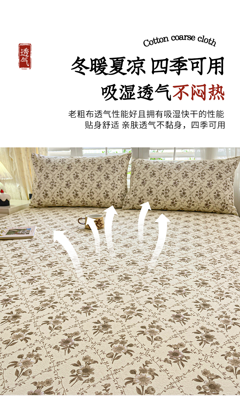 • 91家纺网 家纺一手货源 找家纺 鑫钰 2025新款全棉纯棉老粗布花卉系列单品床单-床笠 床笠-蔷薇