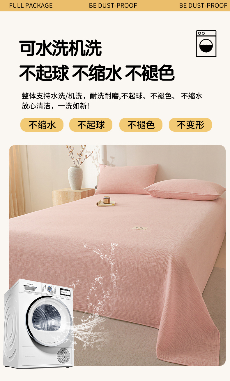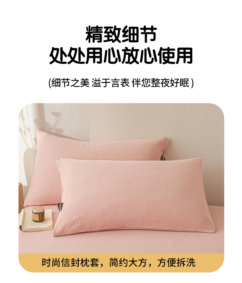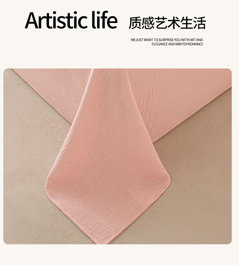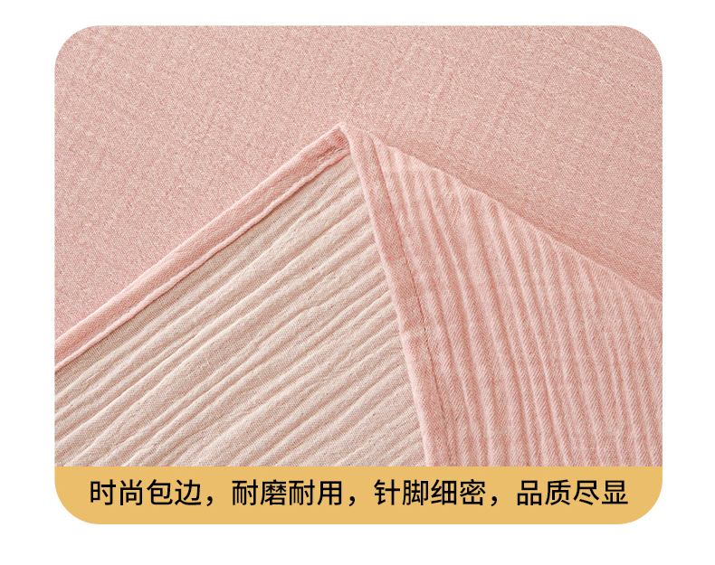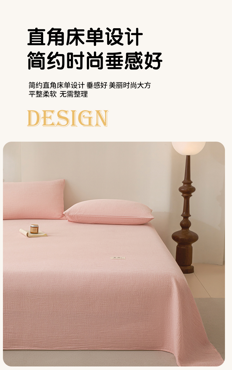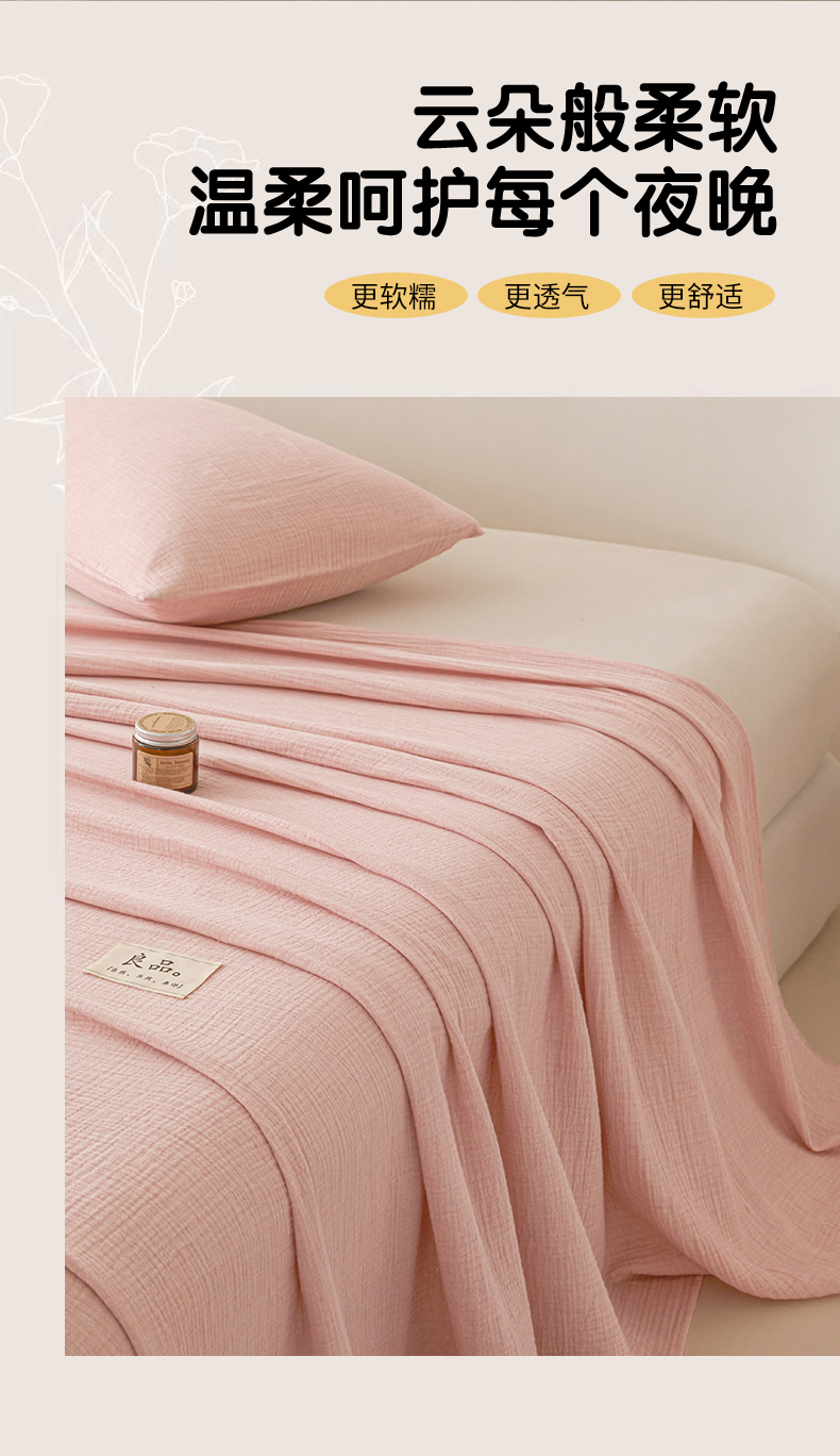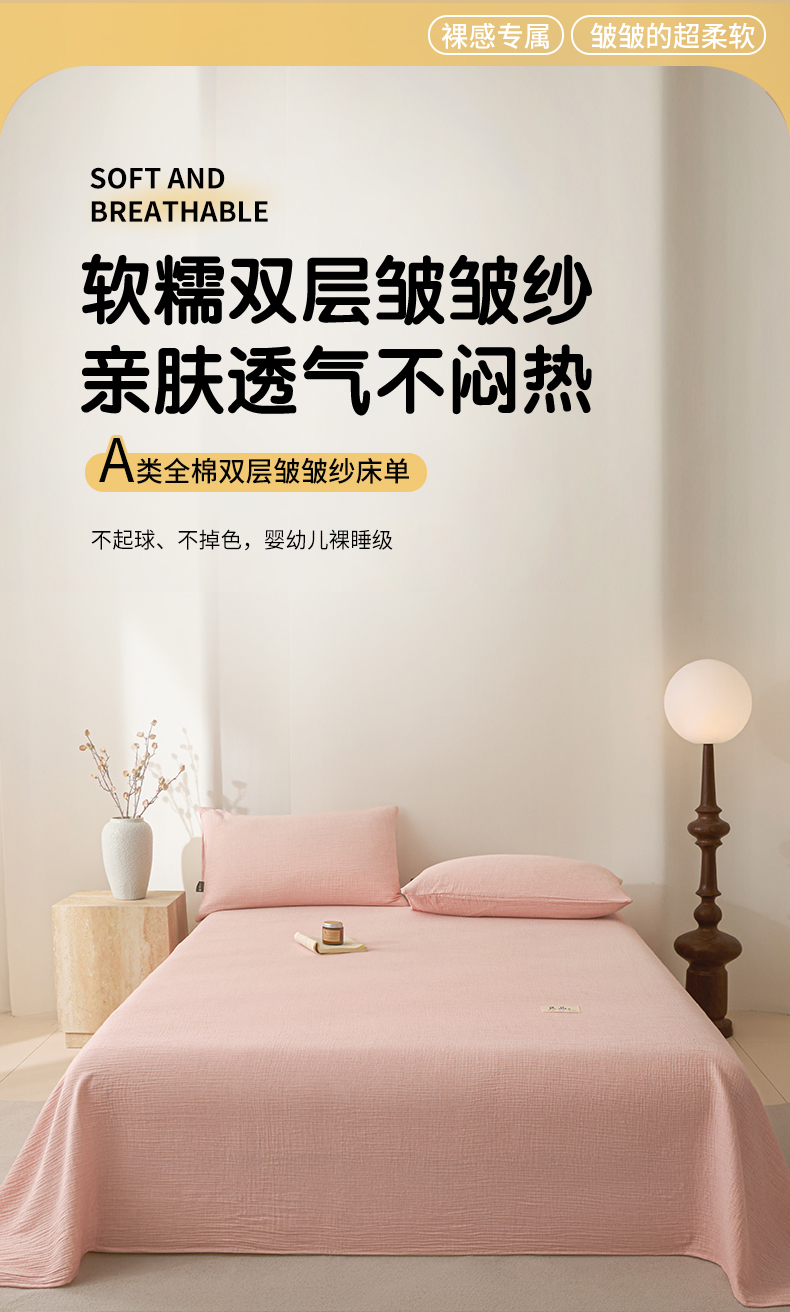 • 91家纺网 家纺一手货源 找家纺 鑫钰 2025新款纯色系列全棉双层皱皱纱床单-床笠 仙女粉-床单