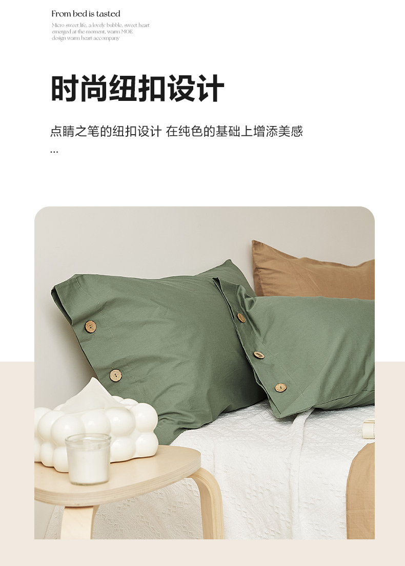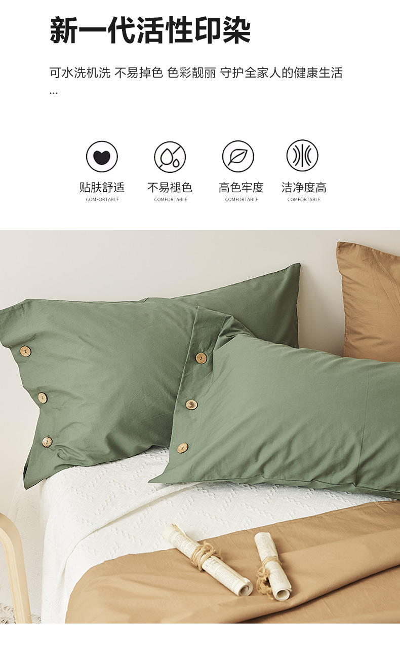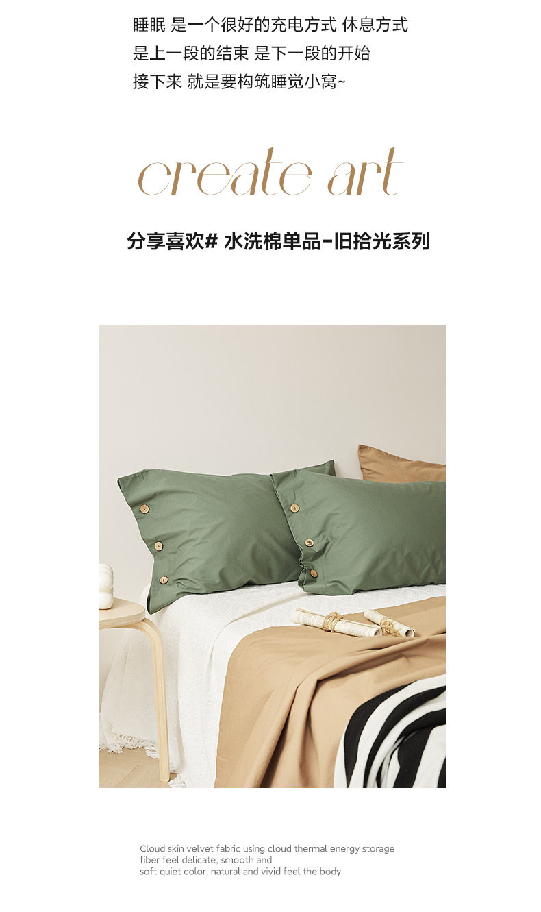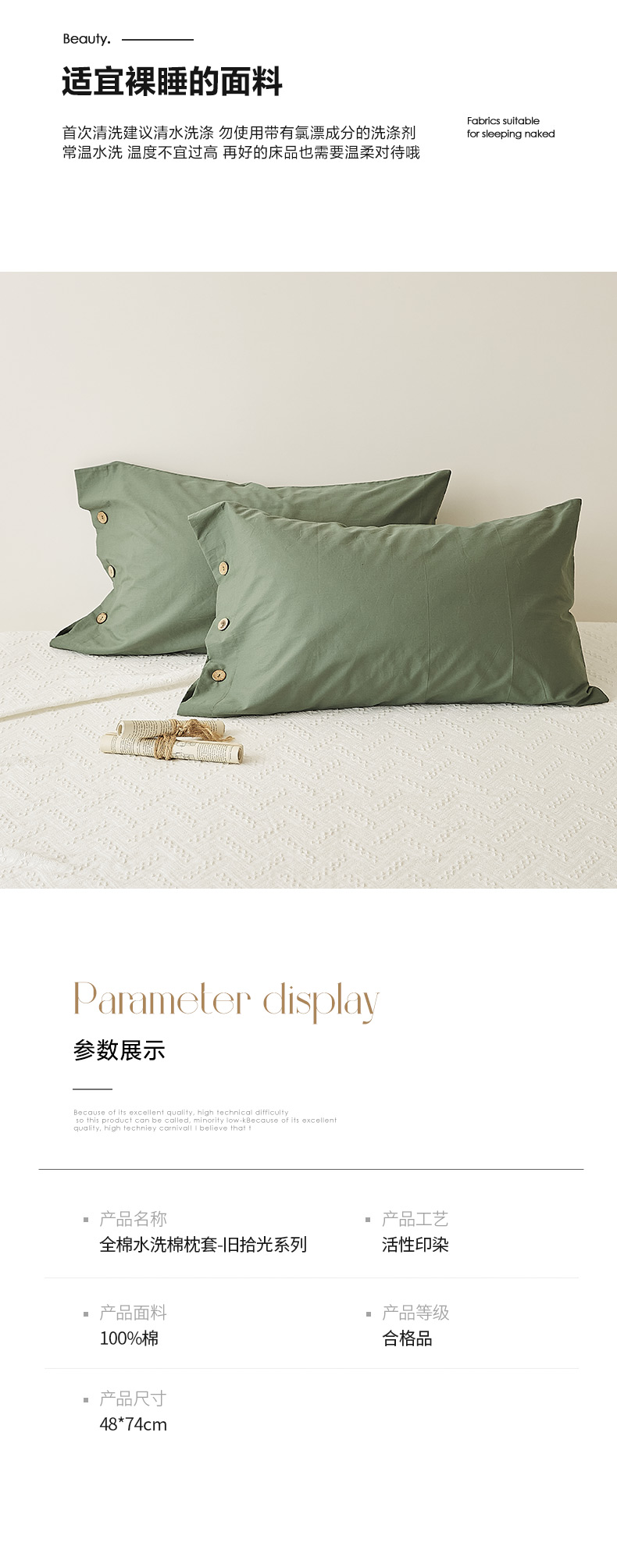 商品名称:EH家居 2025新款旧拾光系列全棉水洗棉单品枕套 旧拾光-墨绿