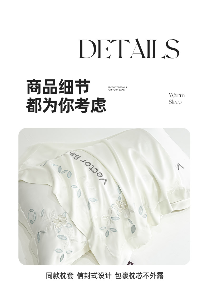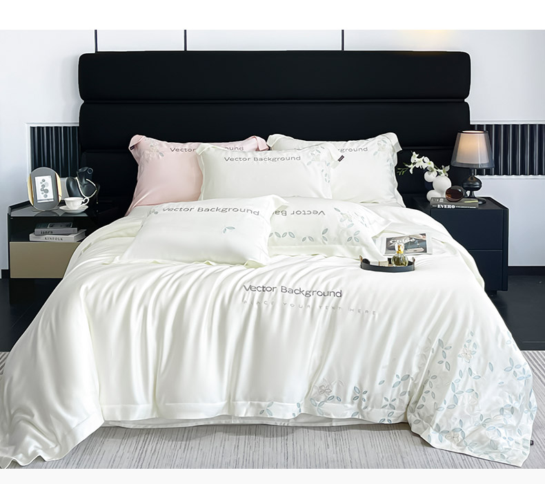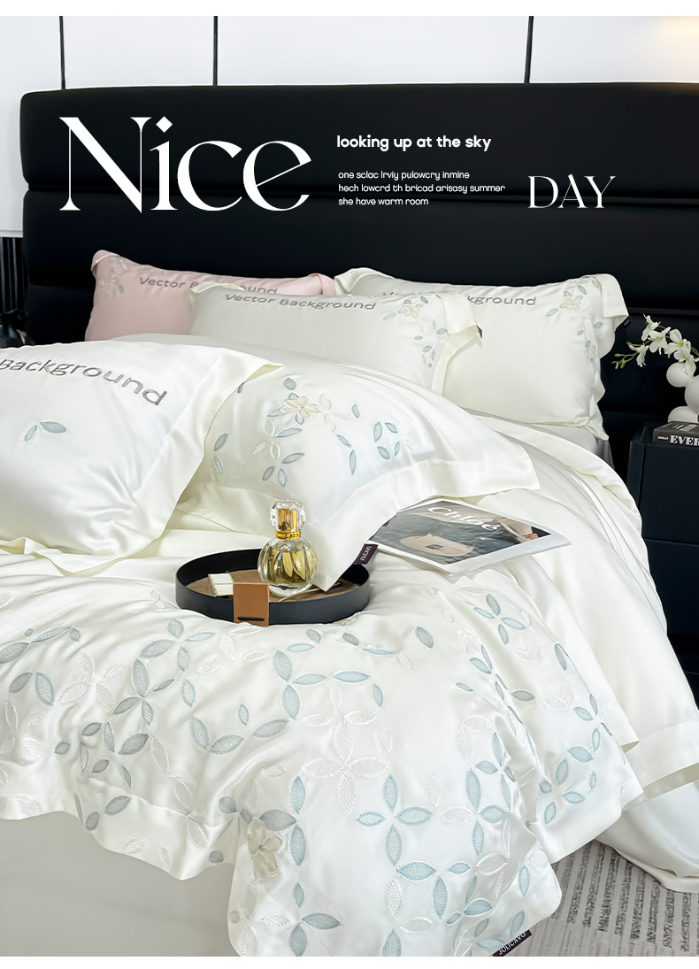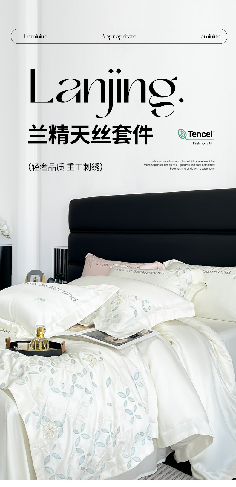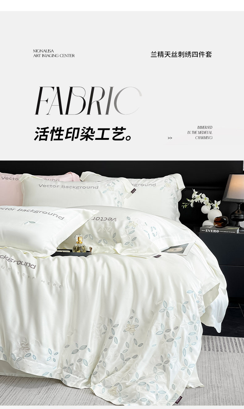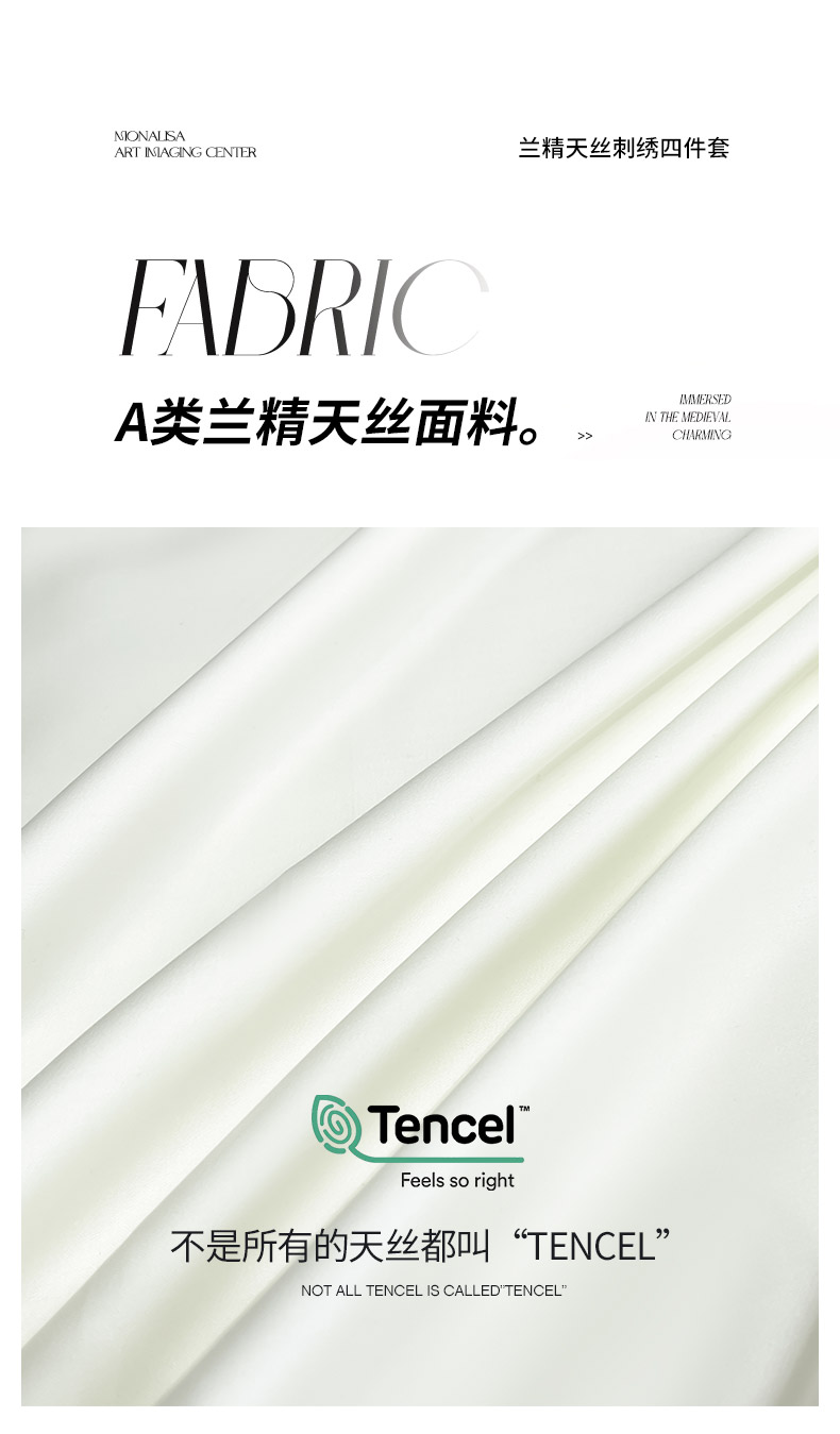 商品名称:2025新款床上用品【夏季爆款】A类兰精天丝四件套真丝重工刺绣被套高端轻奢风纯色 唐云-月光白
