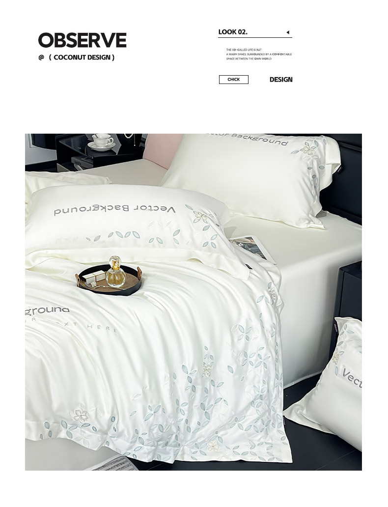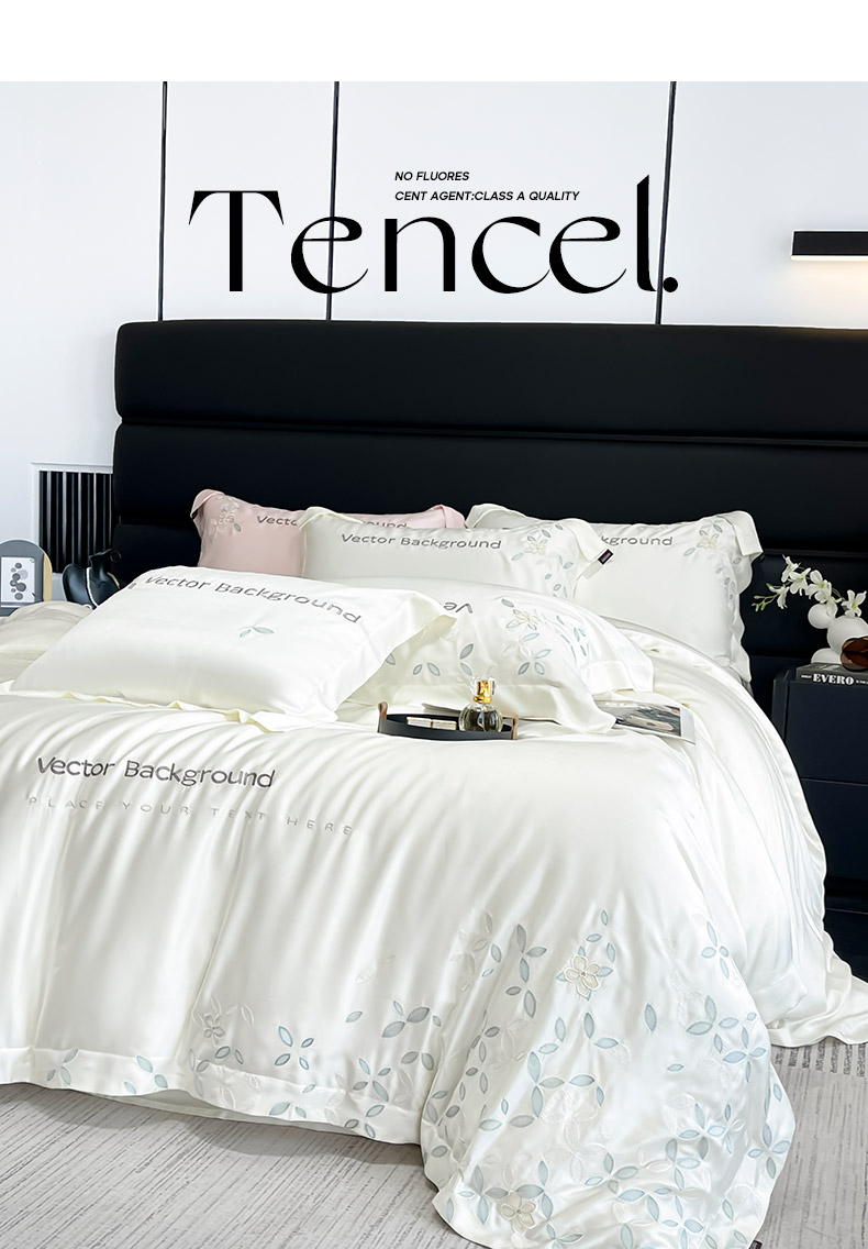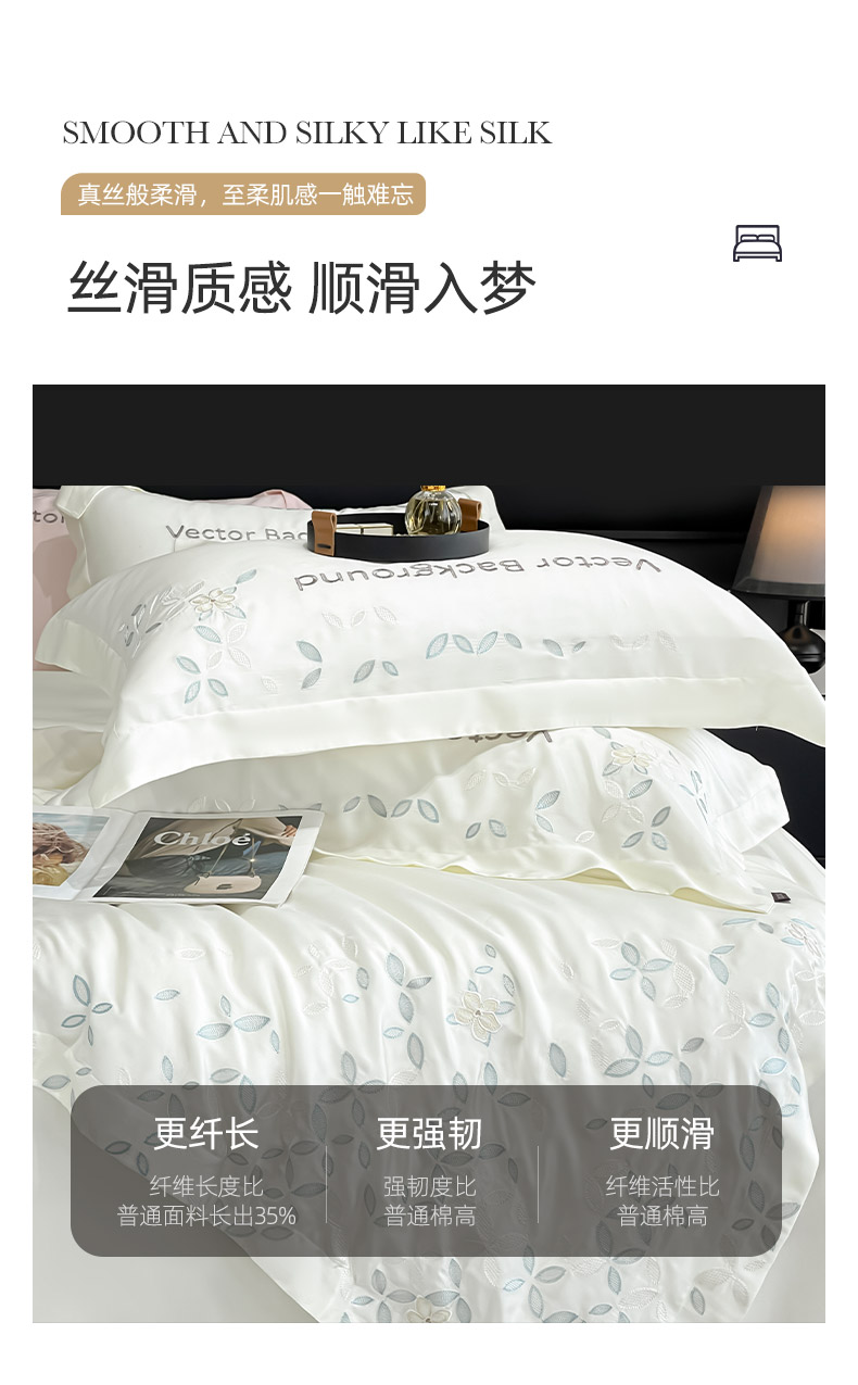 2025新款床上用品【夏季爆款】A类兰精天丝四件套真丝重工刺绣被套高端轻奢风纯色 唐云-月光白