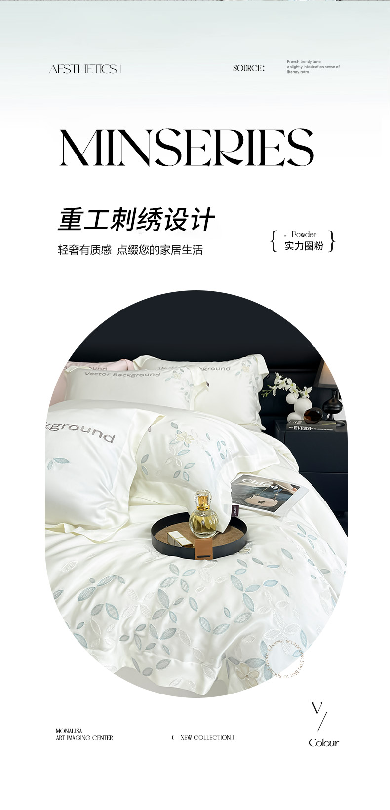 (总) 2025春夏长绒棉四件套纯棉全棉轻奢风床单被套重工刺绣床上用品,芊羽梦-白粉,芊羽梦-茶绿,芊羽梦-黛紫,芊羽梦-慕蓝,芊羽梦-颜粉