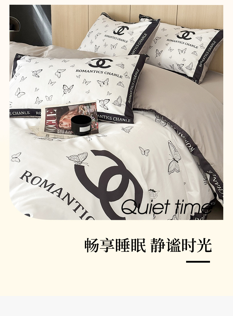 (总)色鬼布艺高端家居主号 2025新款轻奢亲肤纯棉数码印花网红热款四件套,豹纹香,白金V,白香花,大H,黑白迪,黑白V,灰迪,咖古,克莱因,慕斯小姐,山茶花,星空