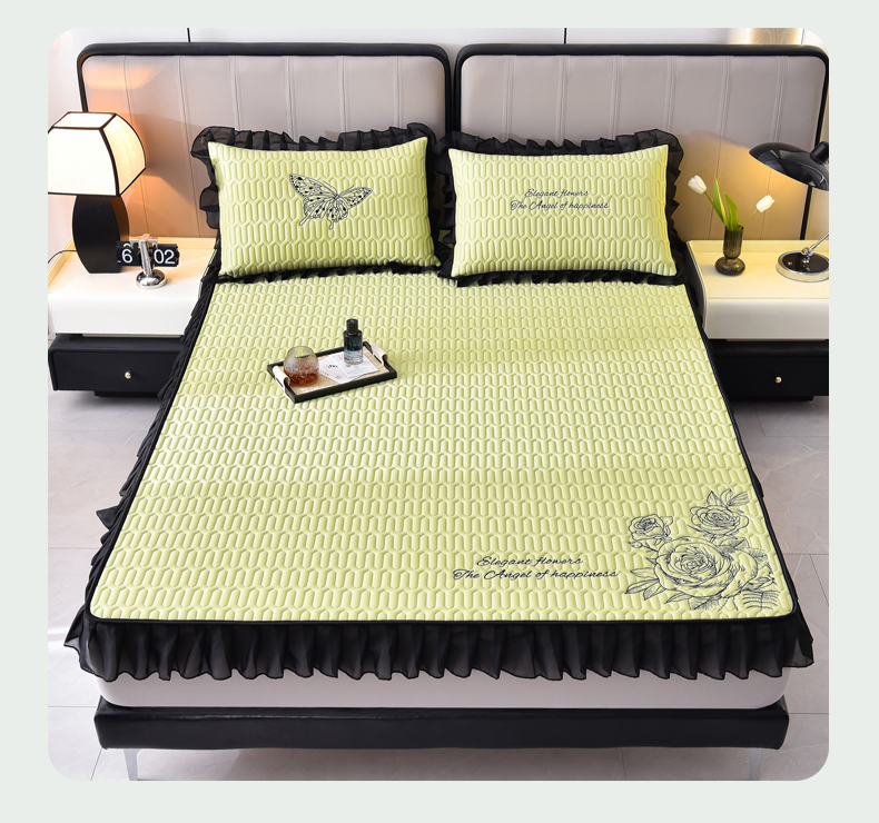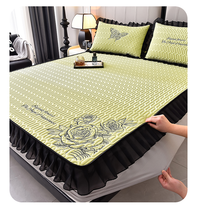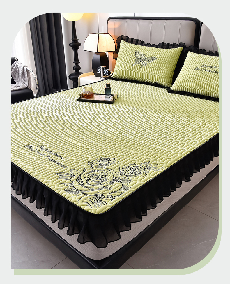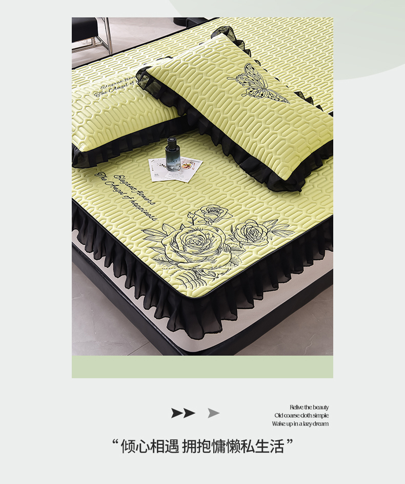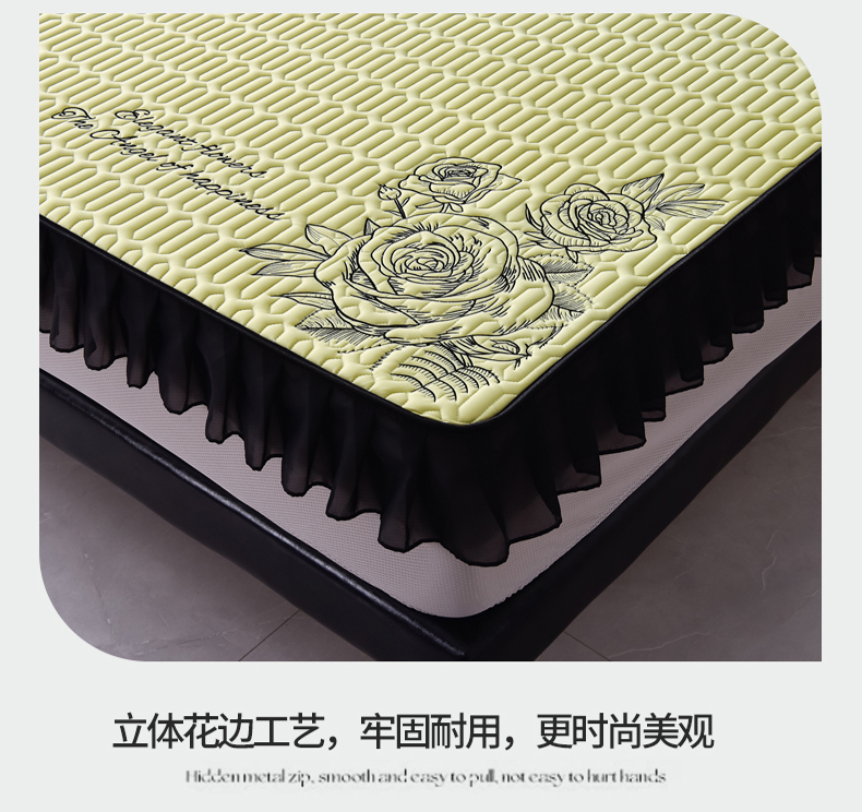 炫拼家纺 2025春夏新款A类凉感丝花边床笠款乳胶凉席-法式玫瑰 法式玫瑰-仙草绿