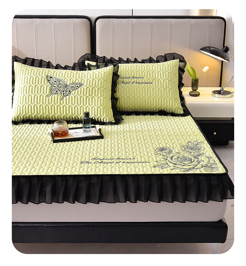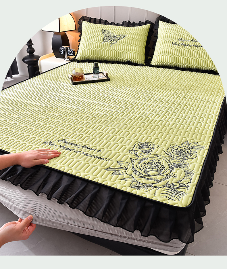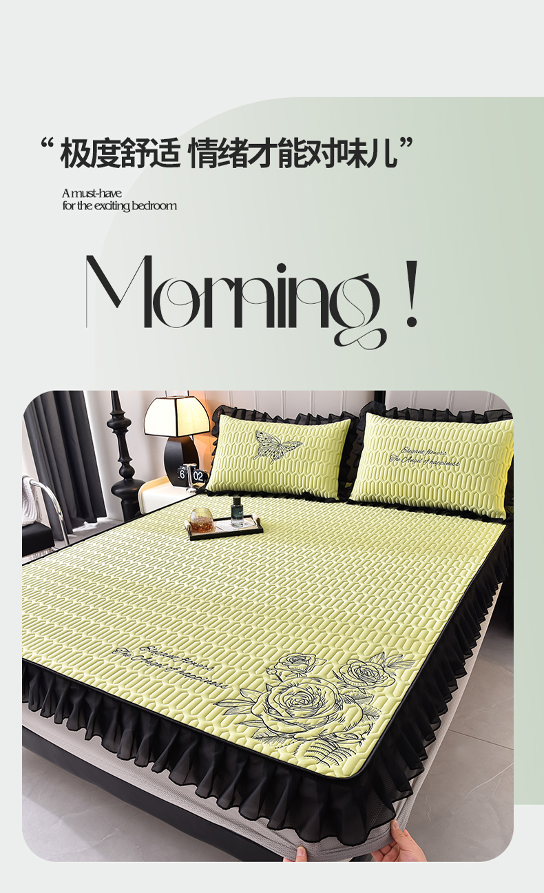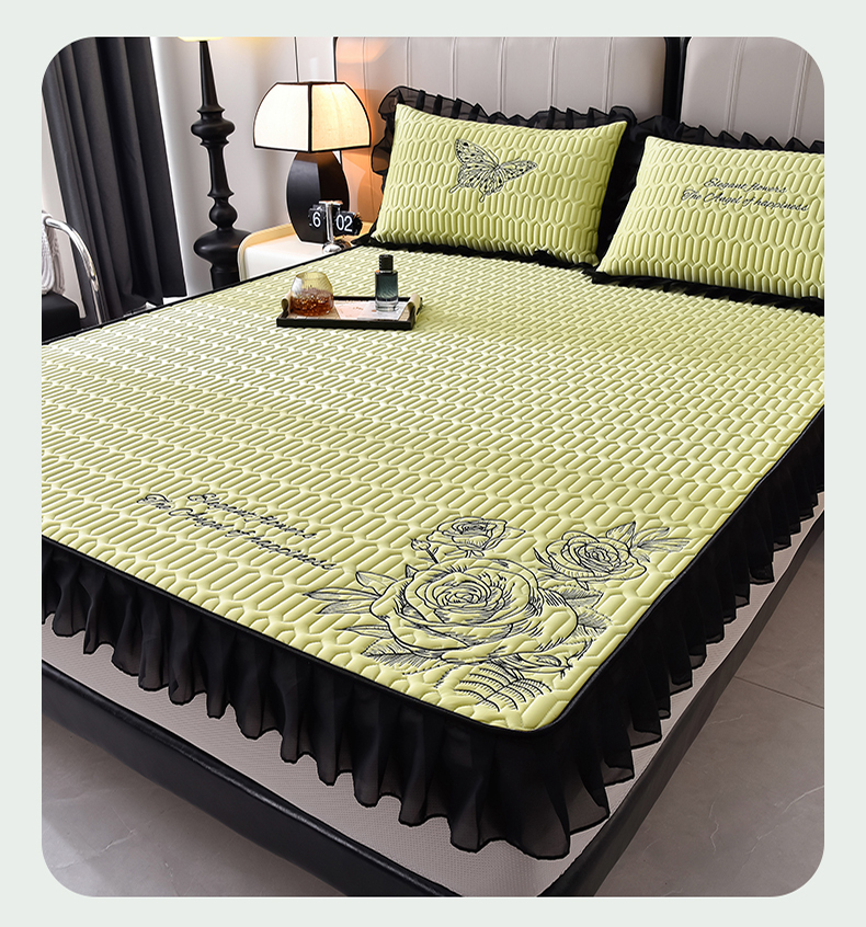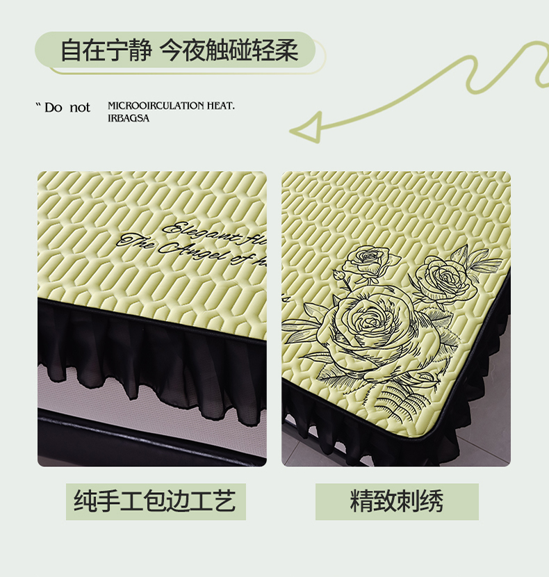 炫拼家纺 2025春夏新款A类凉感丝花边床笠款乳胶凉席-法式玫瑰 法式玫瑰-仙草绿