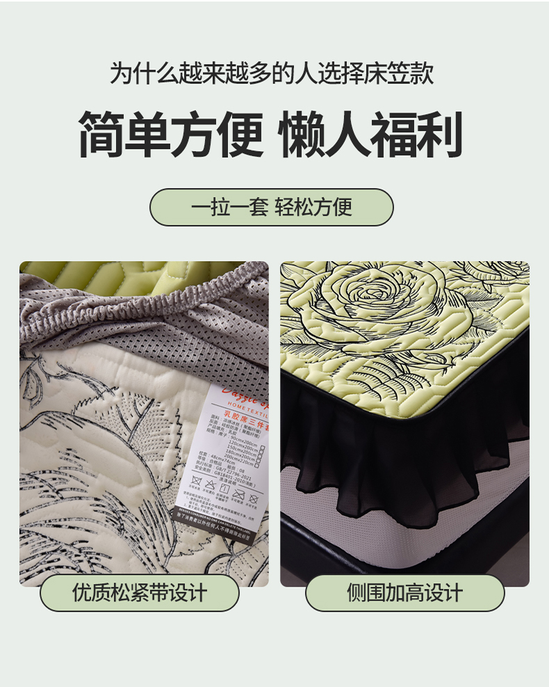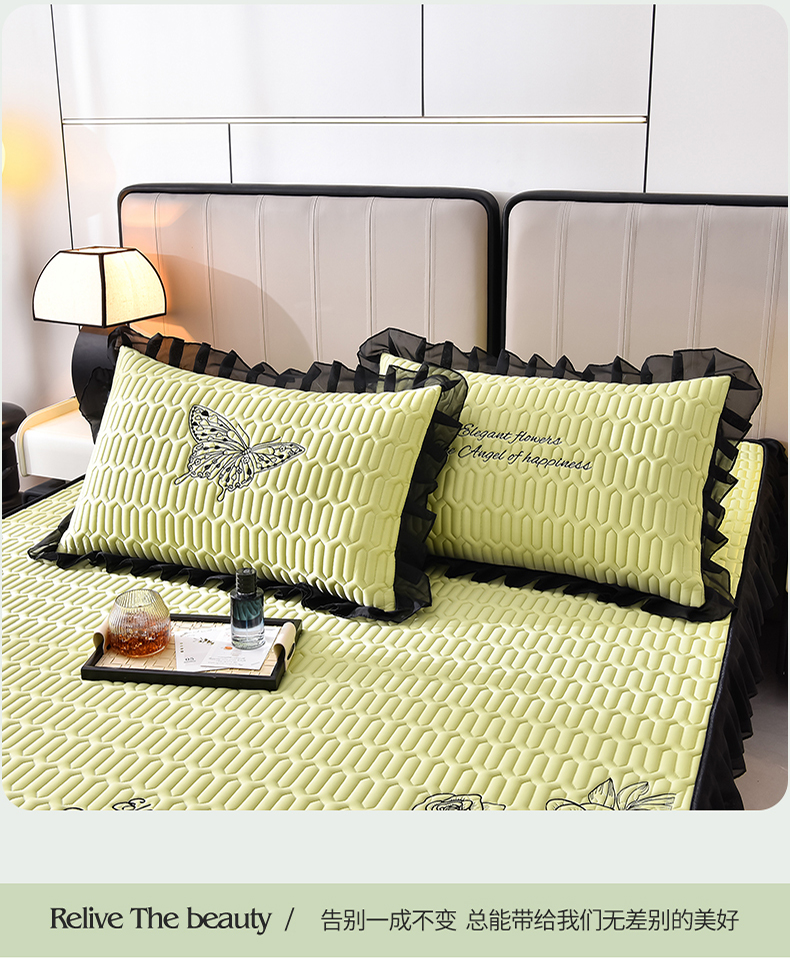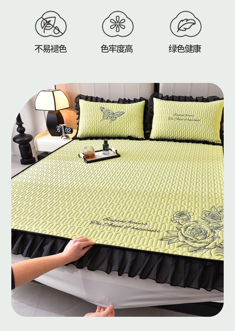 商品名称:炫拼家纺 2025春夏新款A类凉感丝花边床笠款乳胶凉席-法式玫瑰 法式玫瑰-仙草绿
