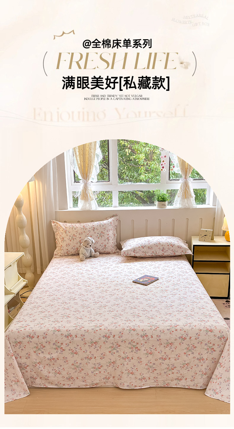 • 91家纺网 家纺一手货源 找家纺 大吉 2025新款亲肤舒适全棉纯棉喷气小清新印花系列单床单床单单件单品床单 花语蔷薇