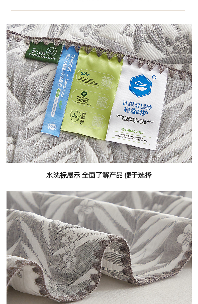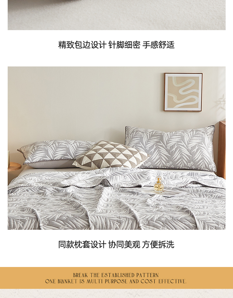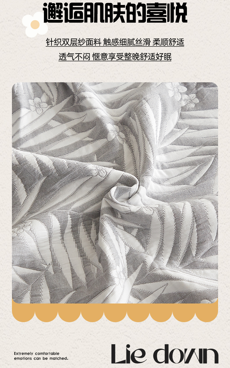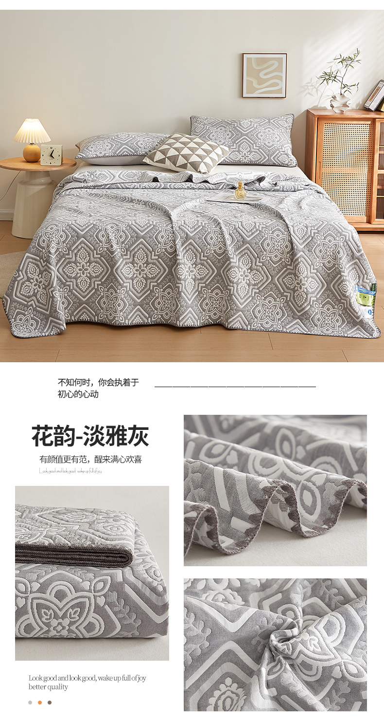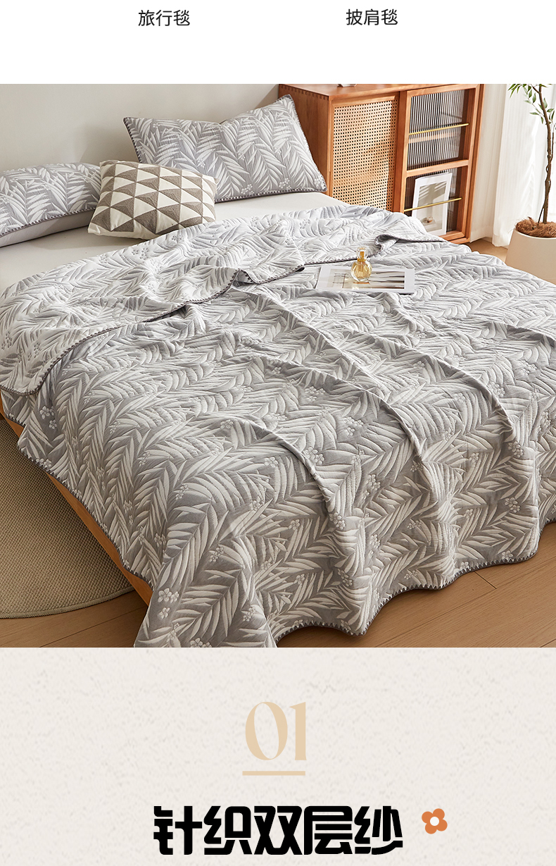 商品名称:梦镜家纺 2025新款A类针织双层纱盖毯毯子 细叶-雅致灰