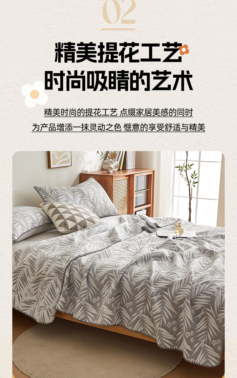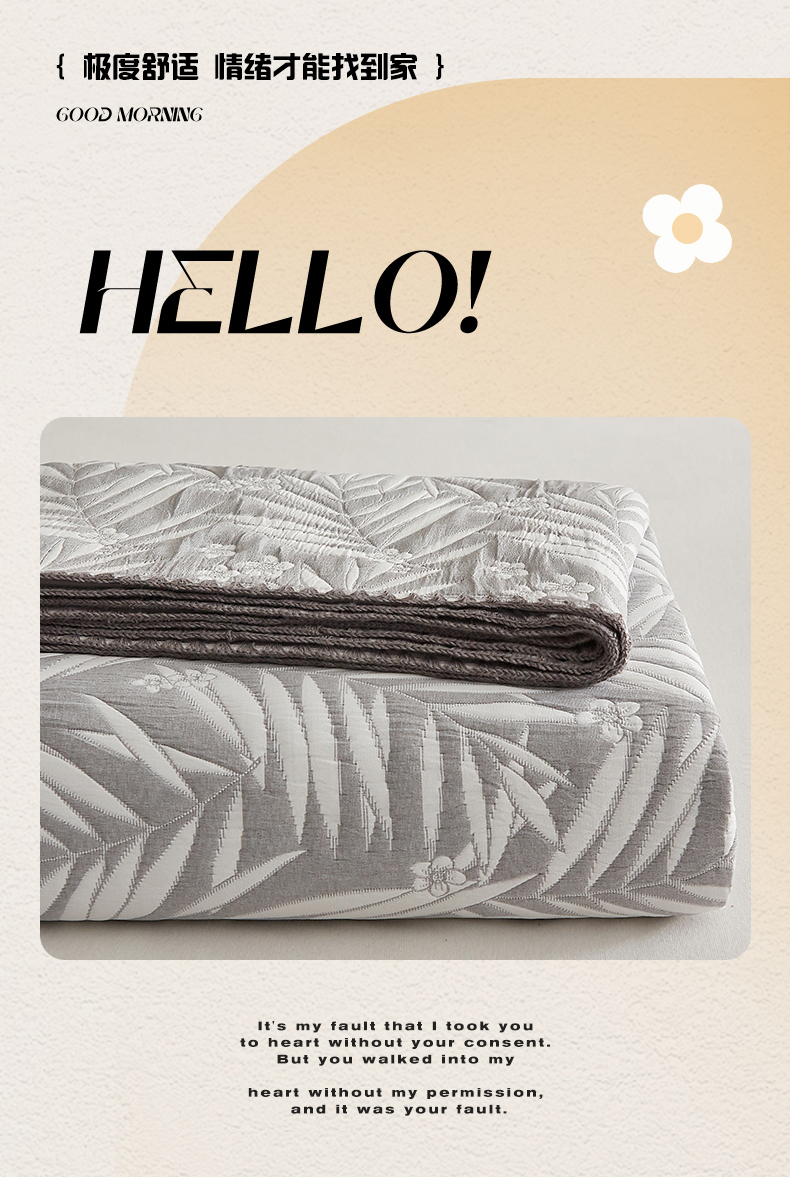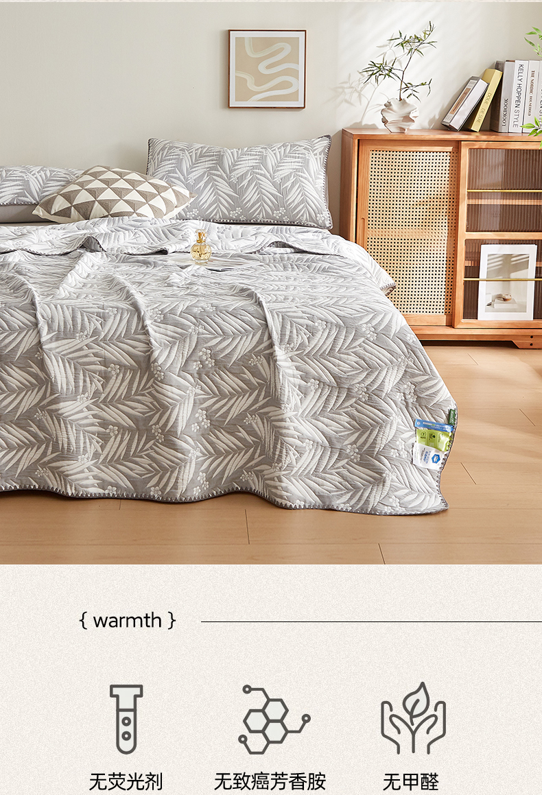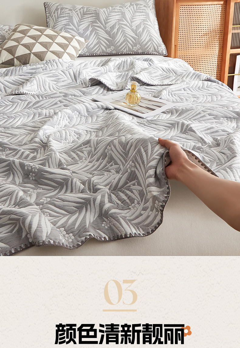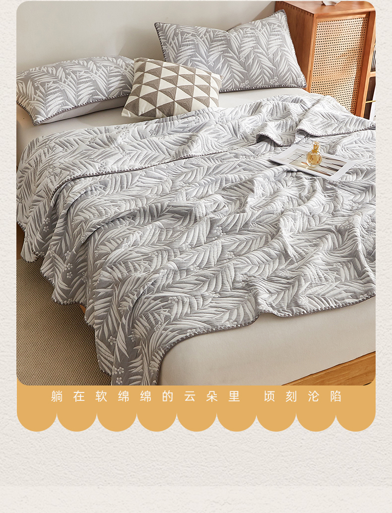 商品名称:梦镜家纺 2025新款A类针织双层纱盖毯毯子 细叶-雅致灰
