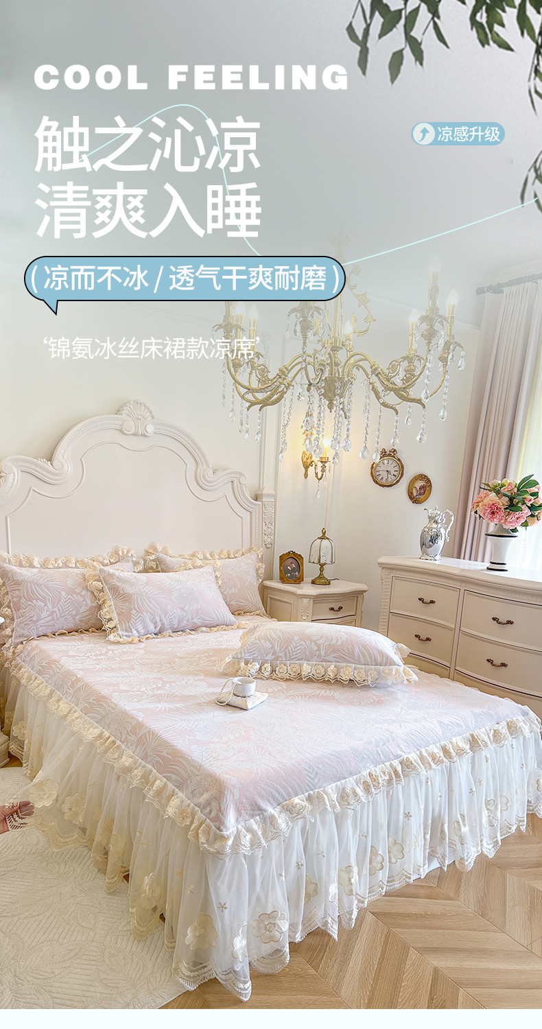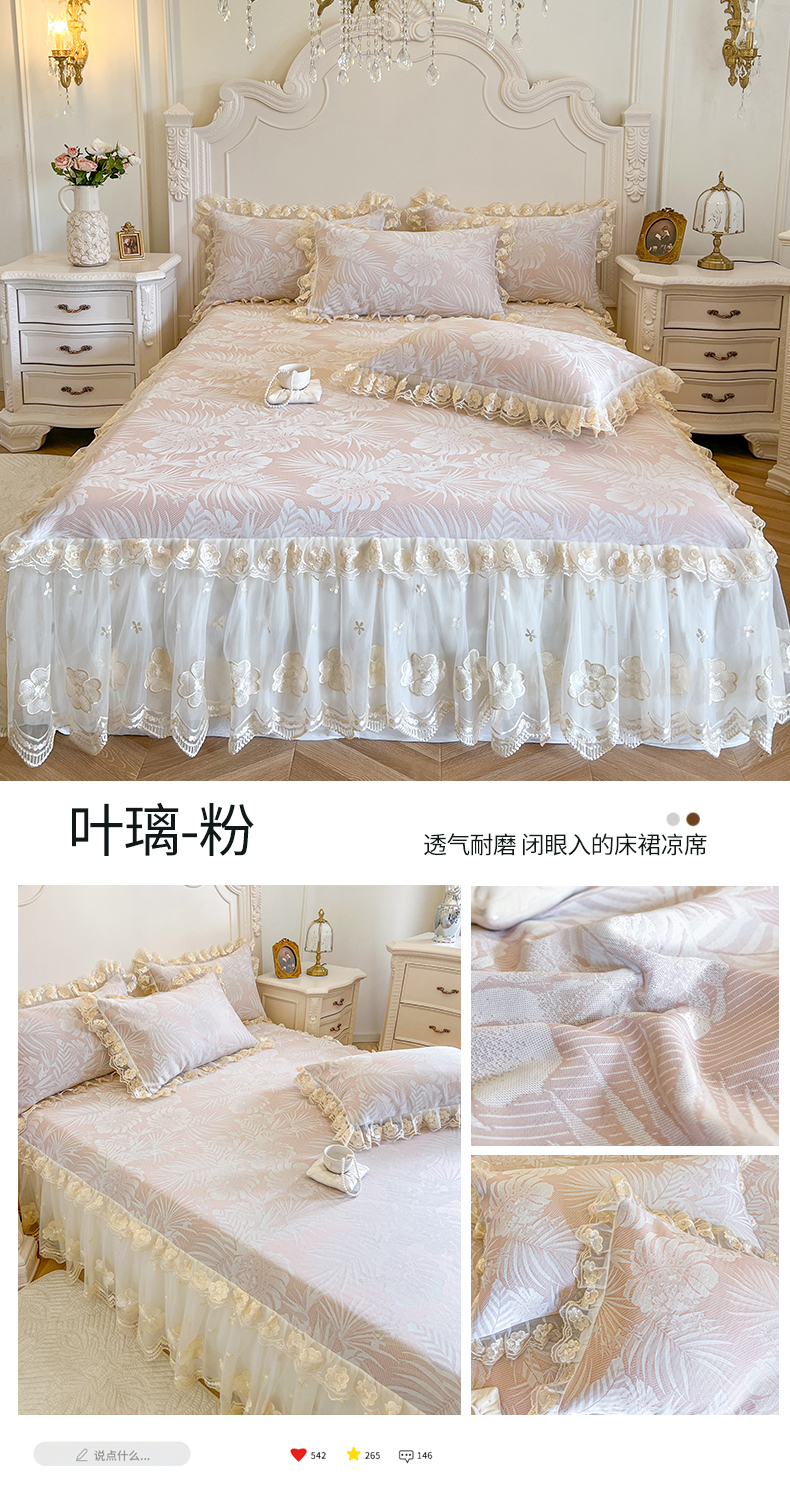 商品名称:网红馆(ck家纺) 2025新款提花冰丝席床裙款凉席席子三件套-叶璃 叶璃-粉