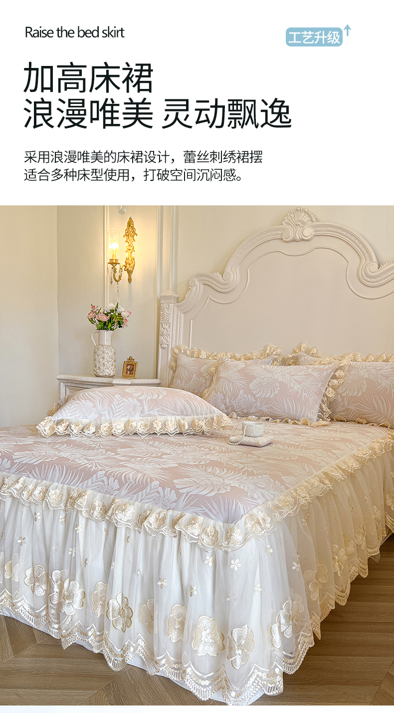 (总)网红馆(ck家纺) 2026新款全棉蕾丝花边床裙款床笠晨暮花间系列,绯红,粉色,麦绿,米色,浅紫,雾蓝