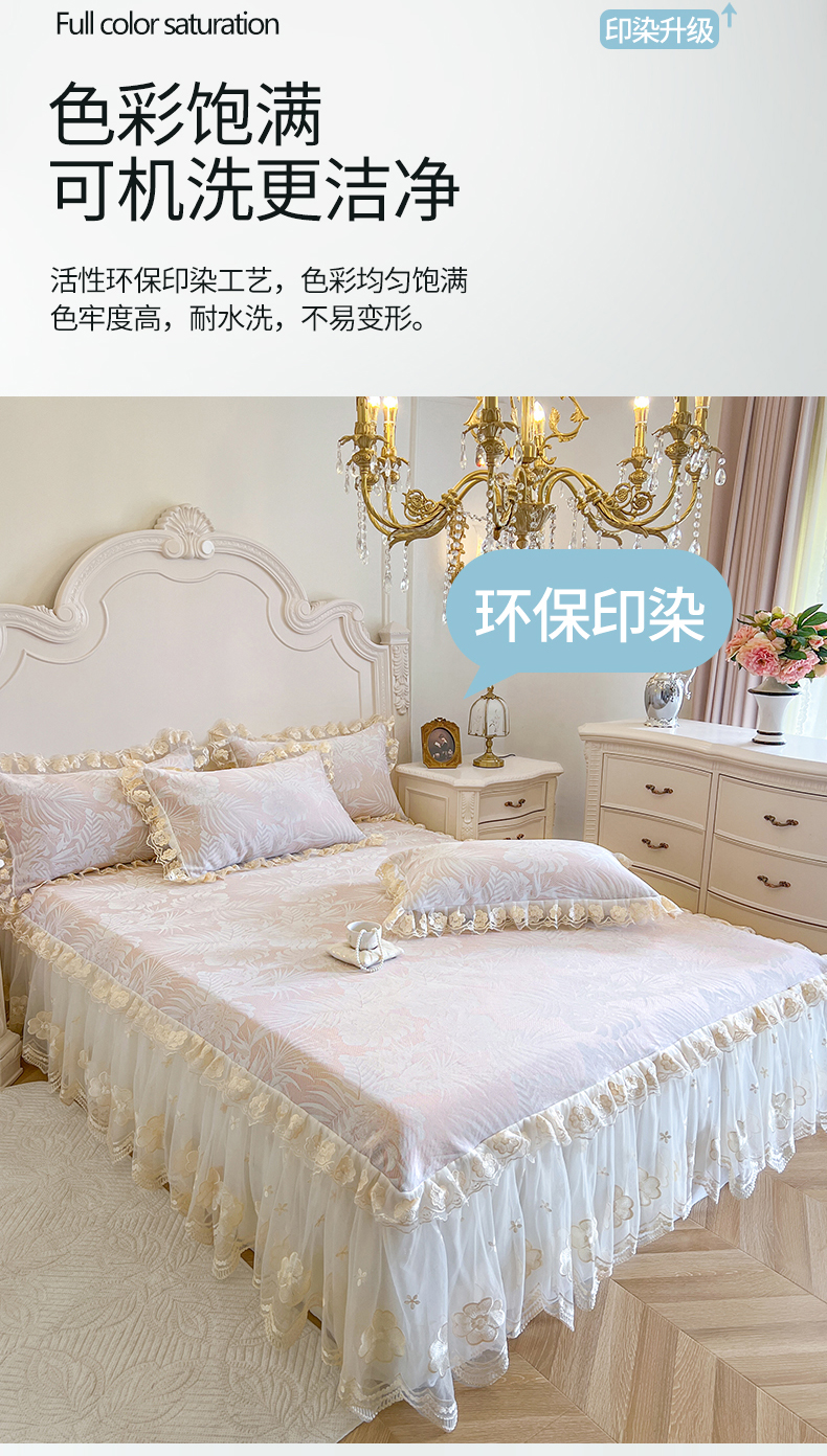 (总)网红馆(ck家纺) 2026新款喜芙棉蕾丝夹棉蜜芙蕾床笠,冰清蓝,豆蔻绿,奶油白,凝脂玉,雾灰,樱花粉