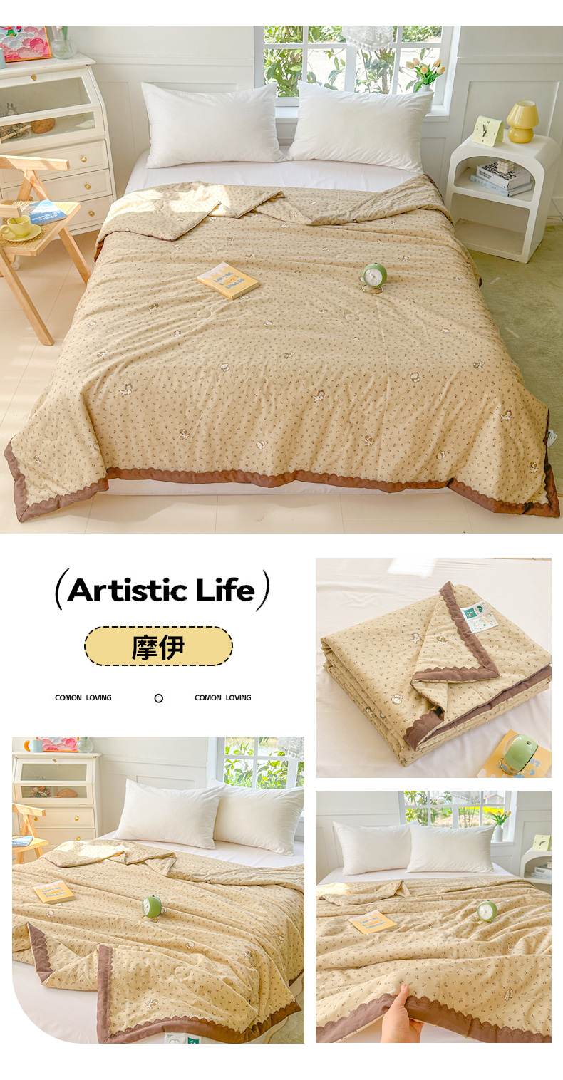 商品名称:2025新款全棉60支单层纱花边夏被 摩伊