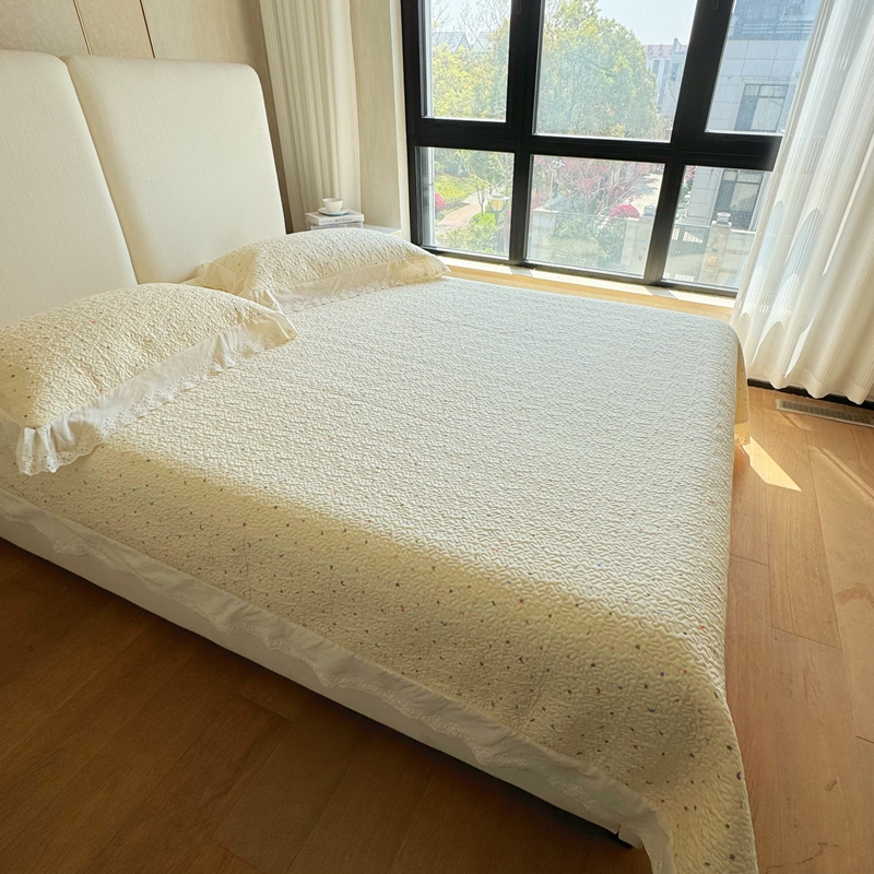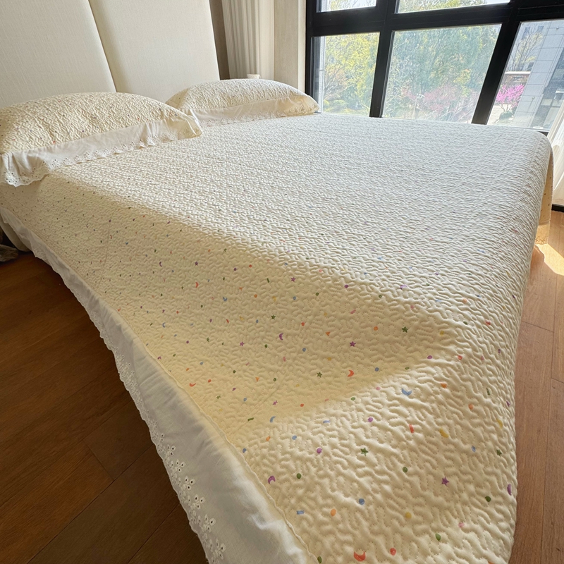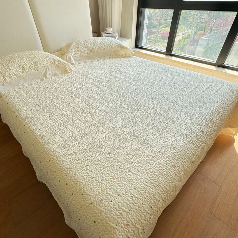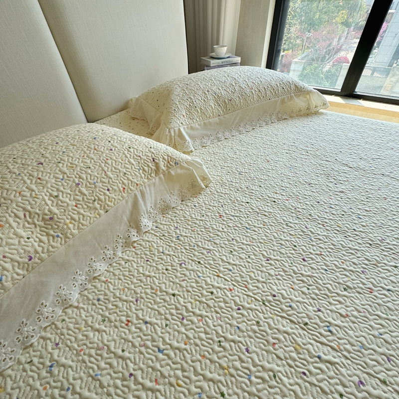 商品名称:8+8 2025新款全棉双层纱床盖三件套 蜡笔画