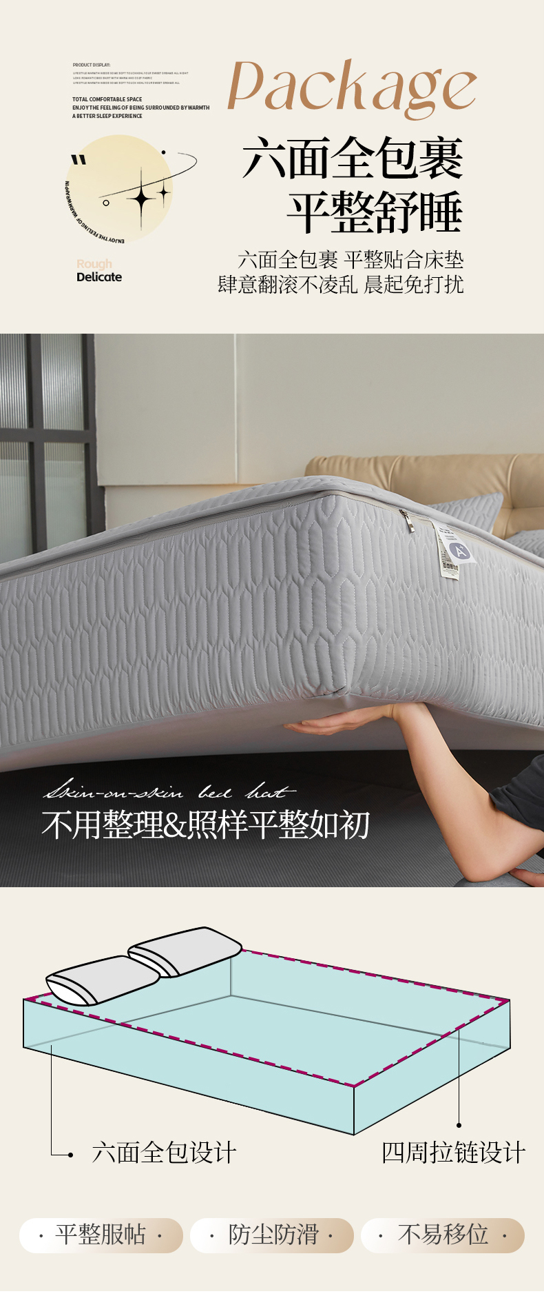 • 91家纺网 家纺一手货源 找家纺 (总)伊人坊 2025新款A类全棉水洗棉六面全包夹棉床笠床垫保护套拉链床笠,云朵白,浅米驼,青果绿,时尚灰,天空蓝,樱花粉