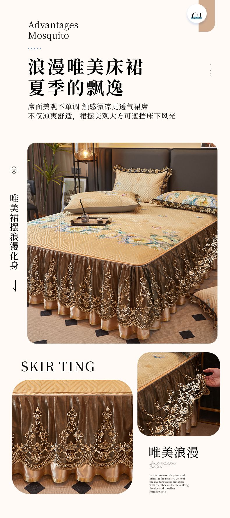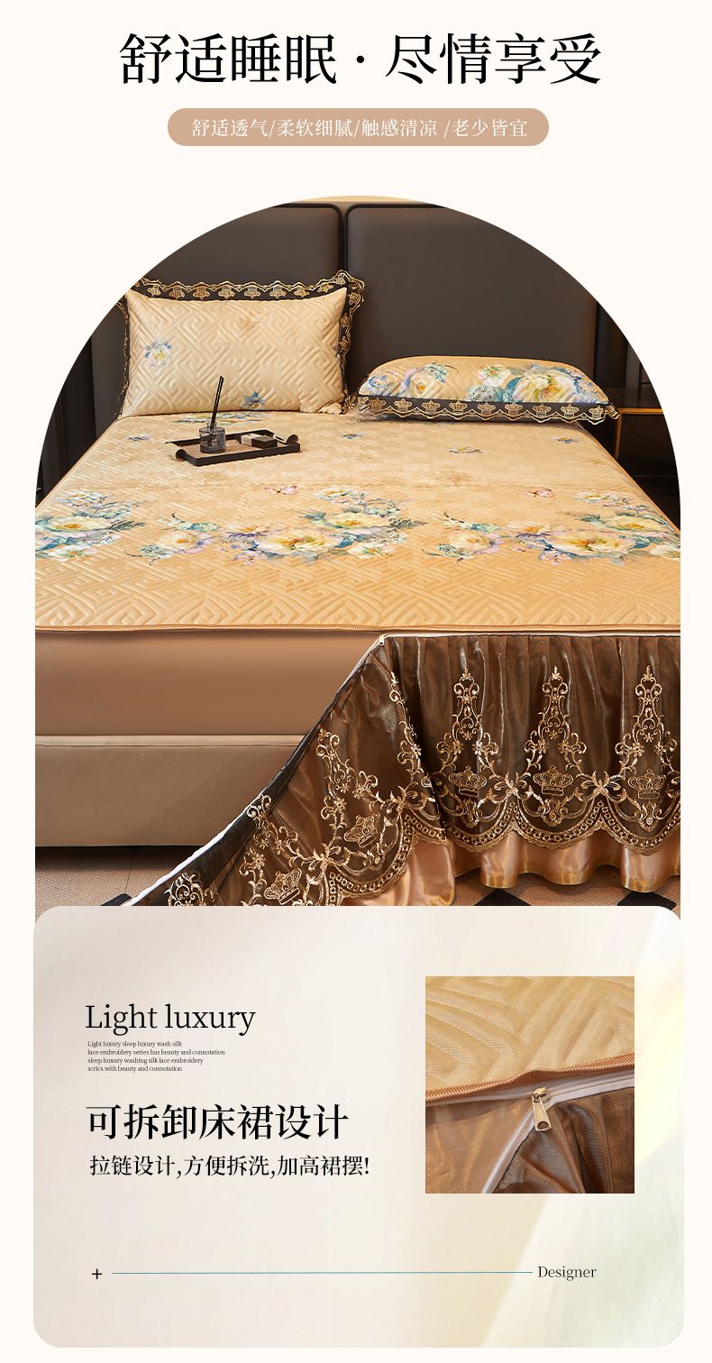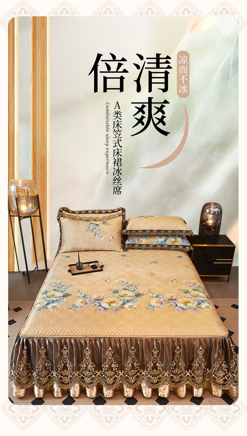 商品名称:(总)罗艺轩 2025新款可拆卸床笠式床裙印花冰丝席