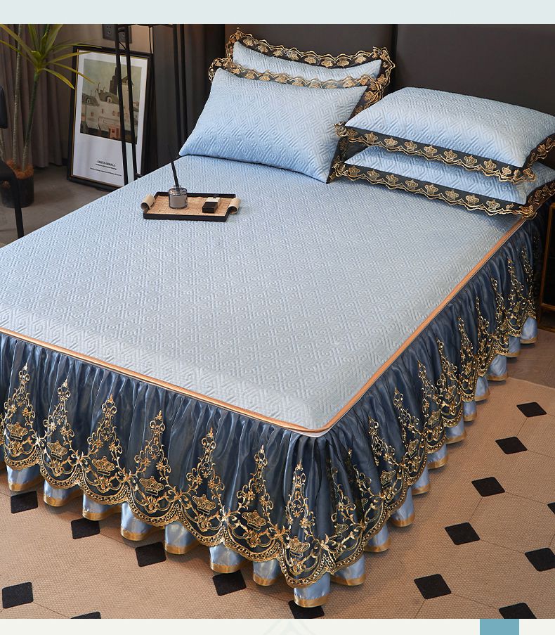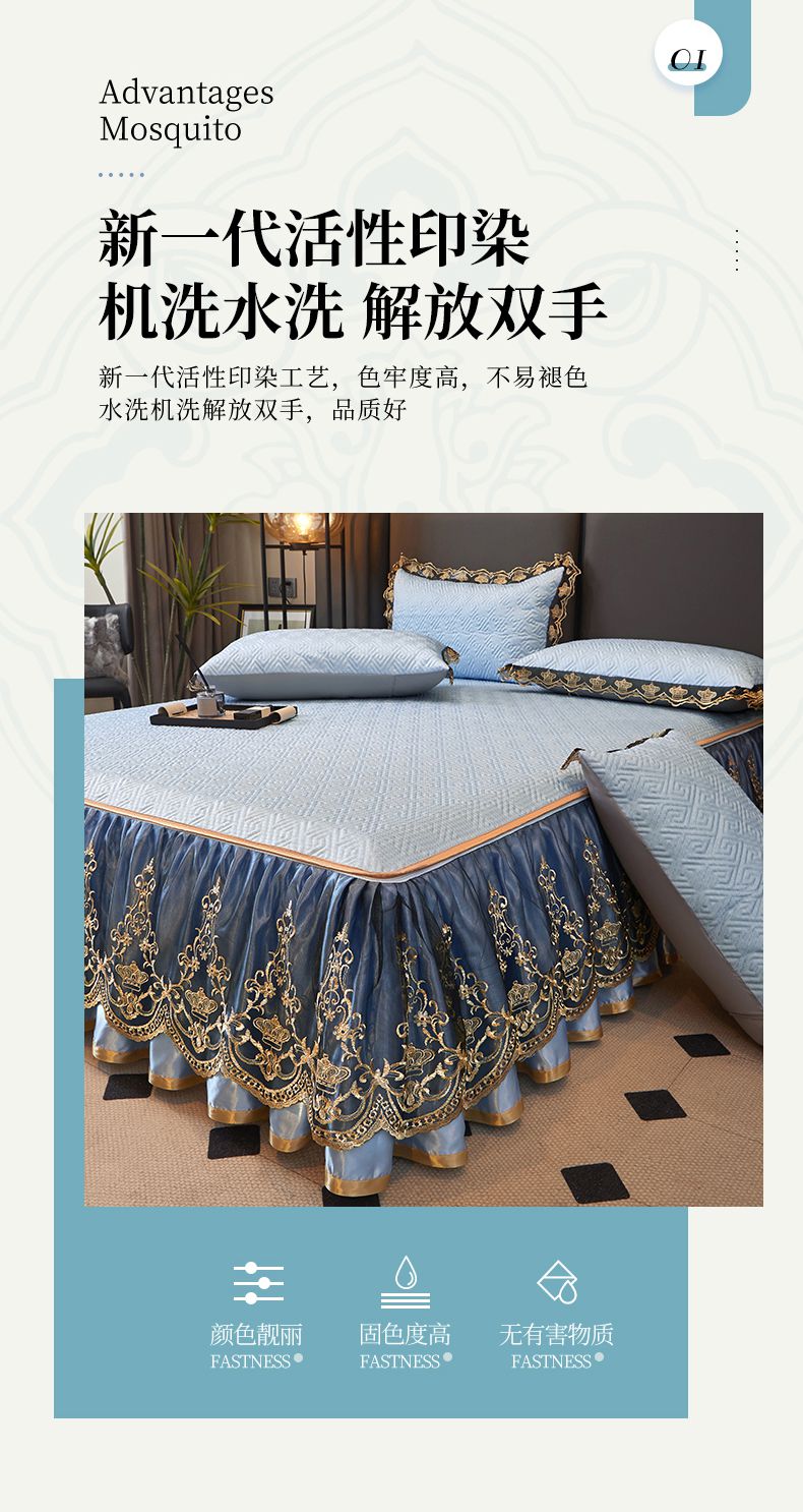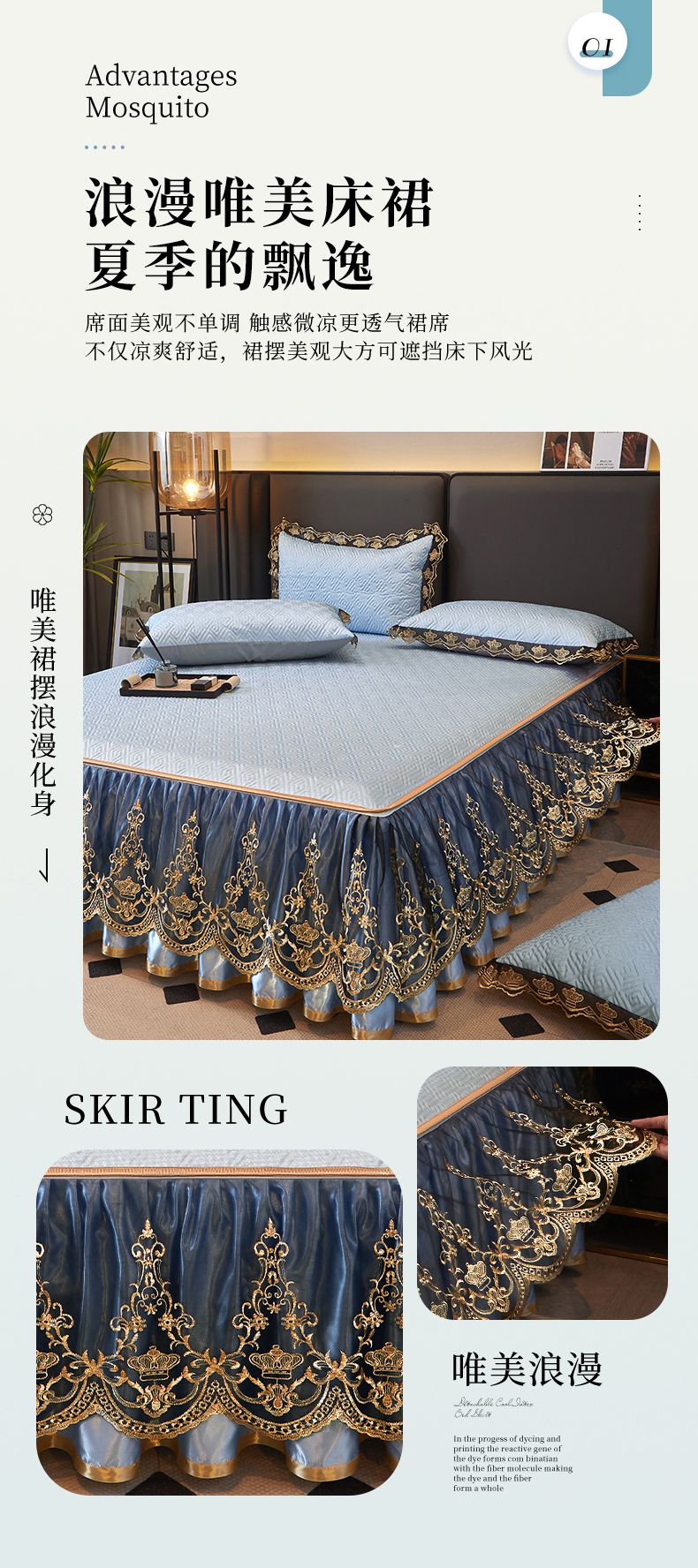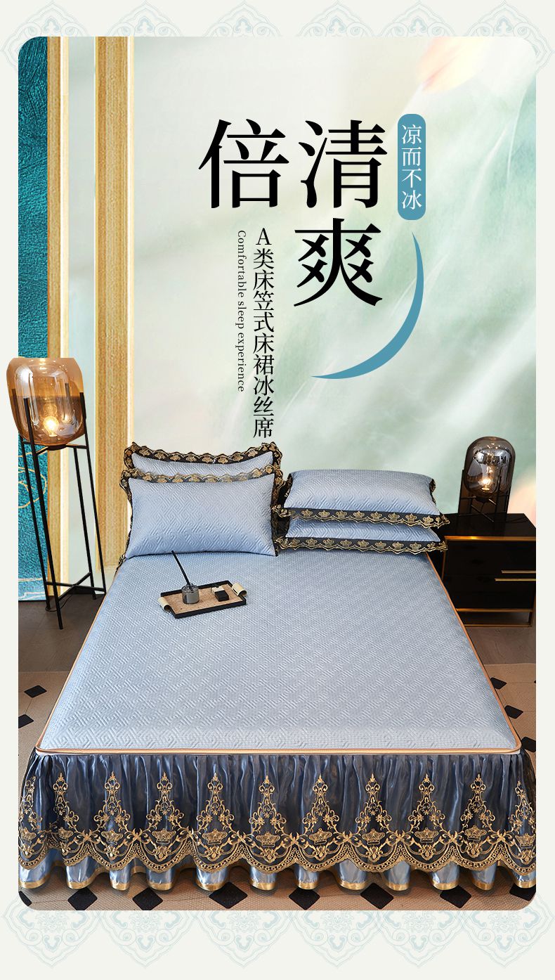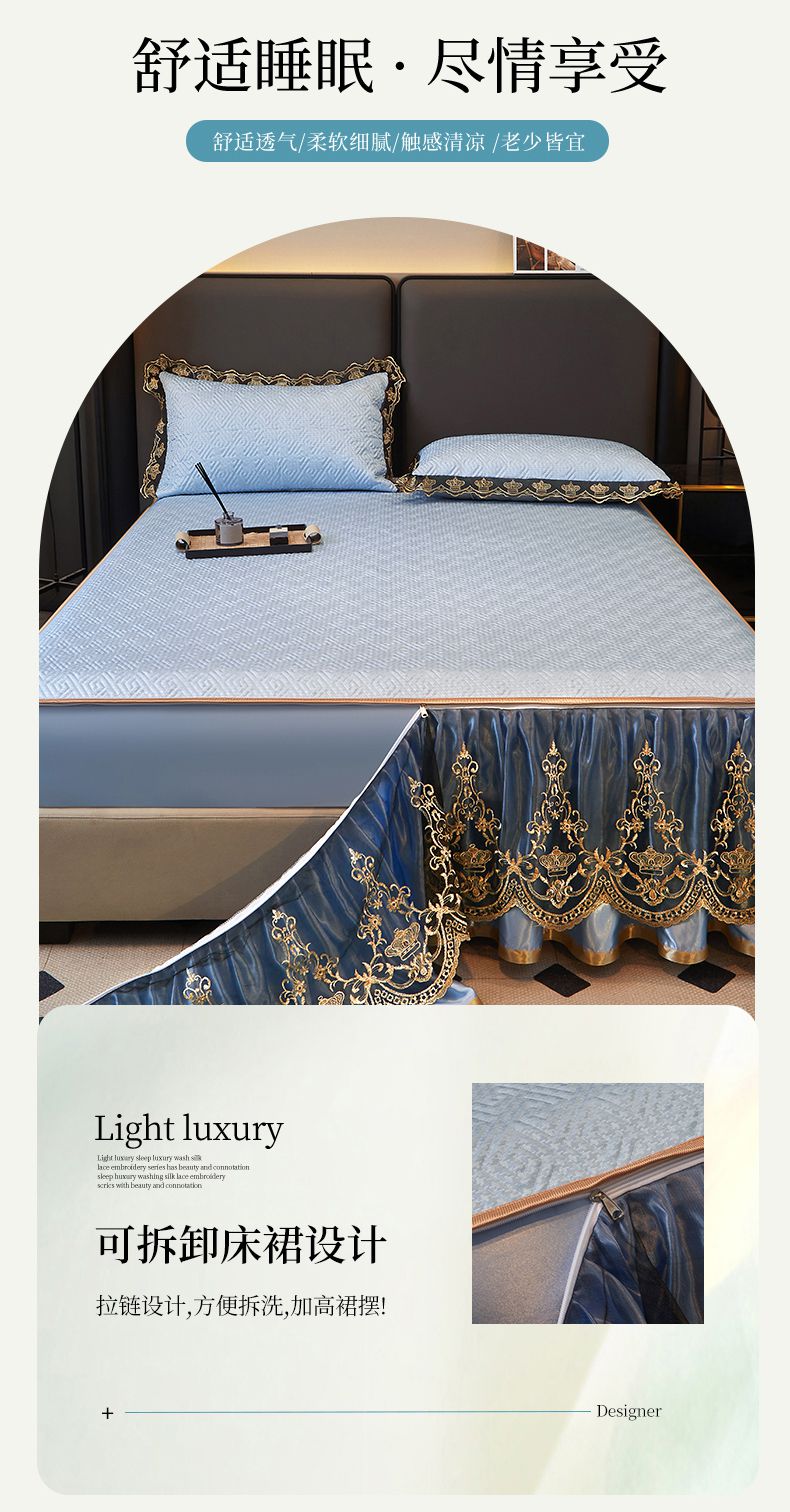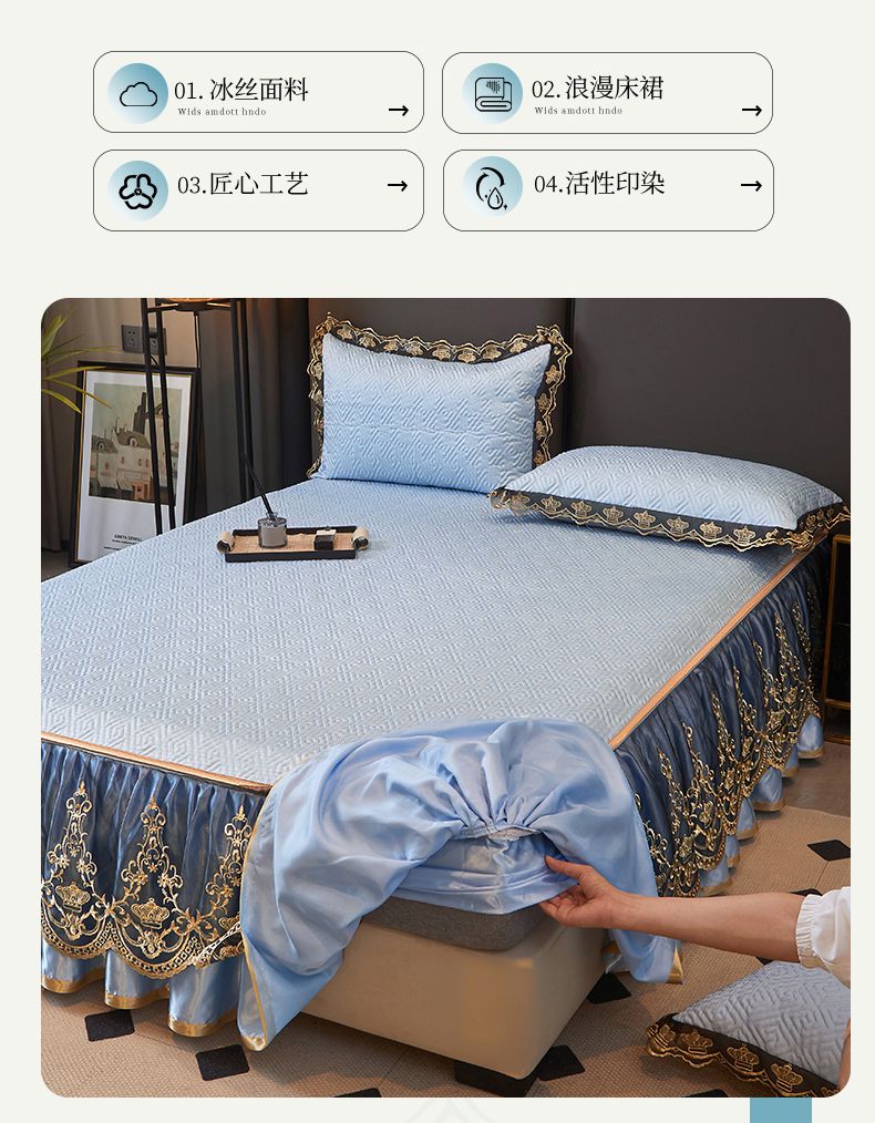 商品名称:罗艺轩 2025新款可拆卸床笠式床裙印花冰丝席 罗曼-天空蓝