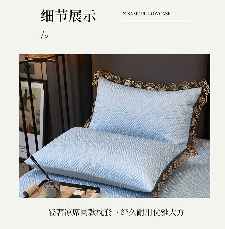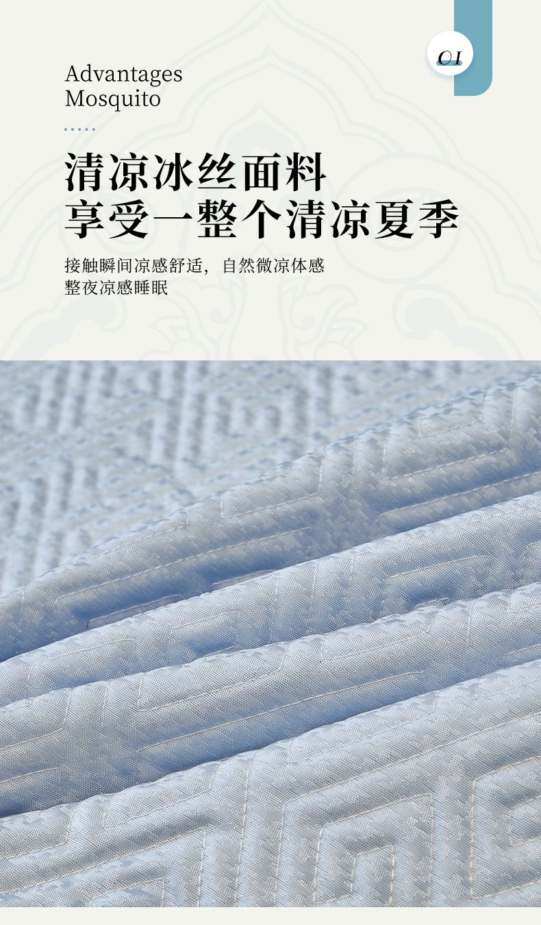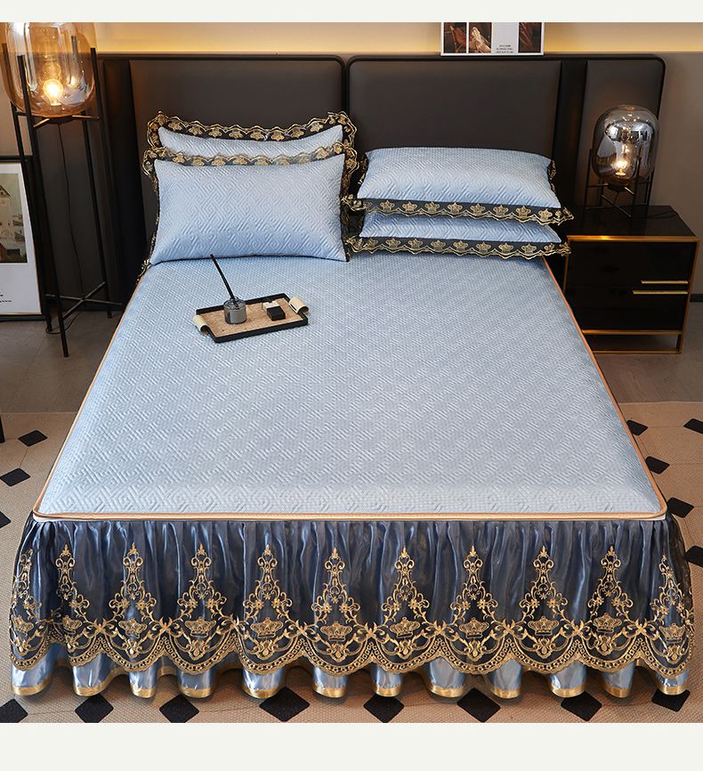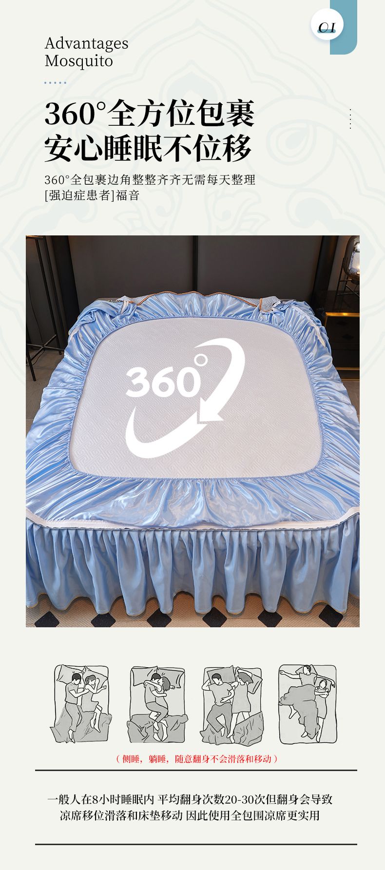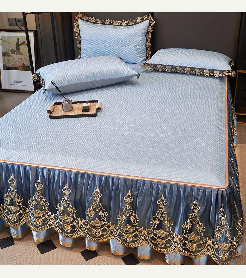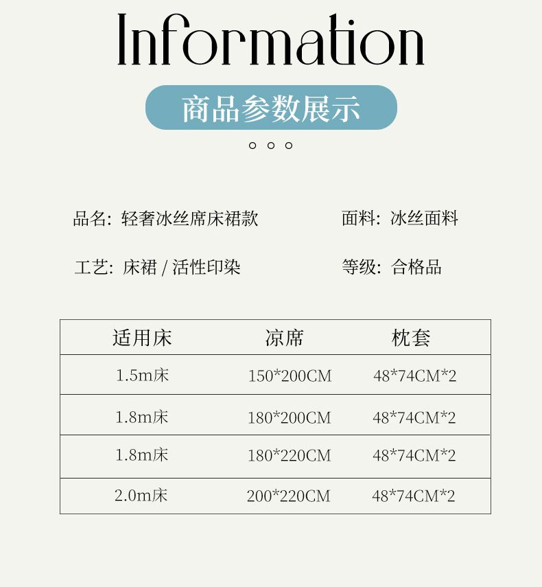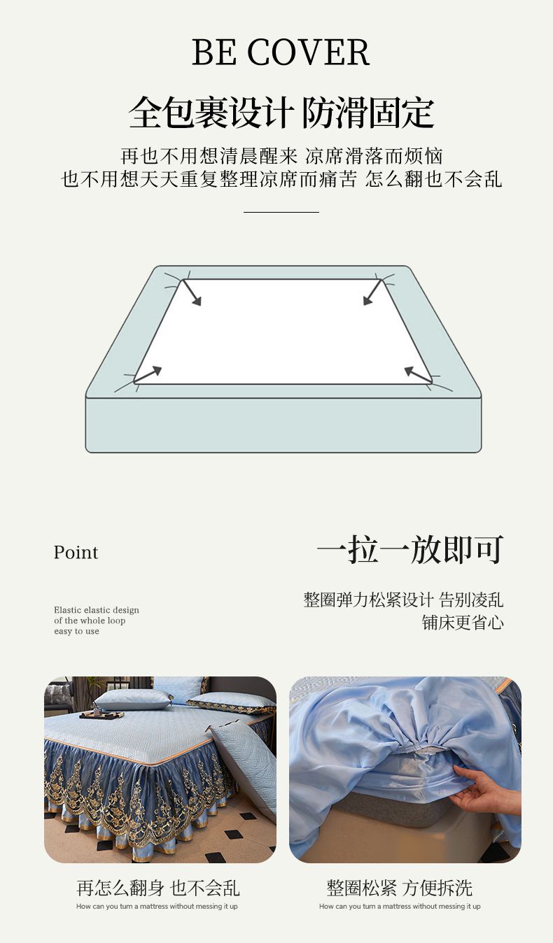商品名称:罗艺轩 2025新款可拆卸床笠式床裙印花冰丝席 罗曼-天空蓝