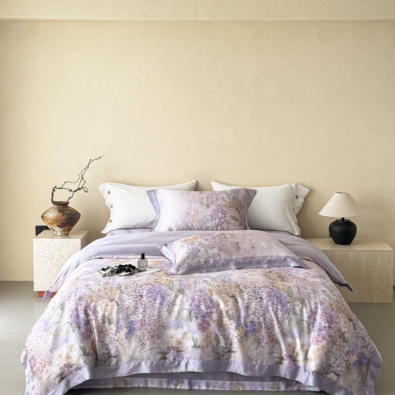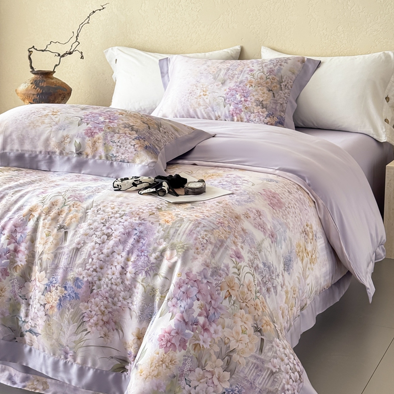 商品名称:若未2025新款玲珑 50S兰精天丝平网活性数码印花四件套 玲珑 控价 券后不低于 368 玲珑 紫