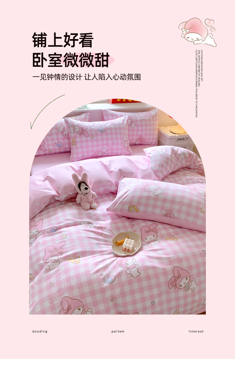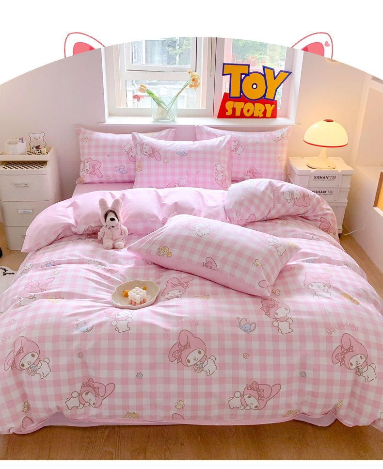 当前位置: 91家纺网 > 商品网购 > 床品套件 > 四件套 > 全棉普通四件套 > 玉元坊 2025年5月新品三丽鸥全棉床单纯棉床裙床笠三四件套简约基础款式-美乐蒂简约款式 粉格美乐蒂【简约款】