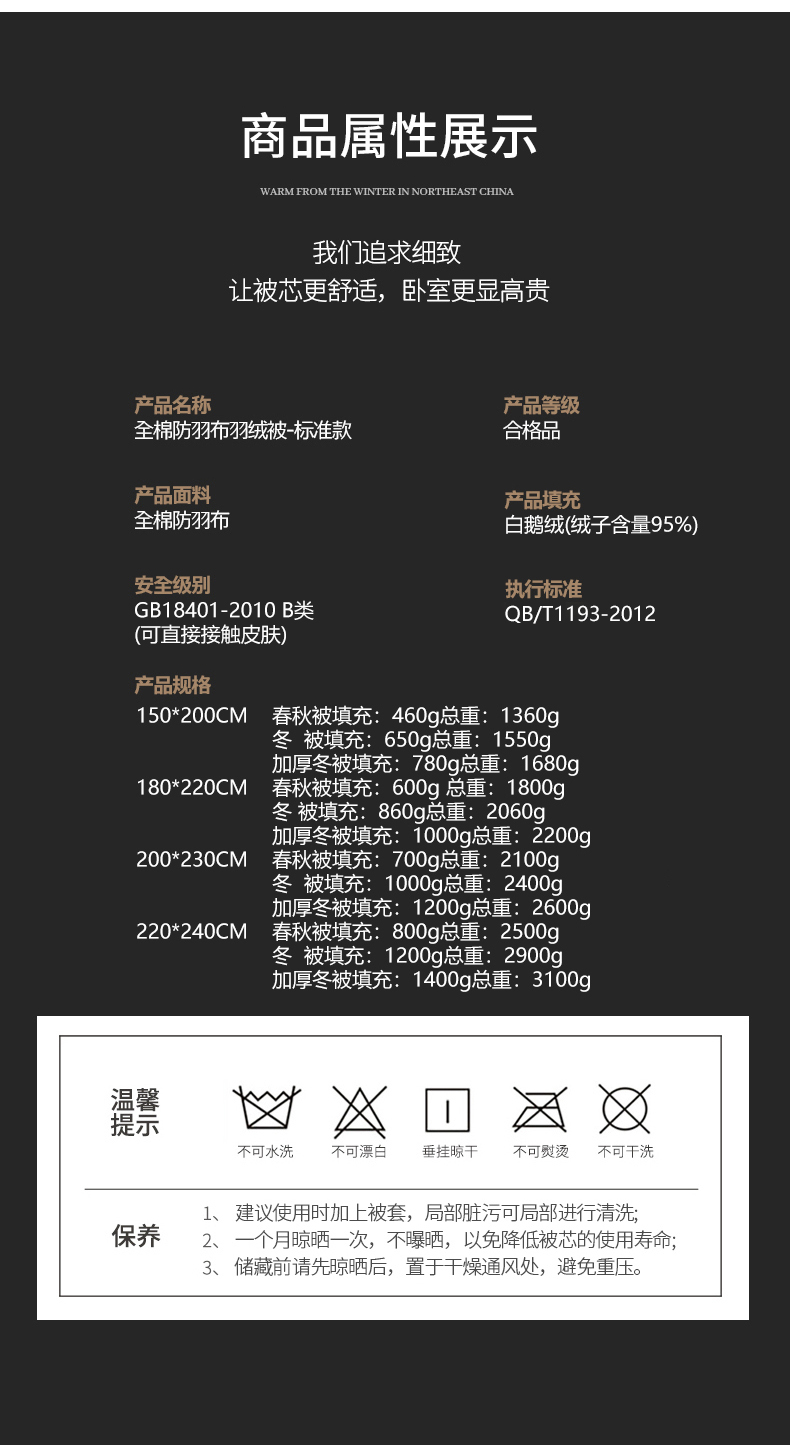 90白鸭绒被-200x230cm填充1200g加厚冬被