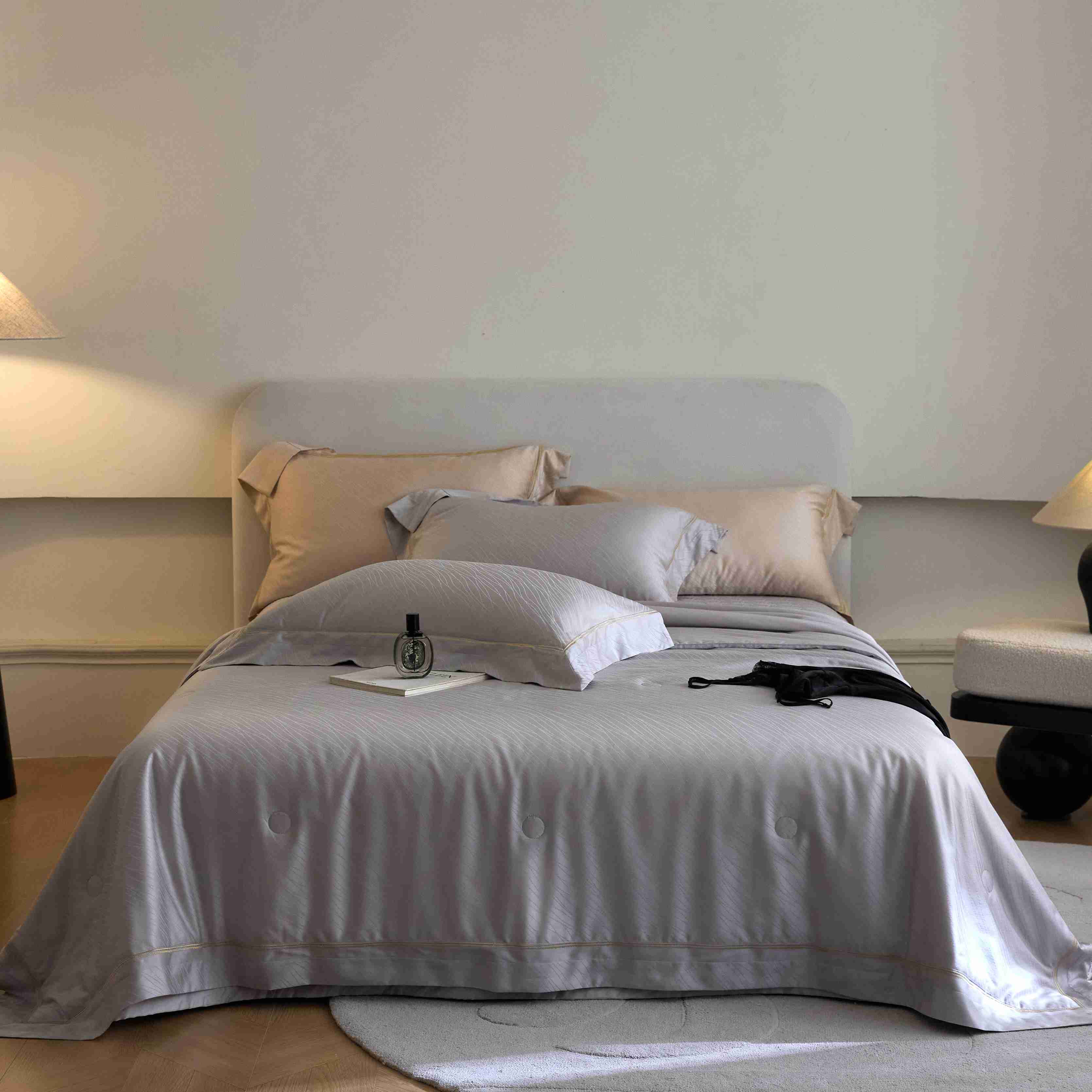 时亿家居 2025新款100支天丝棉提花床盖款夏被四件套【控价券后不低于 538】 莫妮卡 灰