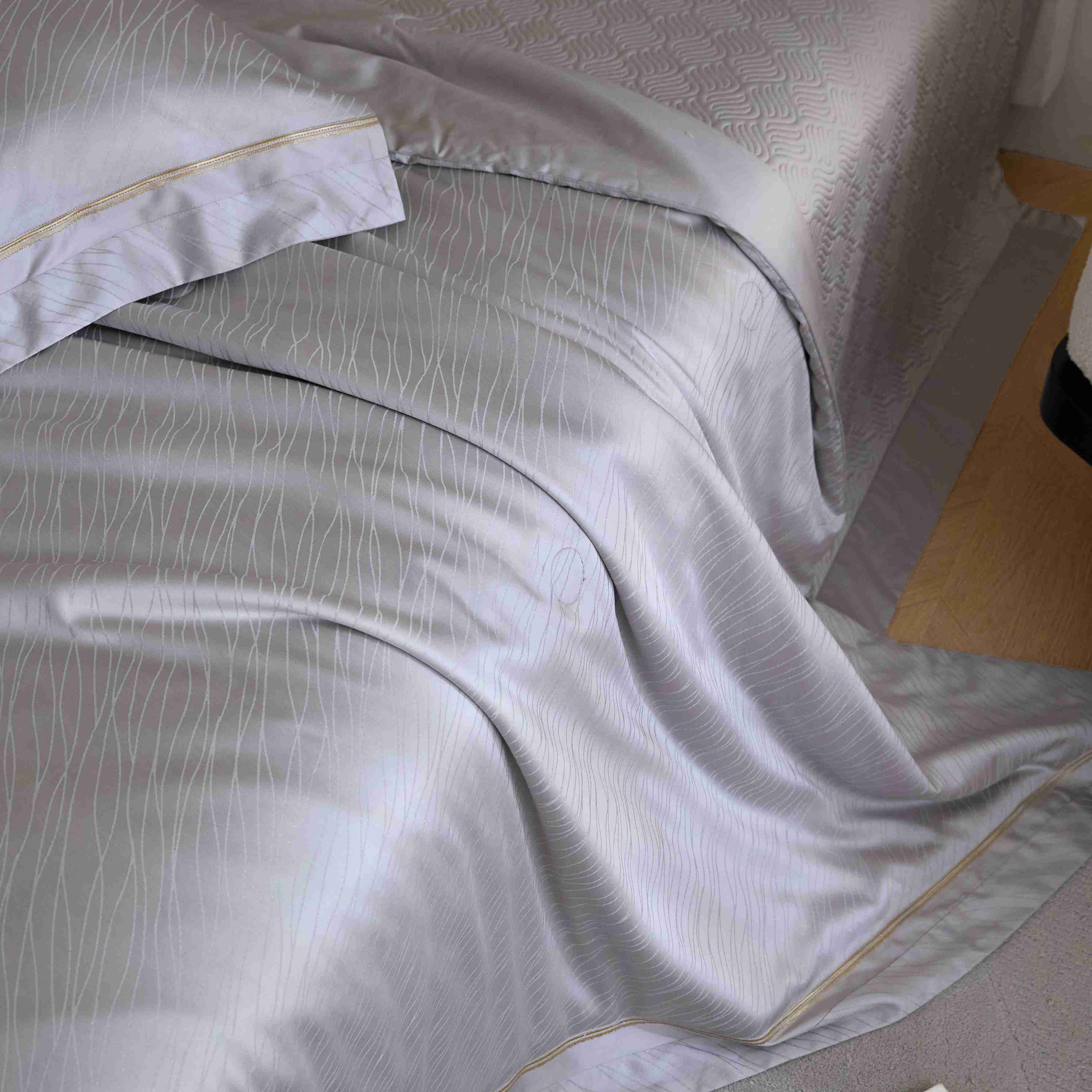 商品名称:时亿家居 2025新款100支天丝棉提花床盖款夏被四件套【控价券后不低于 538】 莫妮卡 灰