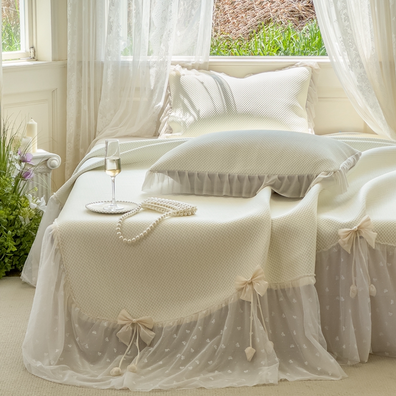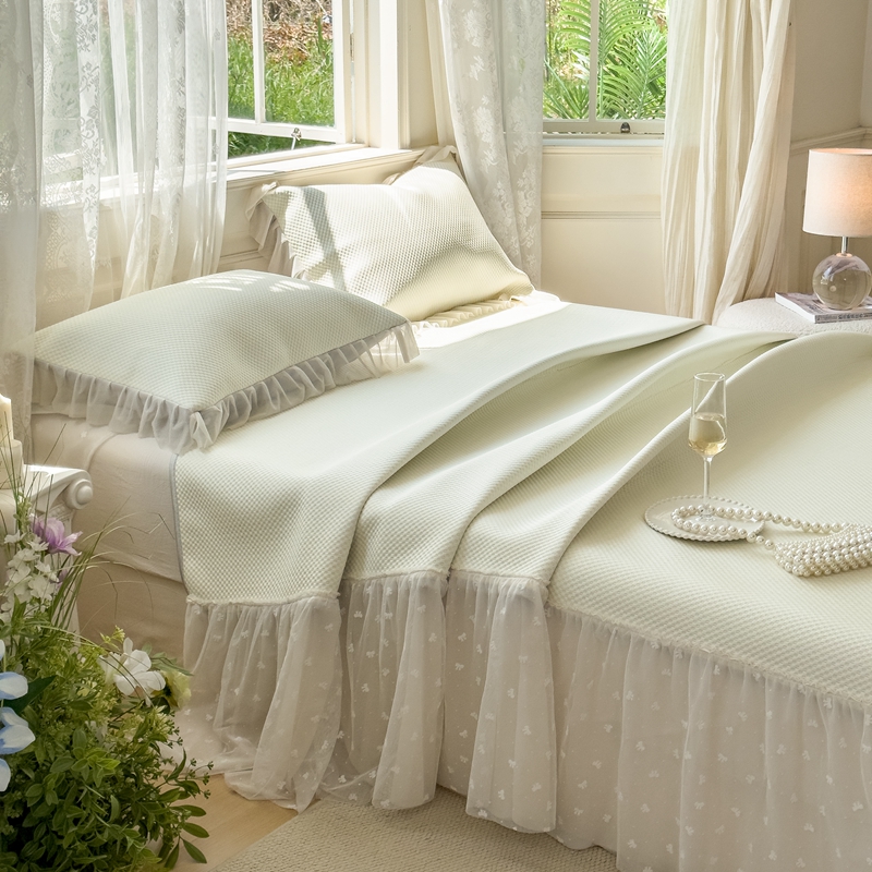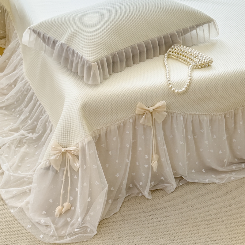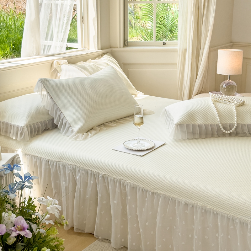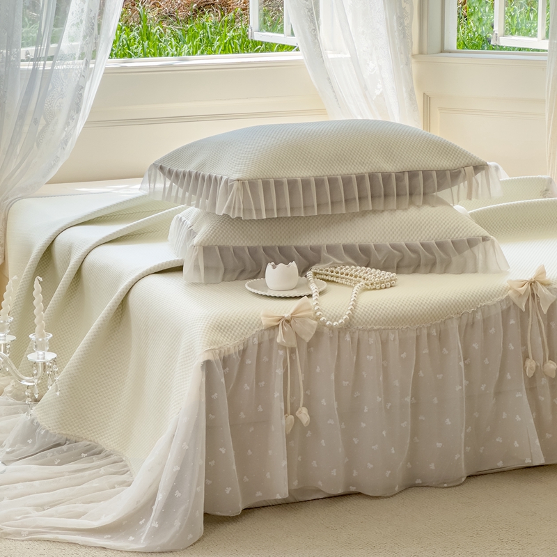 商品名称:恋尚羽家纺 2025PE高分子复合软凉席豆豆席大床裙三件套 米白