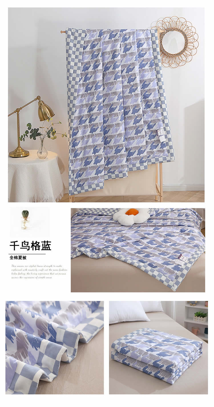 商品名称:贝兰仙奴 2025春夏新款全棉印花夏被夏凉被空调被 千鸟格蓝