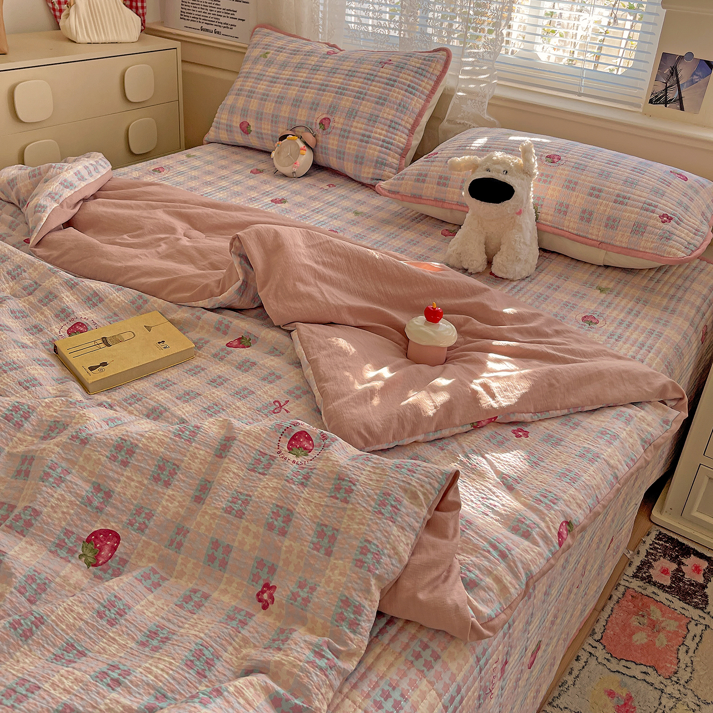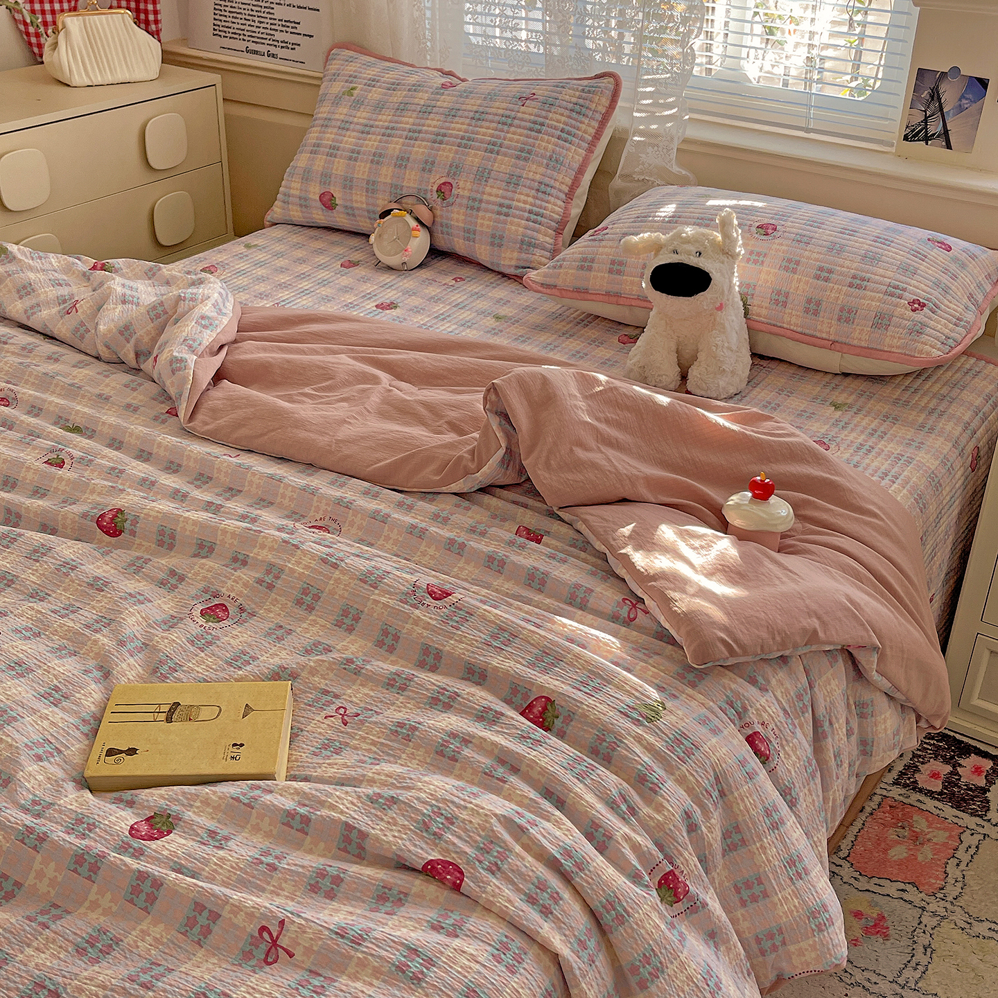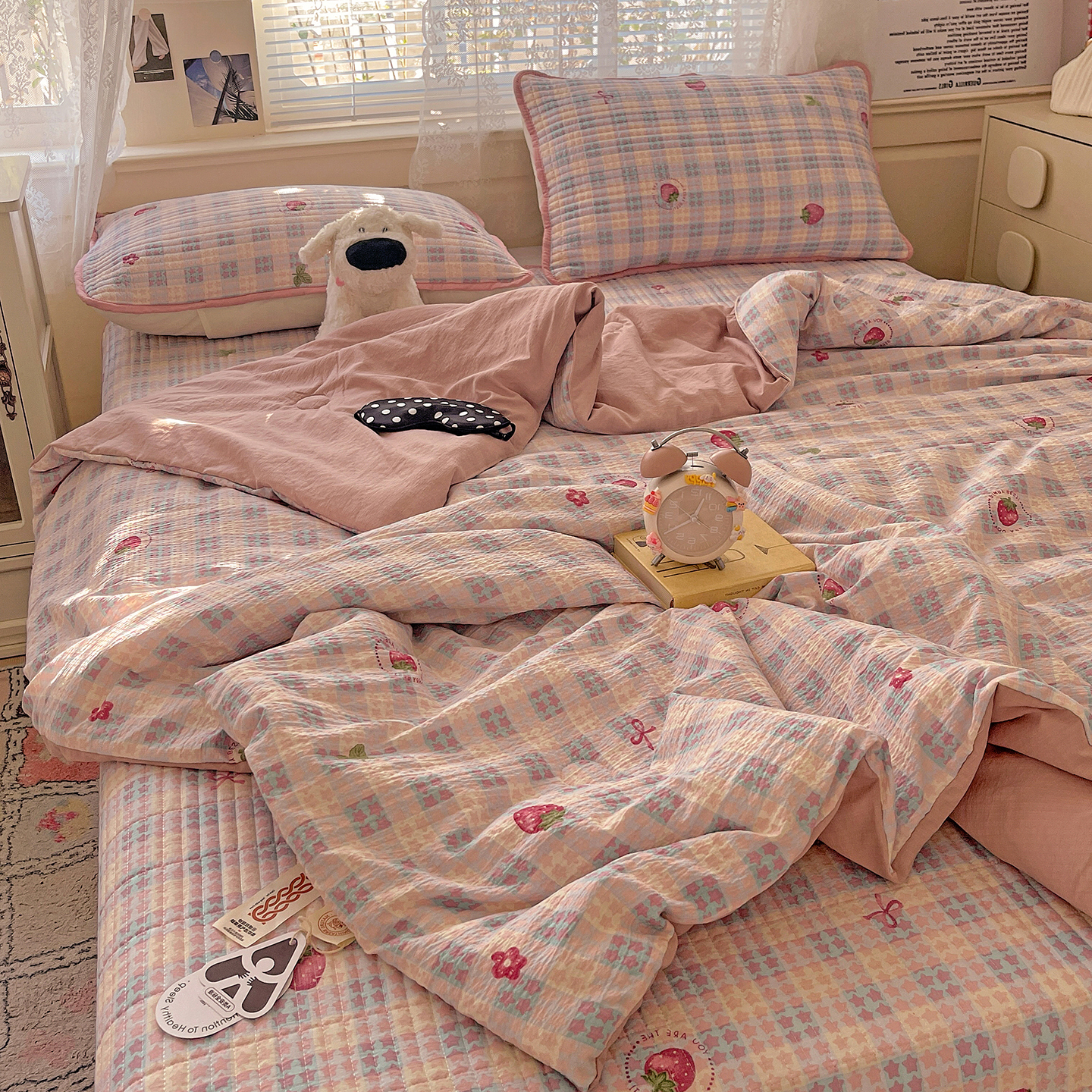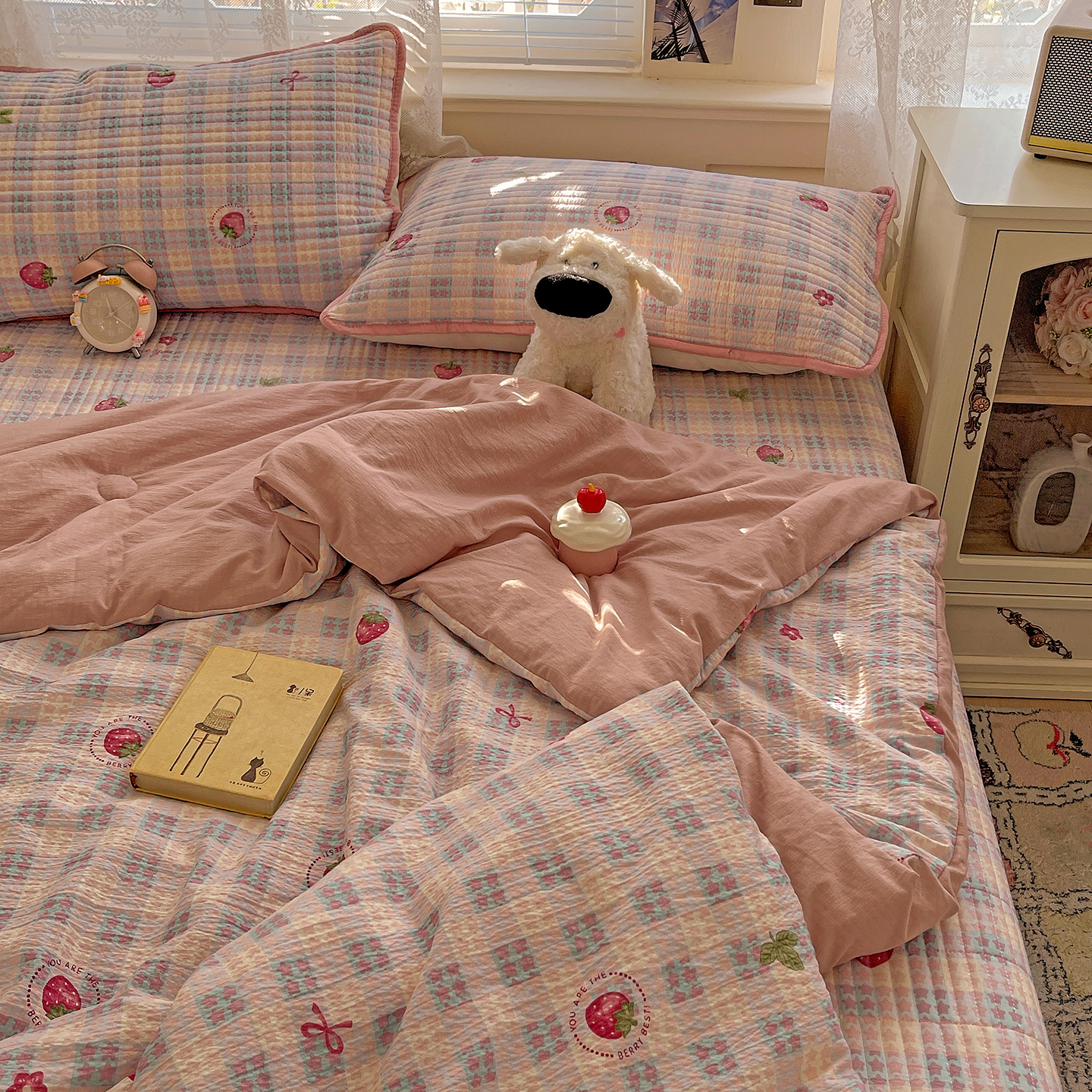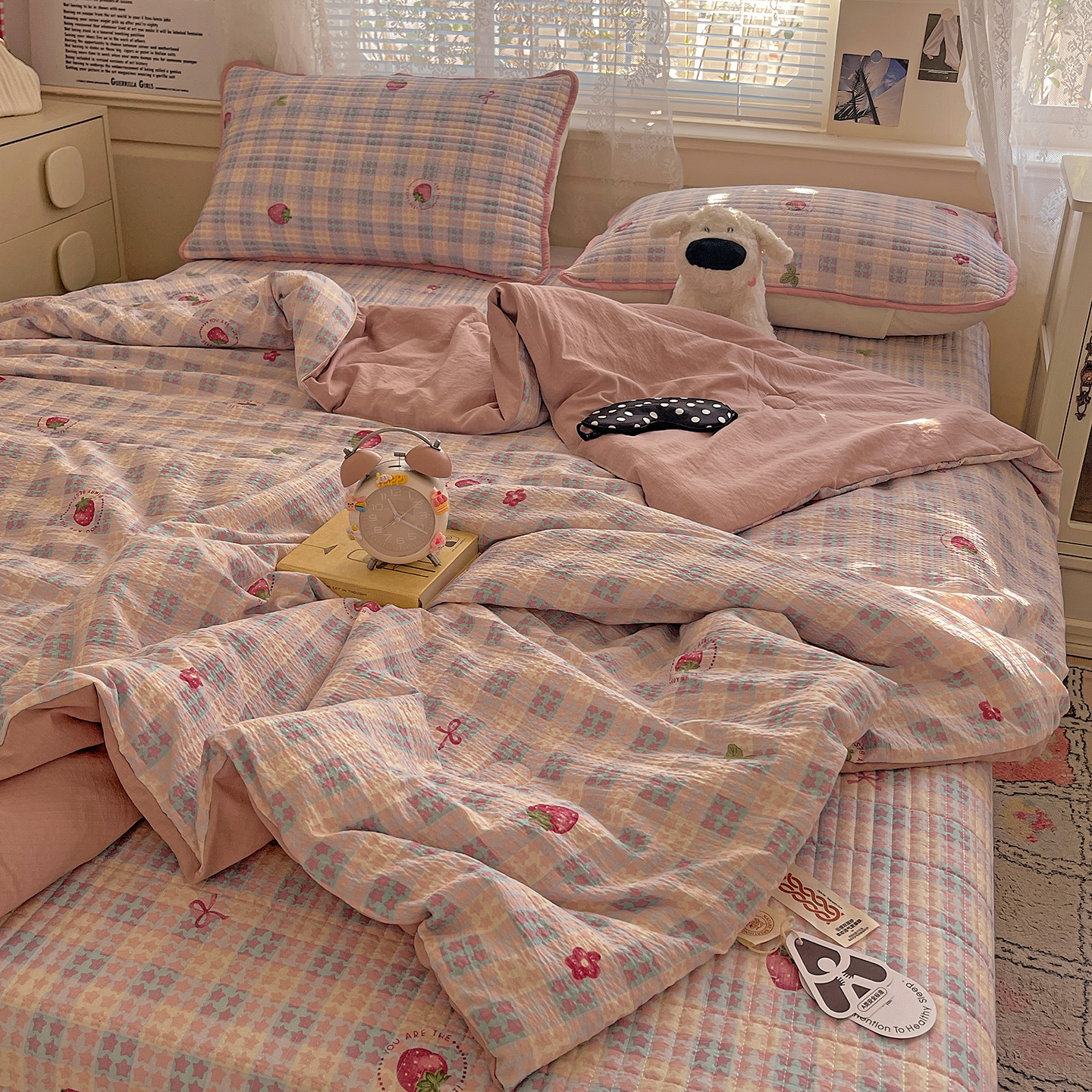 当前位置: 91家纺网 > 商品网购 > 床品套件 > 四件套 > 夏被四件套 > 繁花家居 2025新款超爆款床盖款夏被夏凉被空调被四件套 床盖款-草莓格子
