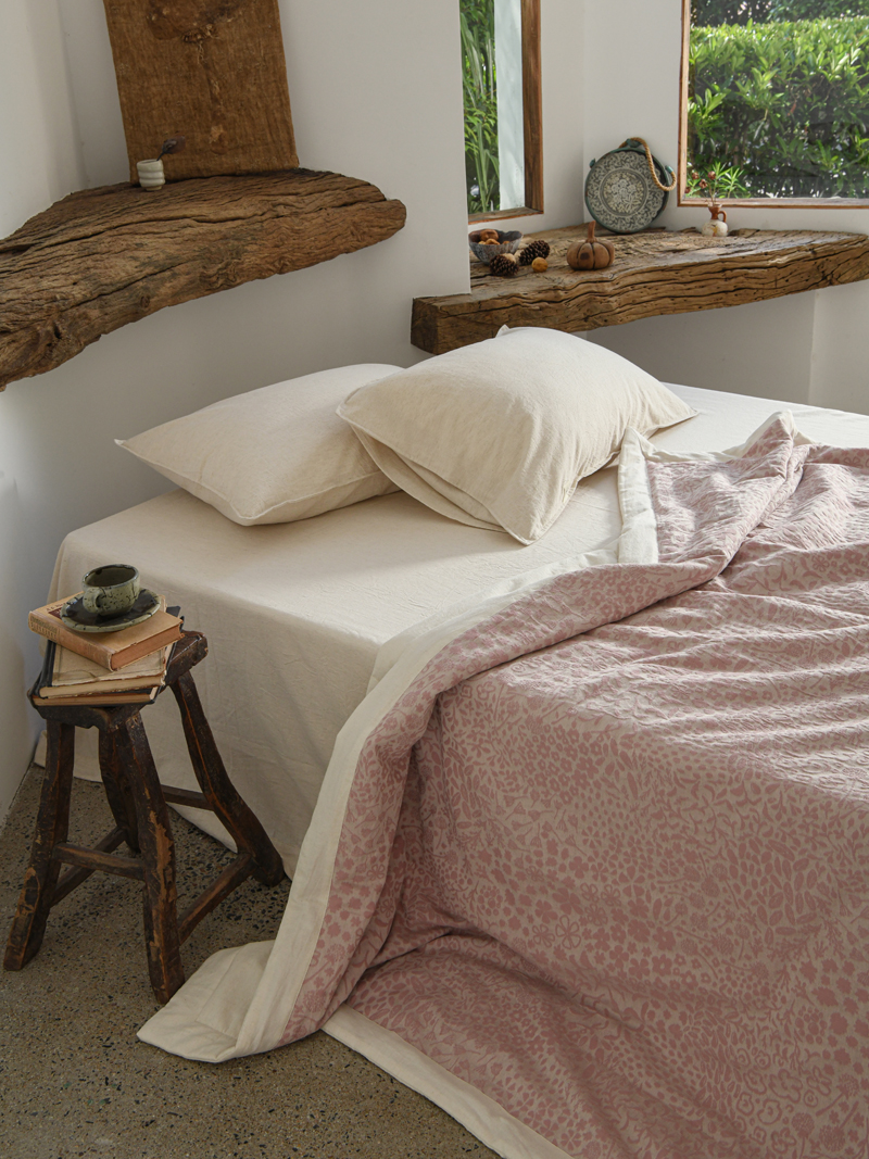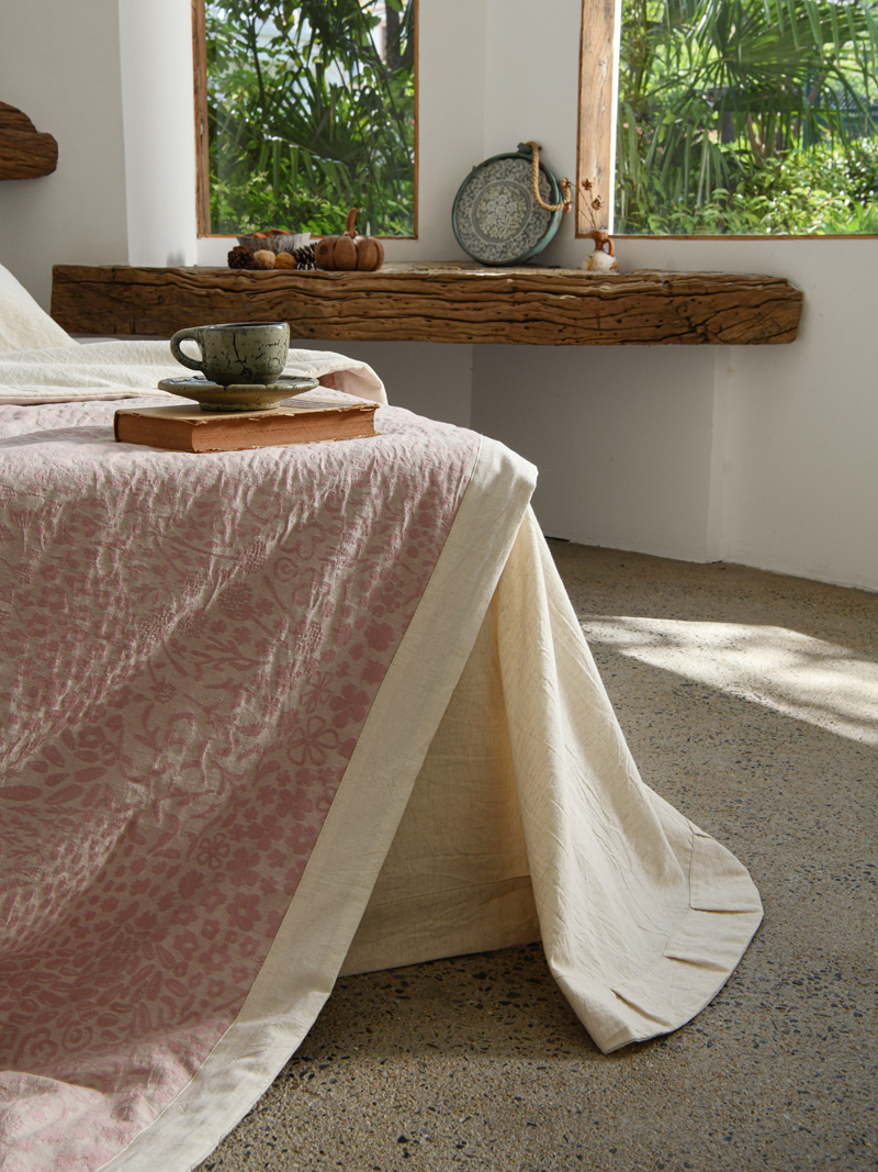 (总)简家居 2025新款亲肤舒适棉麻床盖三件套,棉麻提花