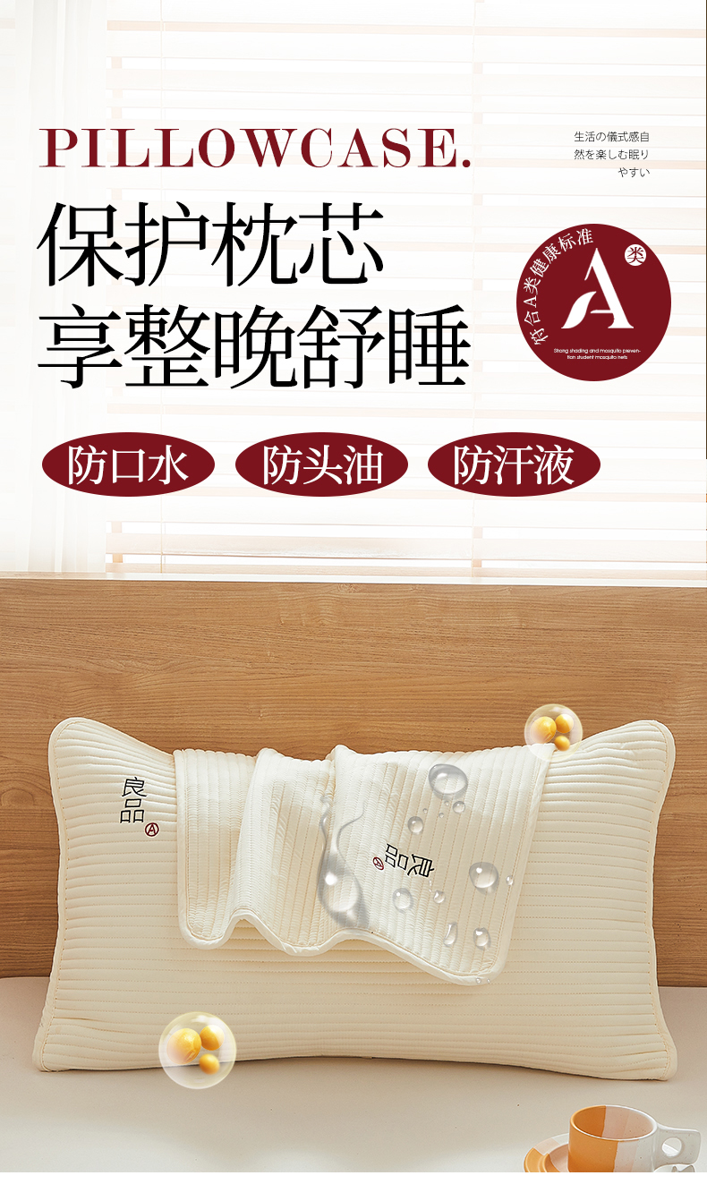 芬晴家纺 2025新款A类良品防水枕套系列 米白