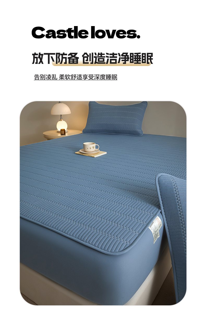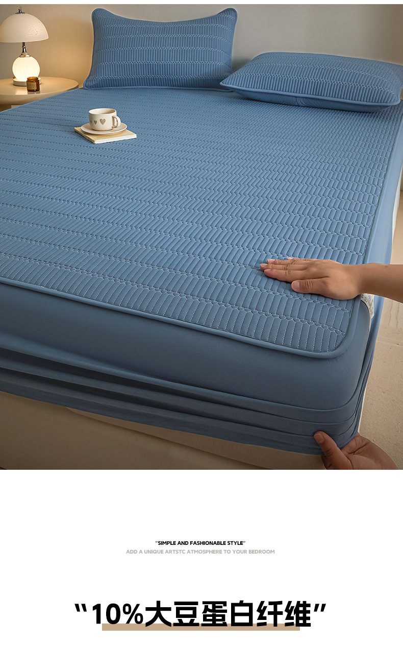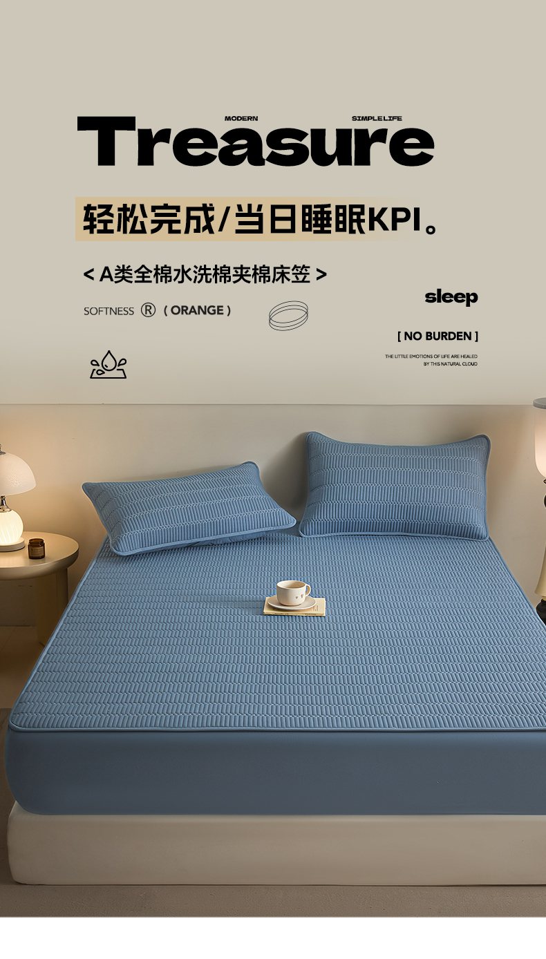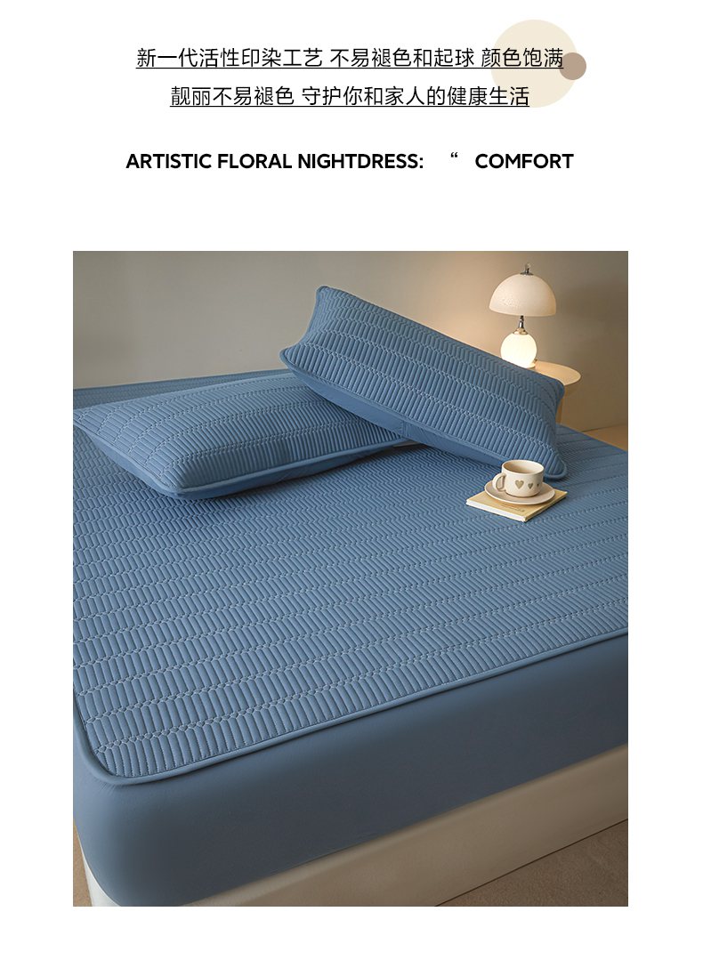 • 91家纺网 家纺一手货源 找家纺 芬晴家纺 2025新款A类全棉水洗棉夹棉床笠-甜心 甜心-雾蓝