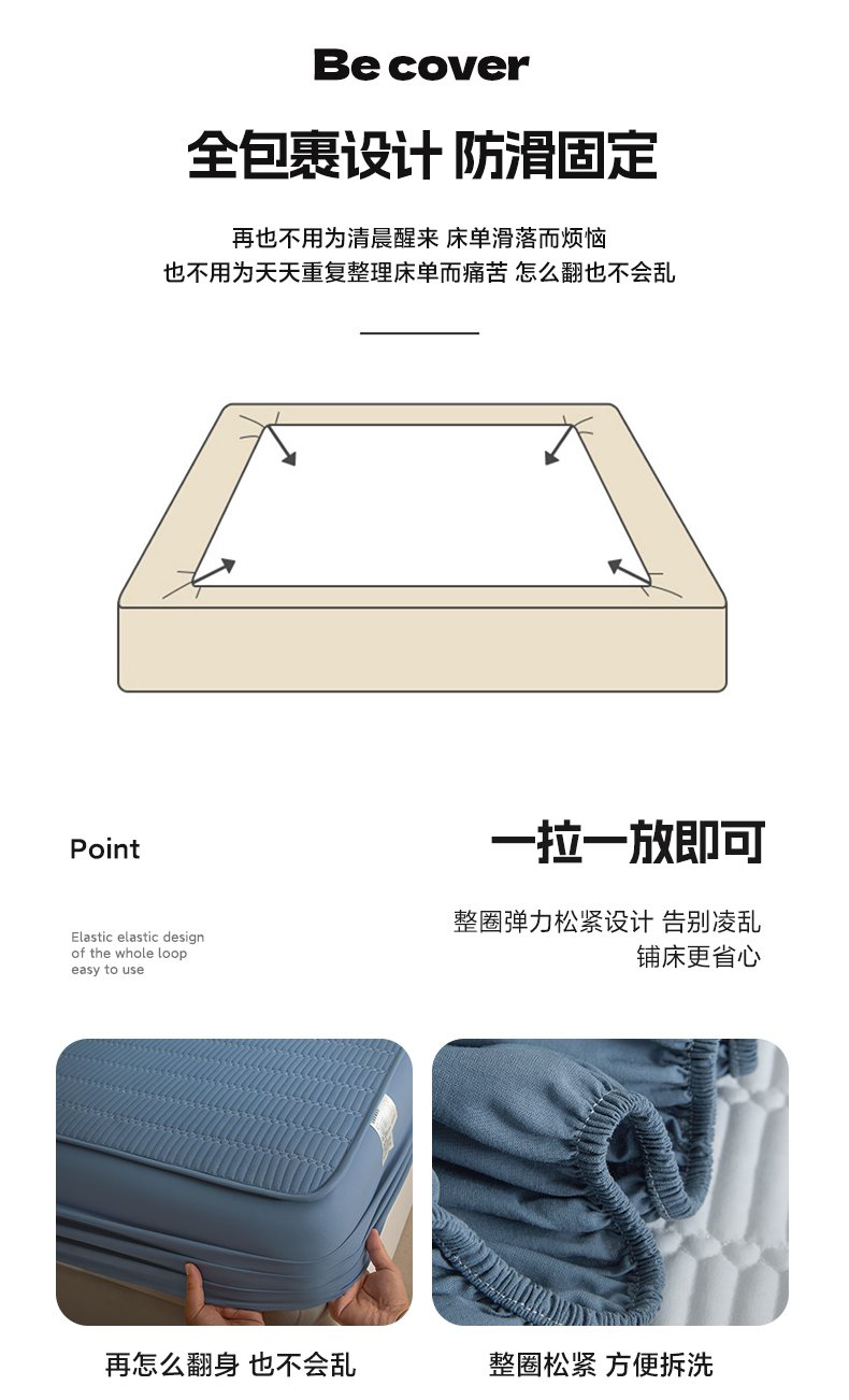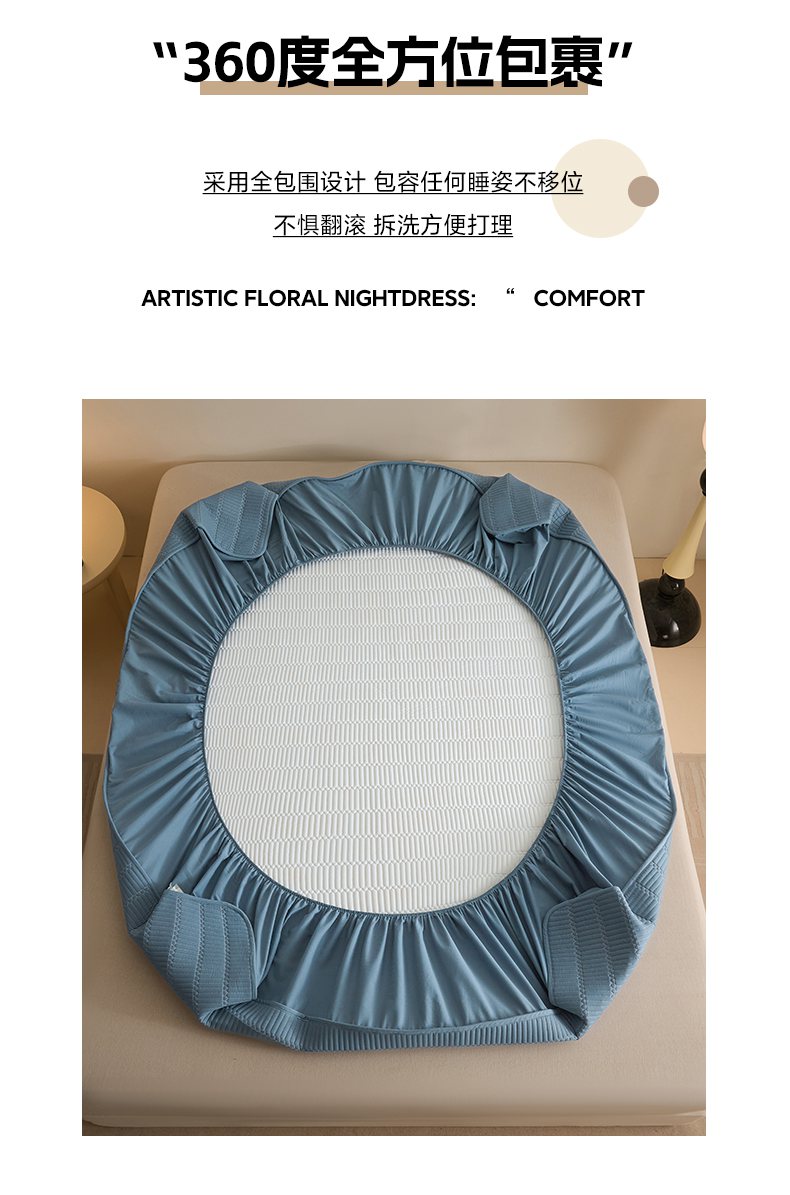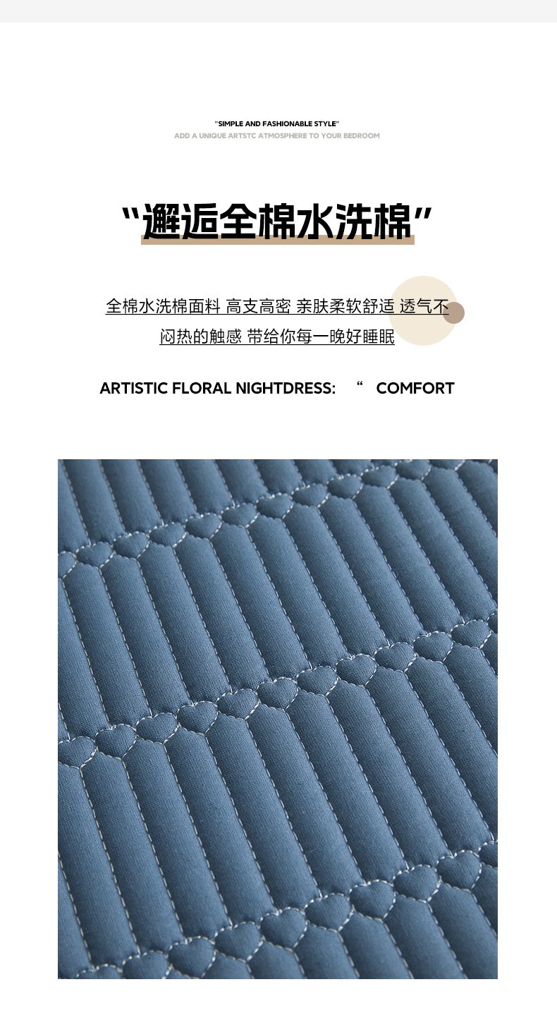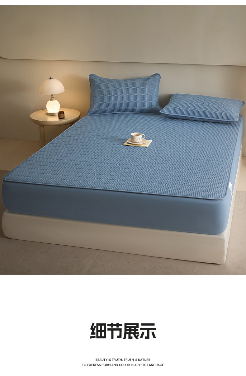 • 91家纺网 家纺一手货源 找家纺 芬晴家纺 2025新款A类全棉水洗棉夹棉床笠-甜心 甜心-雾蓝