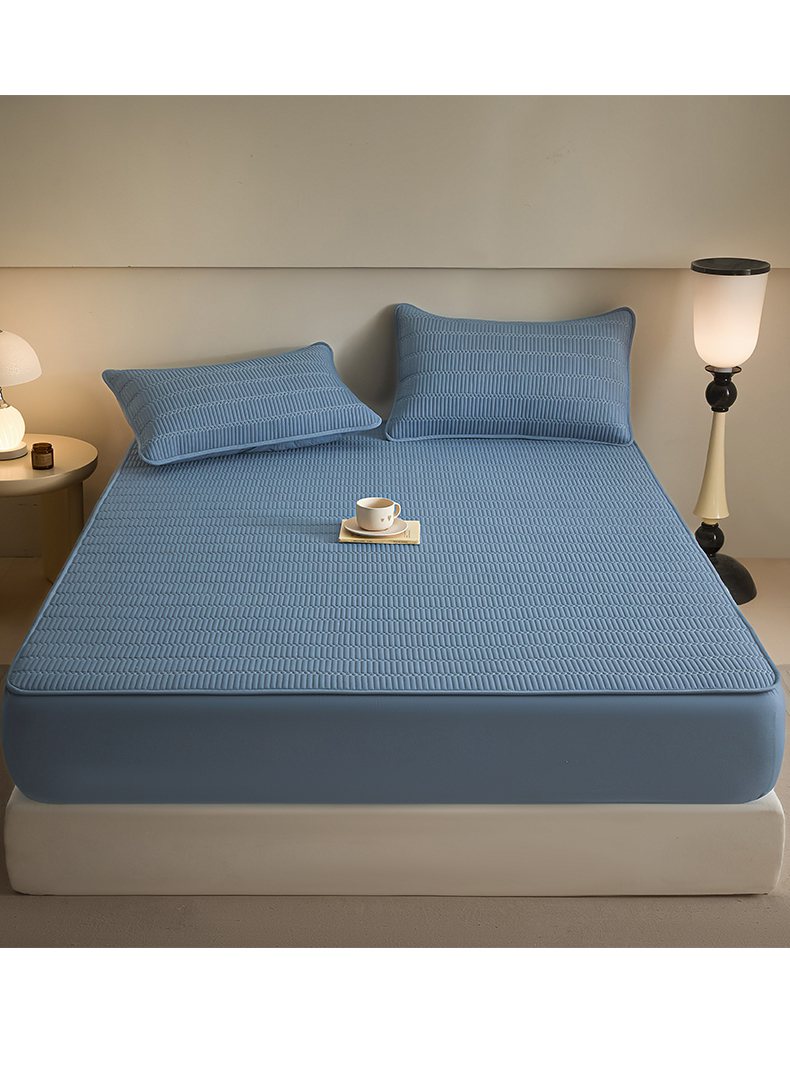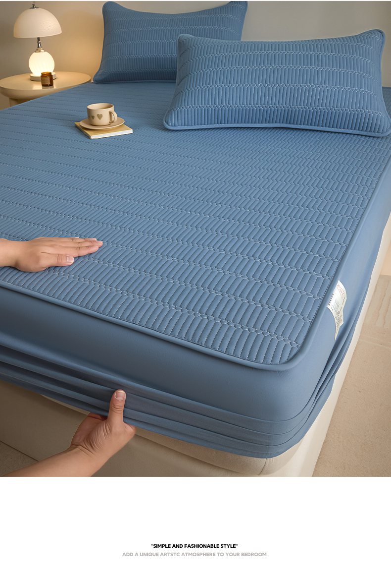芬晴家纺 2025新款A类全棉水洗棉夹棉床笠-甜心 甜心-雾蓝