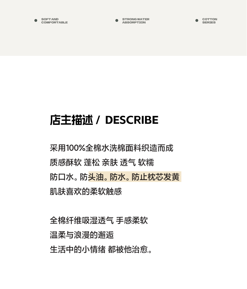 商品名称:芬晴家纺 2025新款A类全棉色织防水枕套系列 防水-英伦格