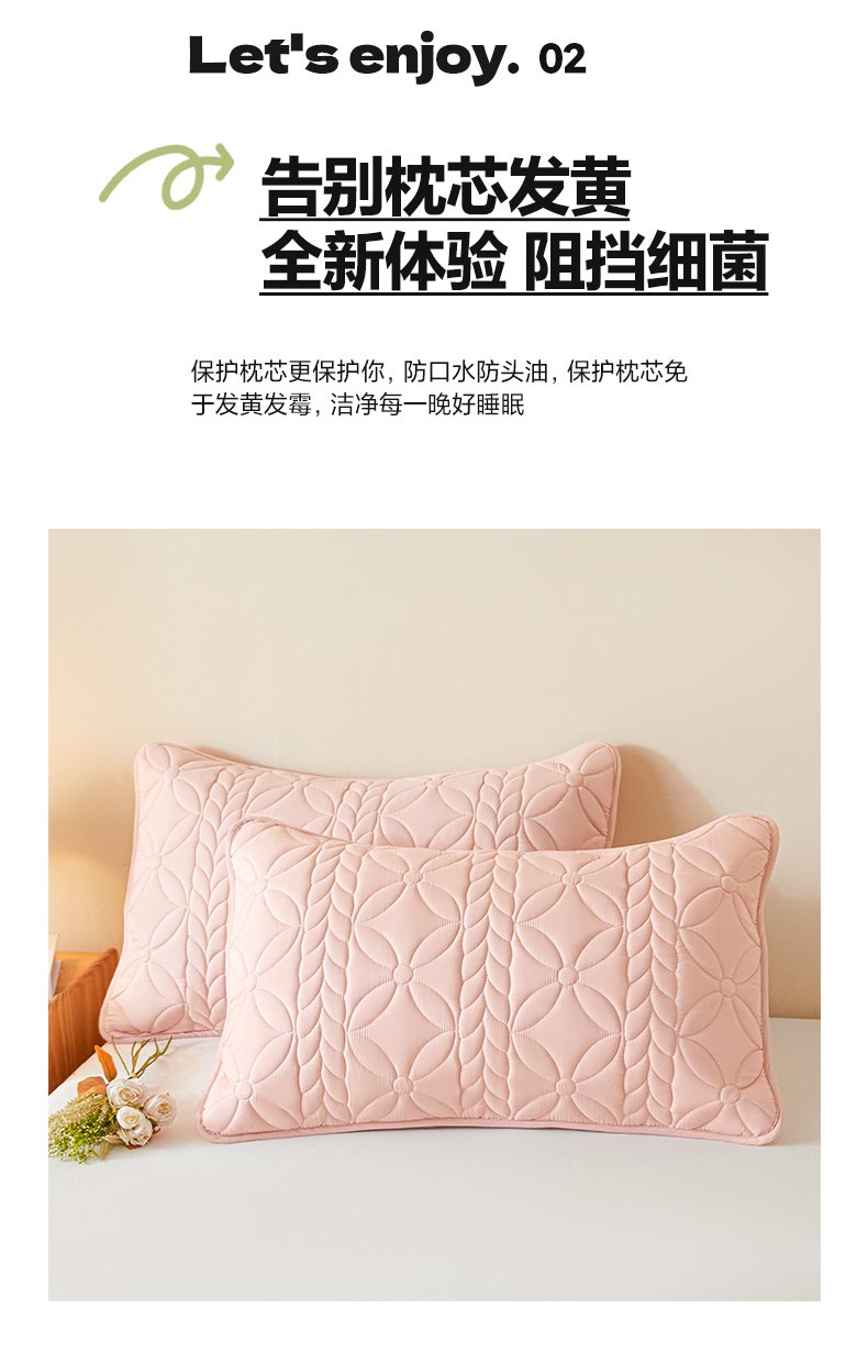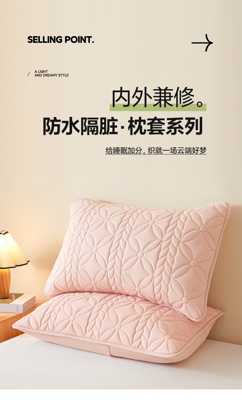 芬晴家纺 2025新款A类母婴级防水枕套系列 叶语-豆沙粉