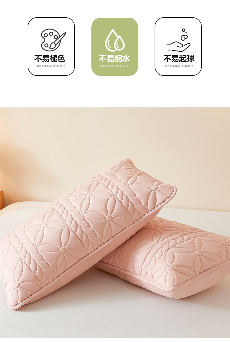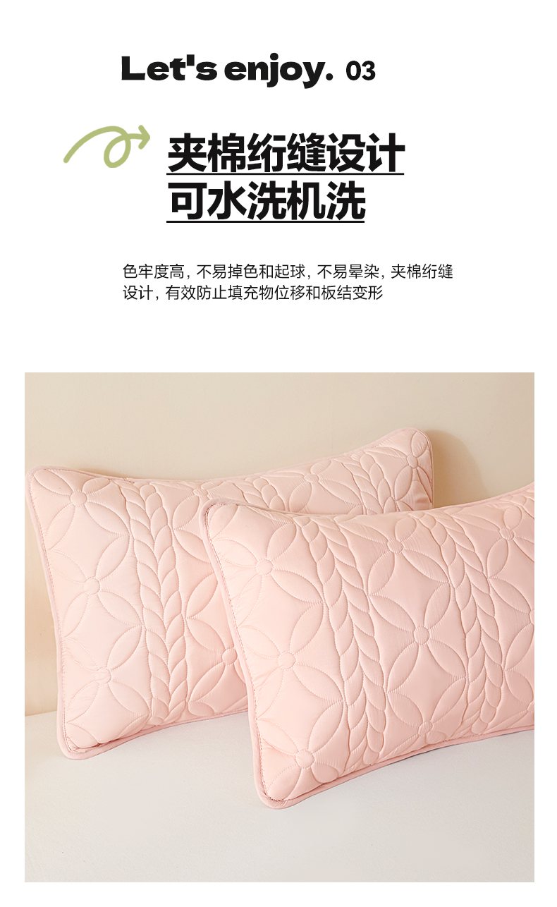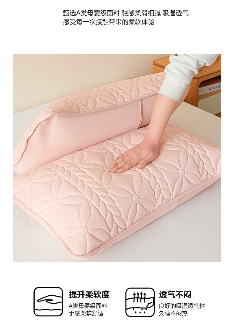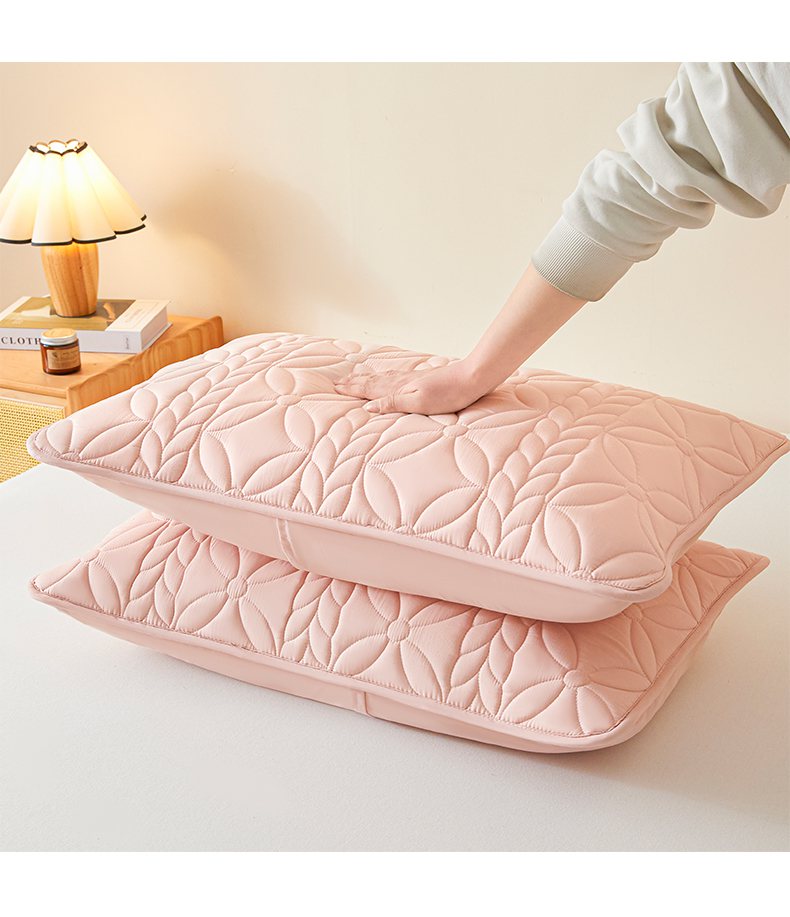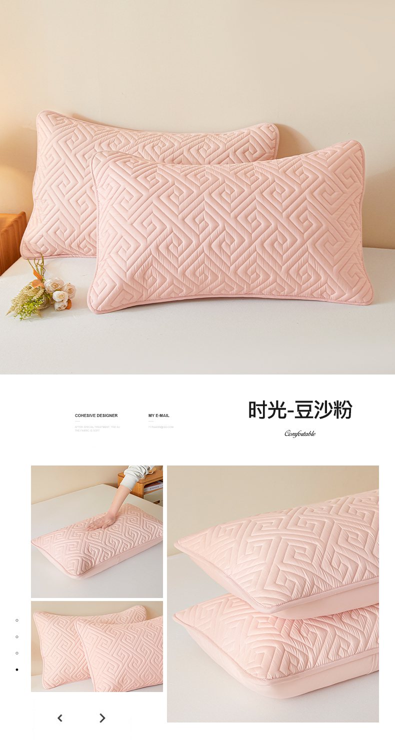商品名称:芬晴家纺 2025新款A类母婴级防水枕套系列 叶语-豆沙粉